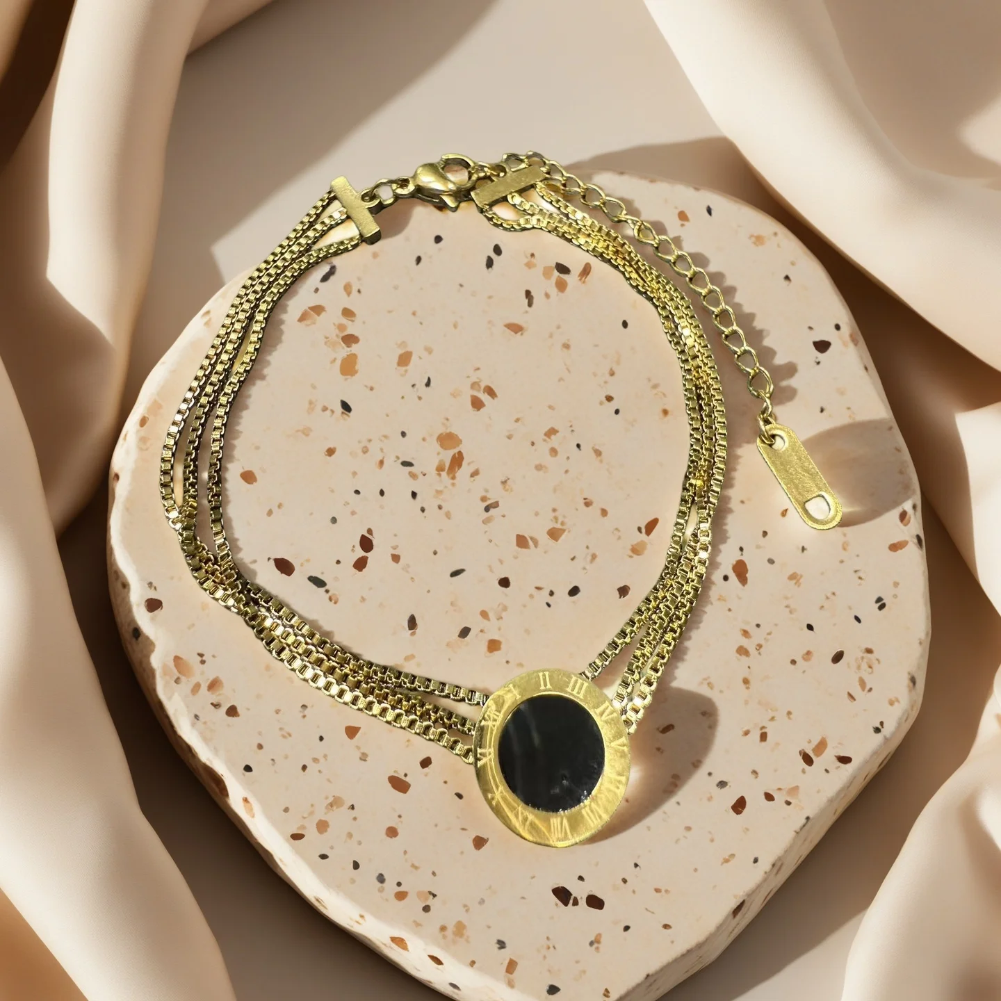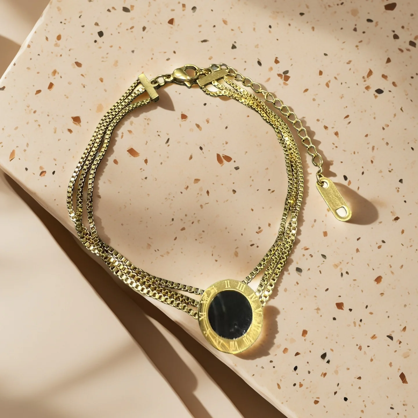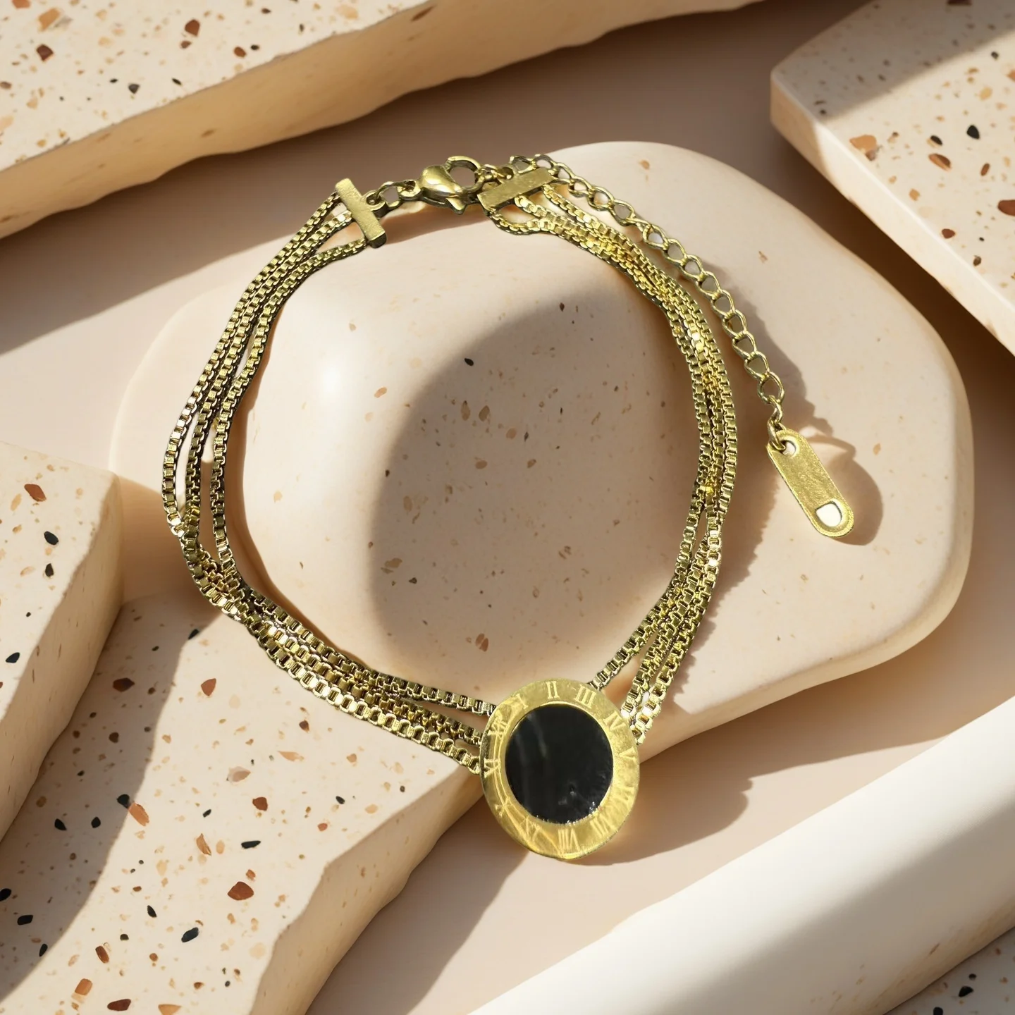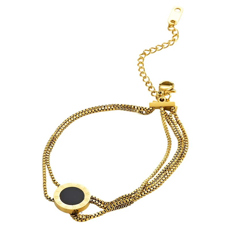 Classic Roman Numeral Titanium Steel Bracelet Gold Plated with Black Dial Multilayer Chain for Daily Wear Gift European Style