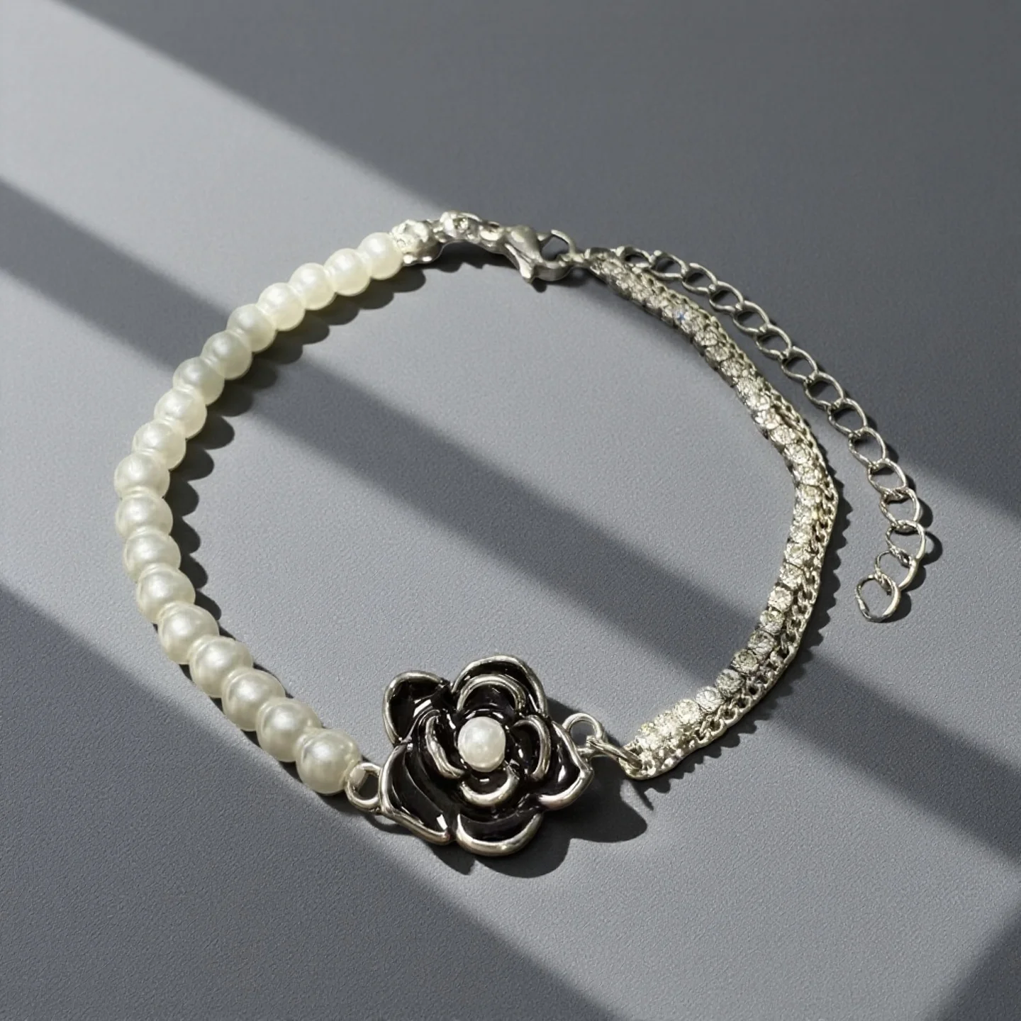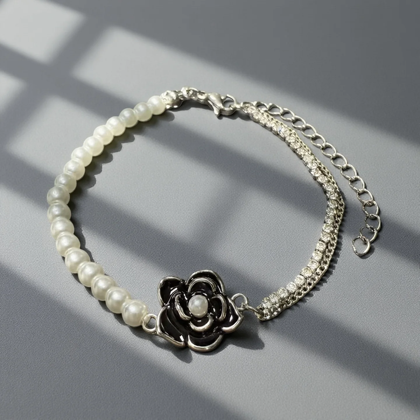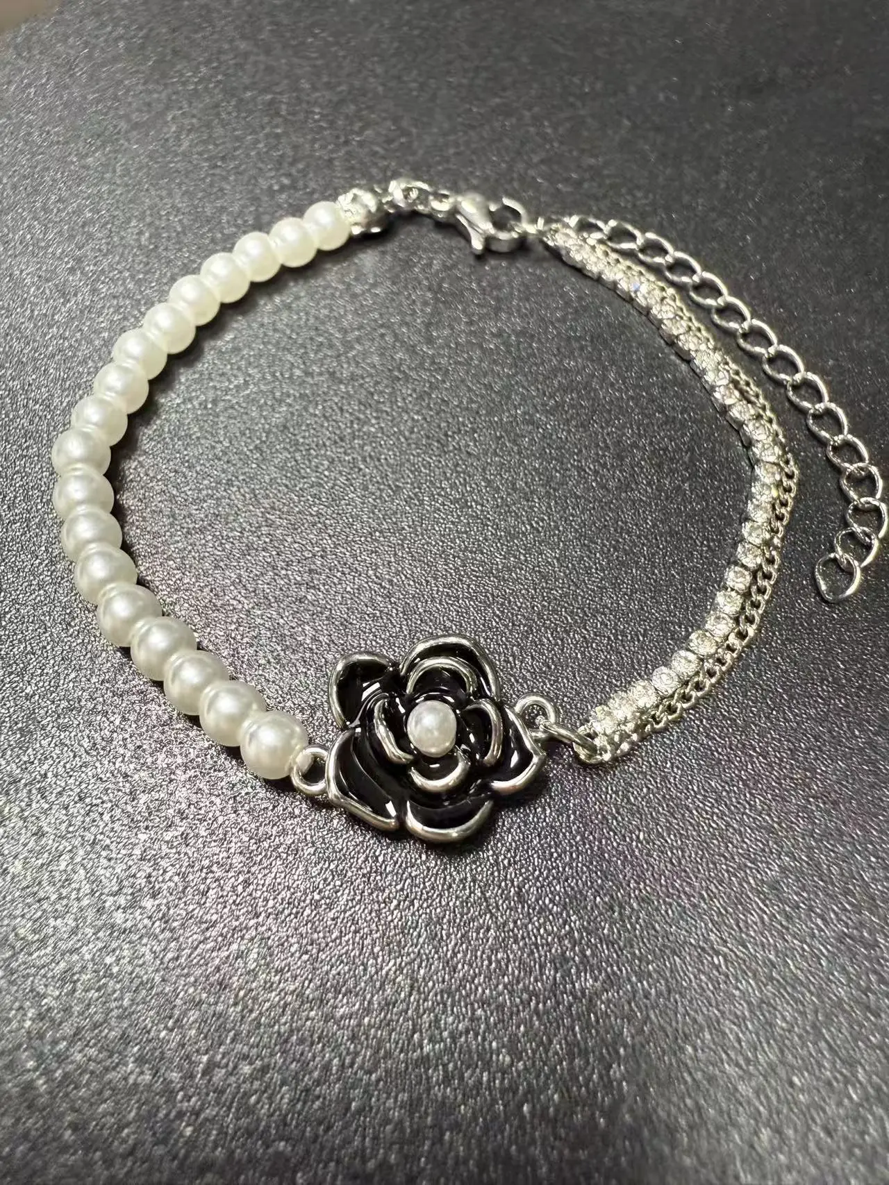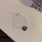 Personalized Popular Jewelry Bracelet Camellia Charm Bracelet Copper Gold Plated Imitation Pearl Fashion Chain for Gifts
