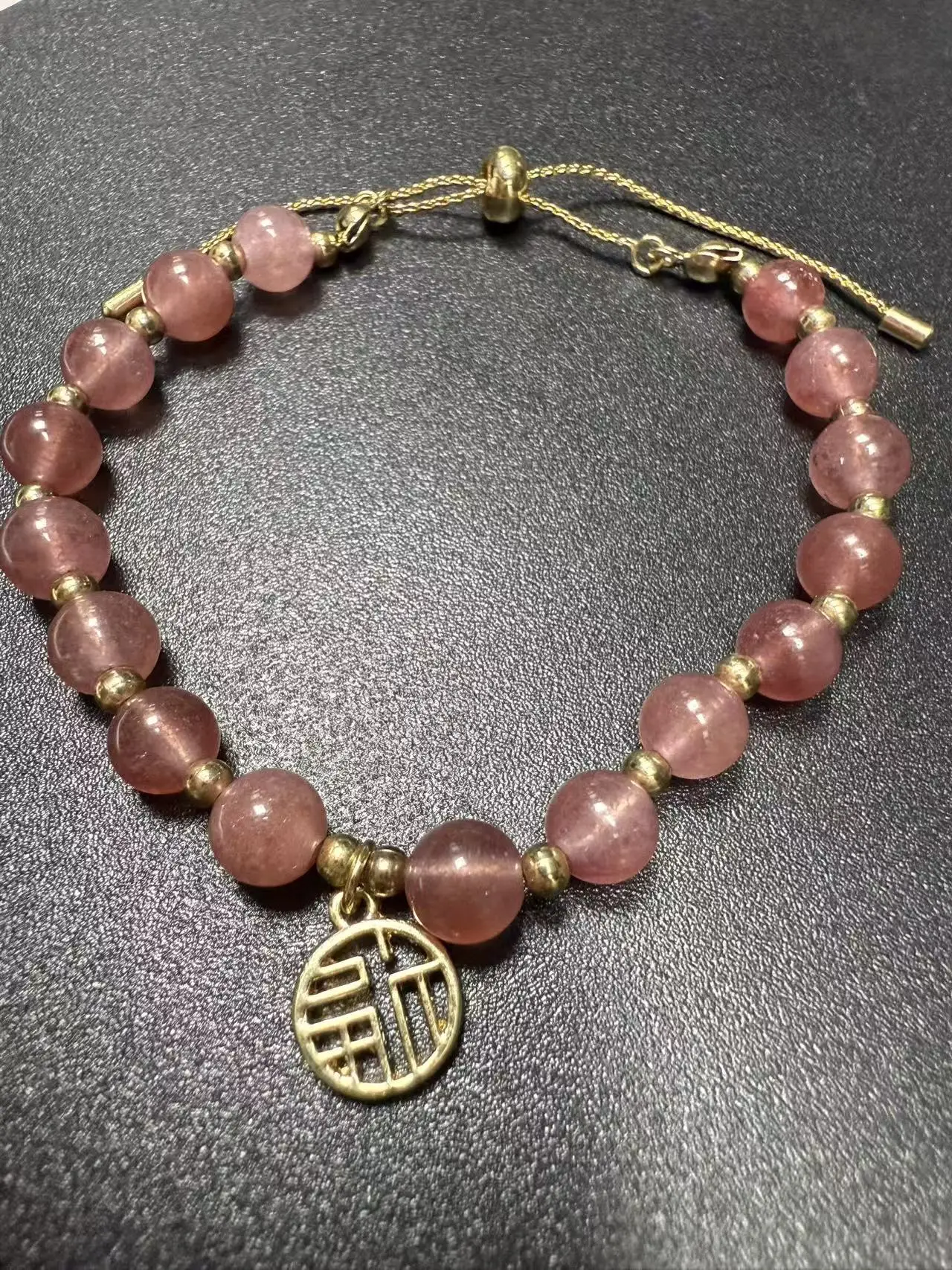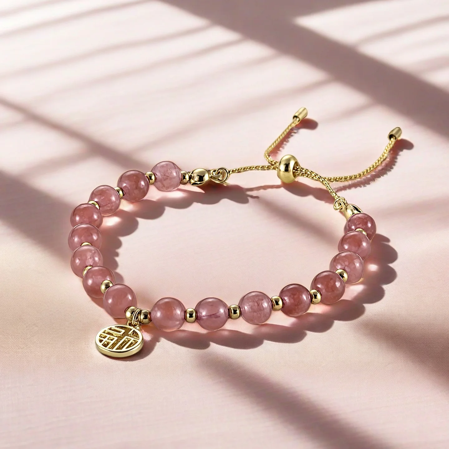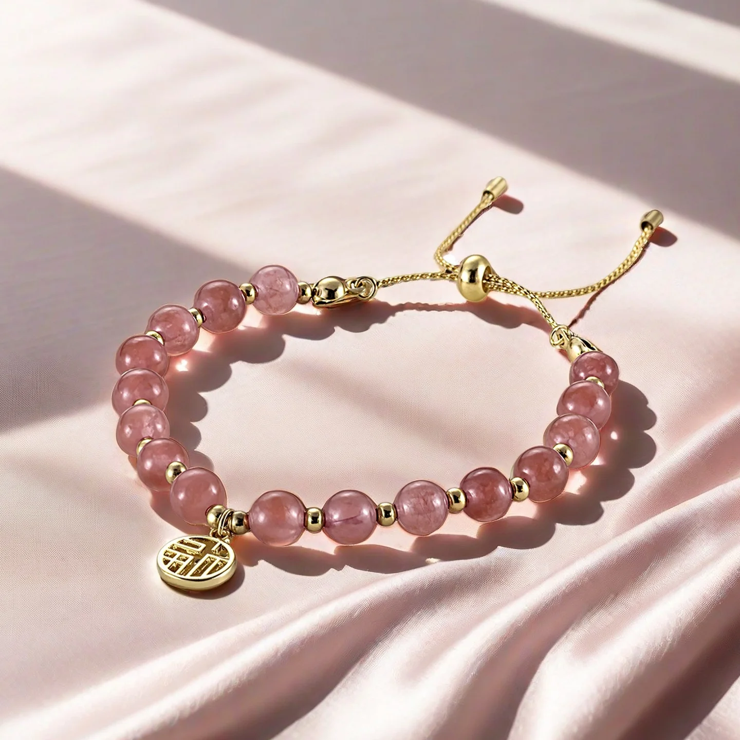 New Sweet Pink Beads Crystal Bracelet for Women Girls Pendant Bracelet Fashion Exquisite Aesthetic Jewelry Gifts