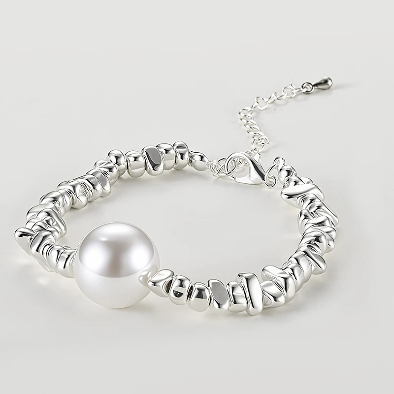 LOW MOQ High Quality Wholesale Silver Pearl Bracelet Jewelry with Roll Ball Pendant