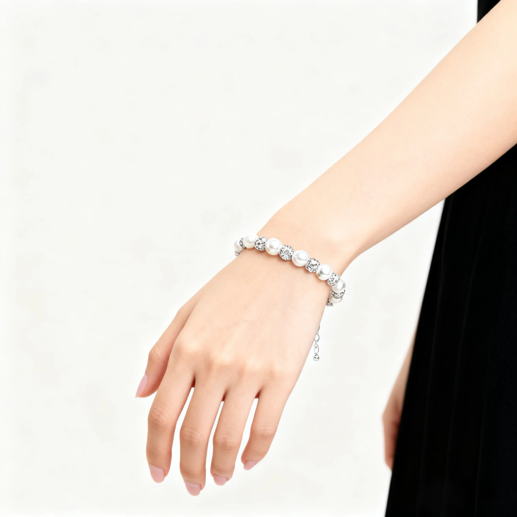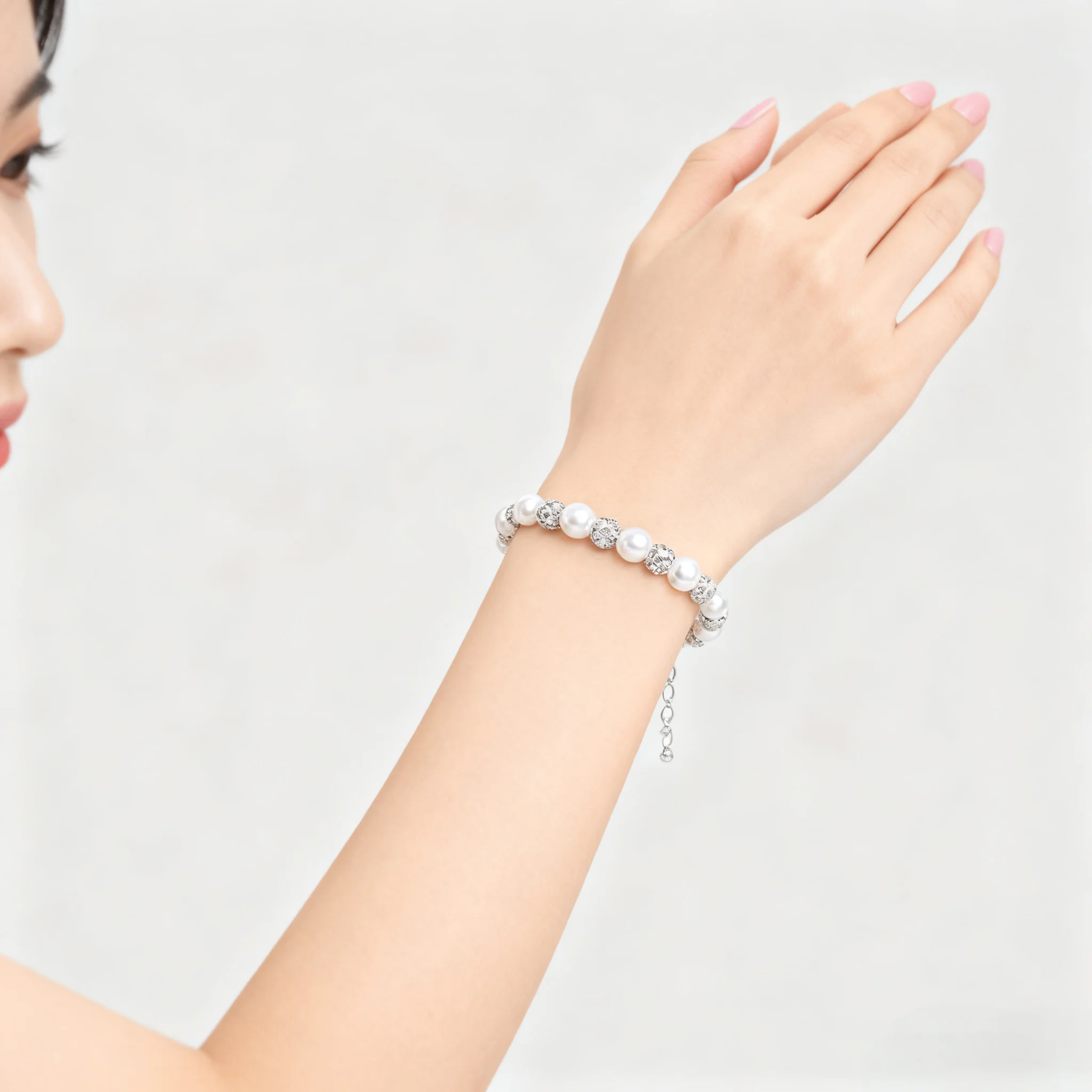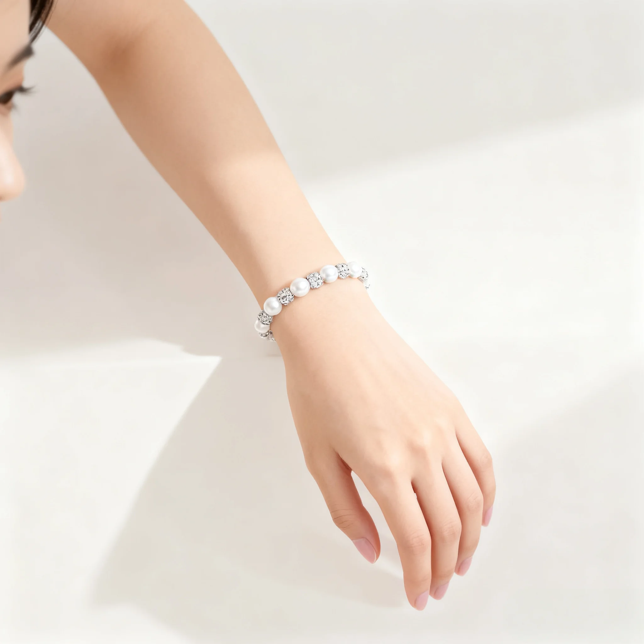 Elegant Women's Pearl Bracelet with Crystal Rhinestone Beads Silver Tone Adjustable Chain Fashion Jewelry for Wedding Party