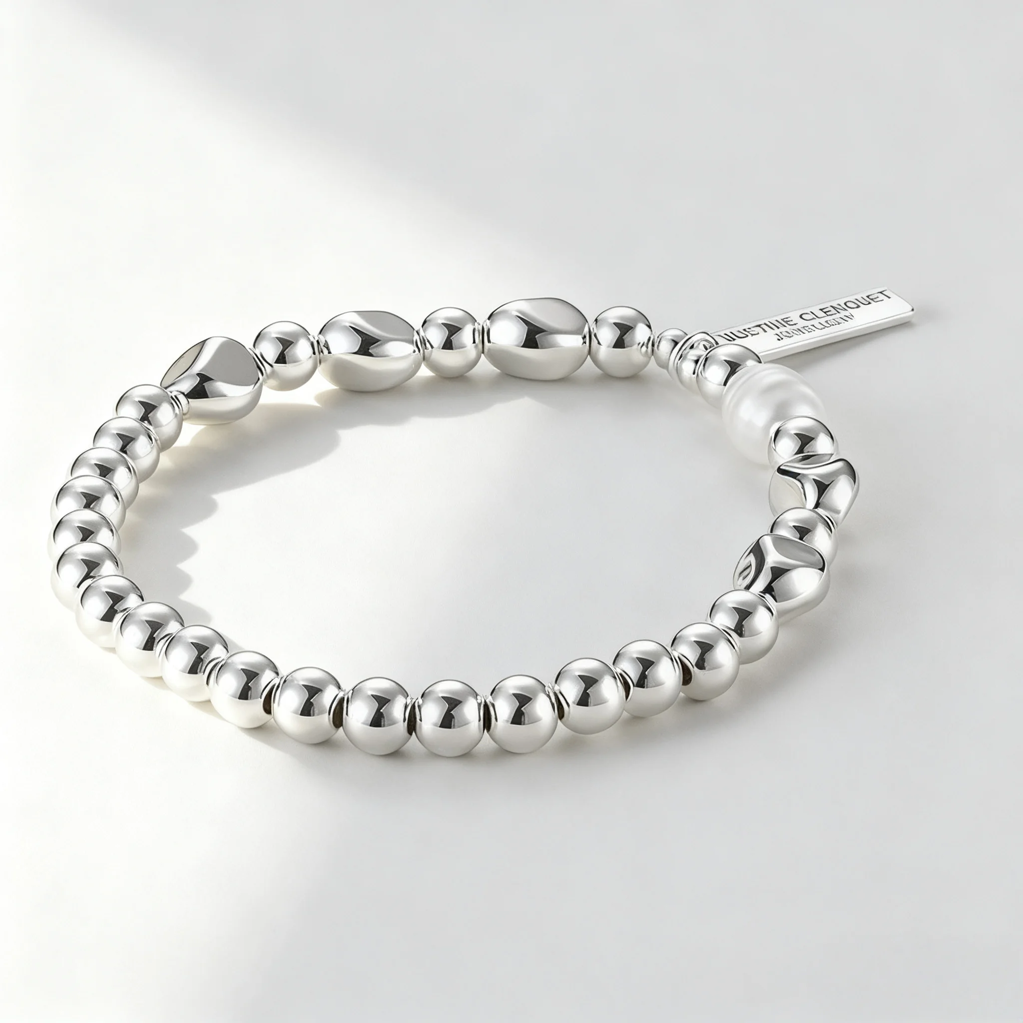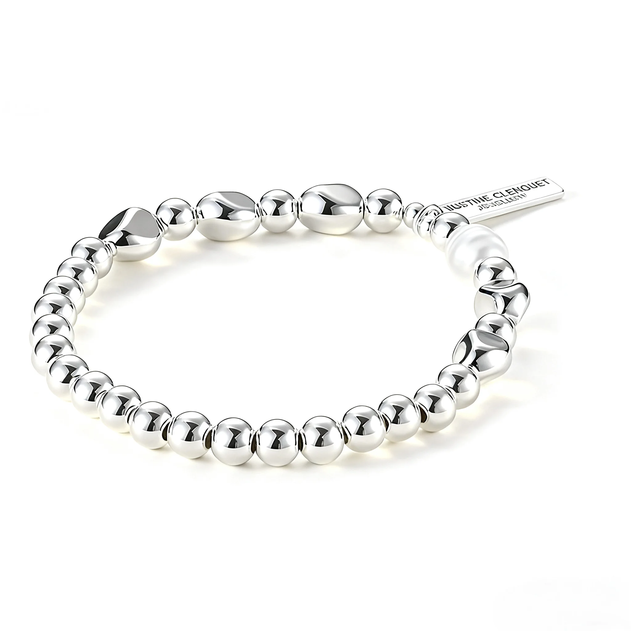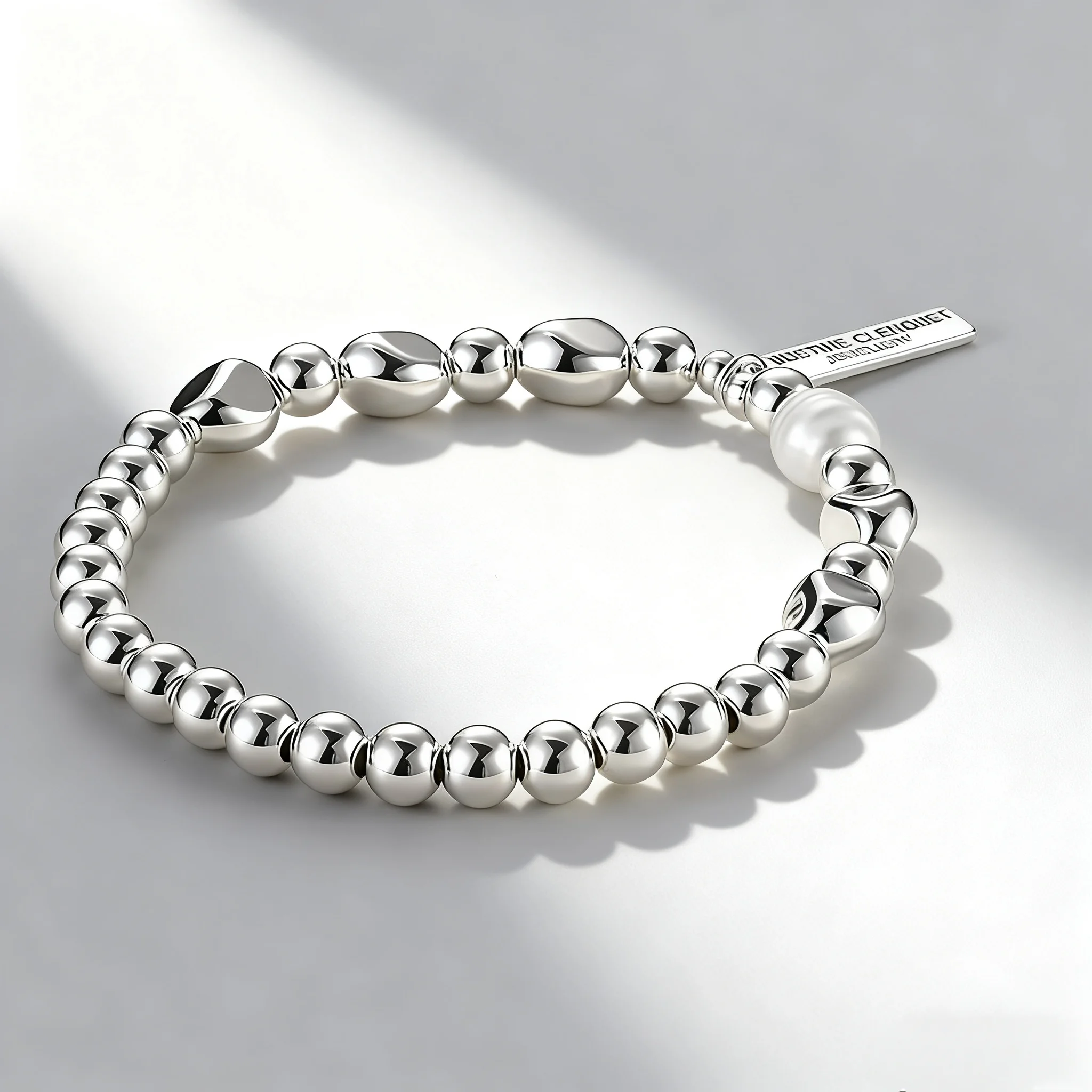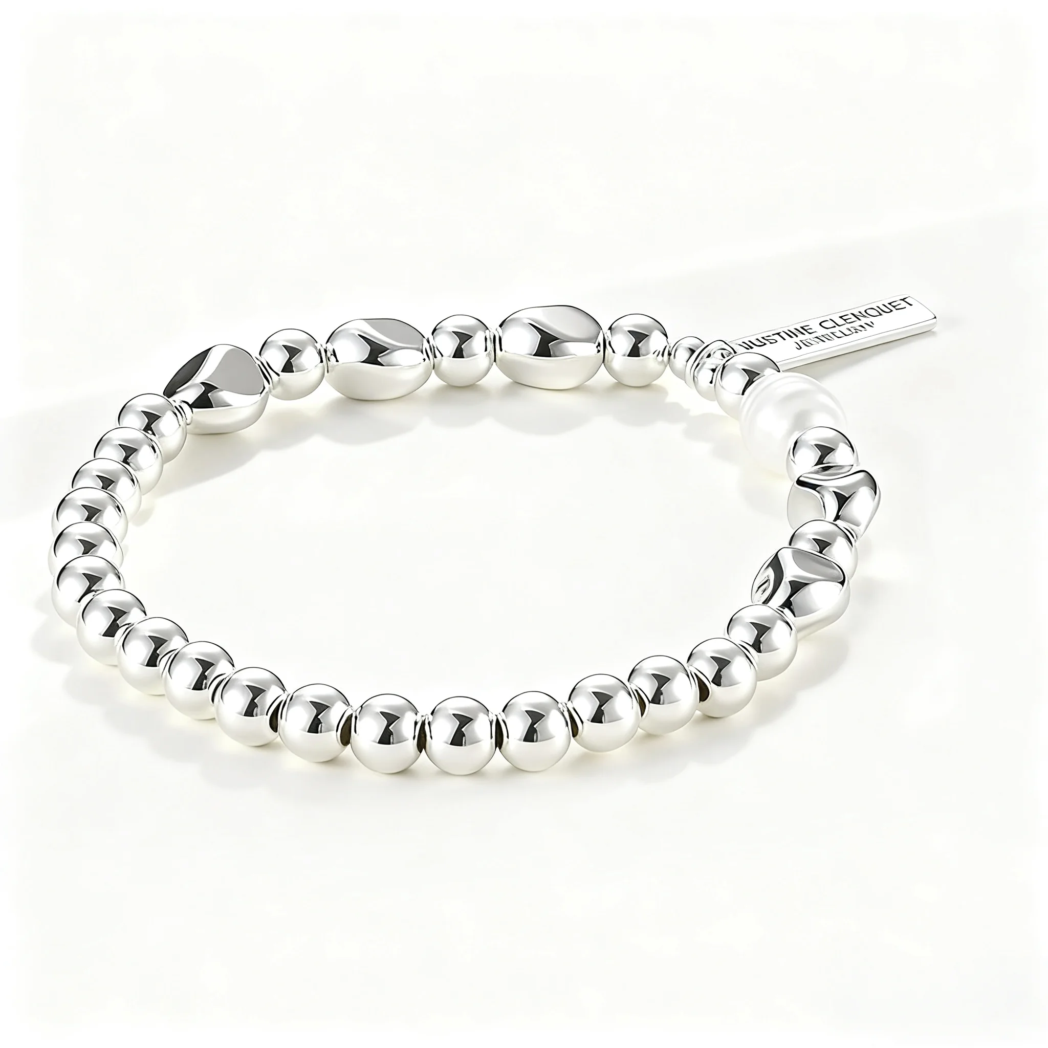 Women's Silver Tone Beaded Bracelet with Pearl Minimalist Elastic Design Fashion Jewelry for Daily Wear Trendy Accessory Gift