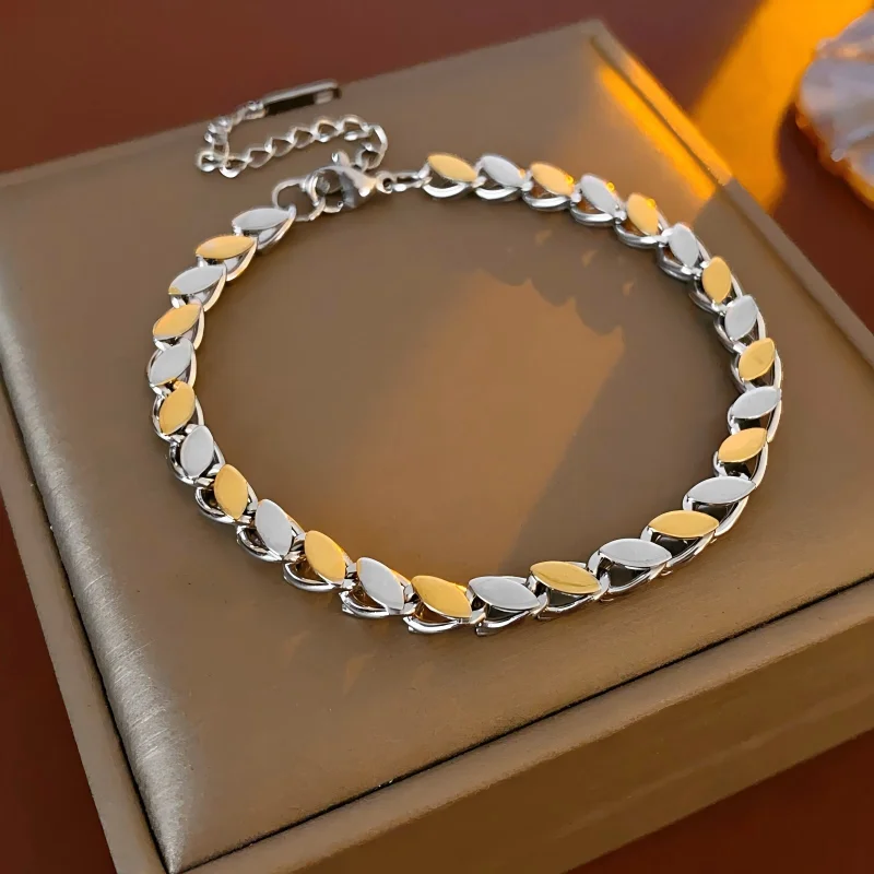 Muxcor Charm Fashion Chain & Link Bracelets Titanium Steel Simple Thick Chain Bracelet Classic Jewelry for Women Men Couple