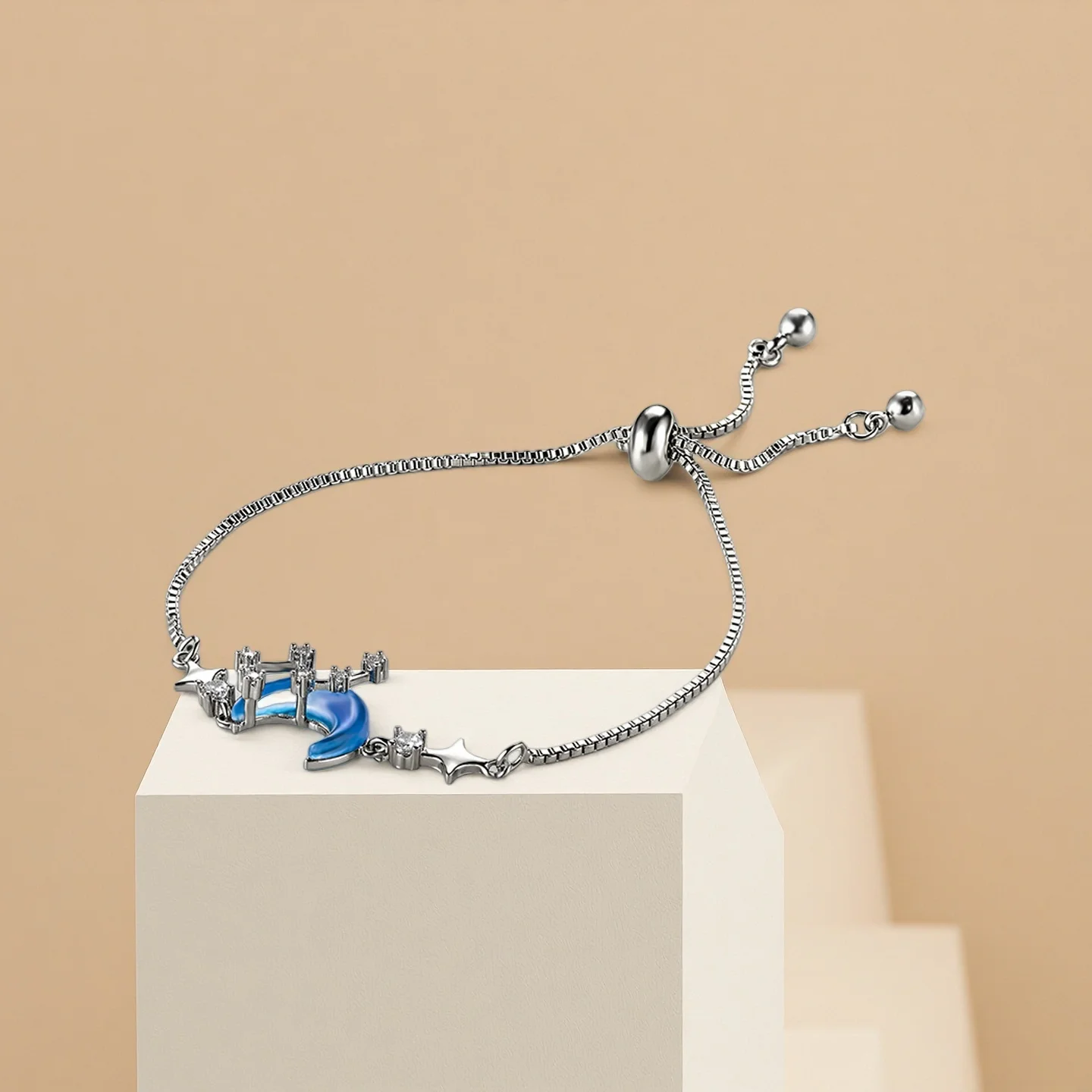 Sweet Star Moon Adjustable Diamond-Encrusted Fashion Charm Bracelet Bangles High-End All-Match Accessory for Womens Girls