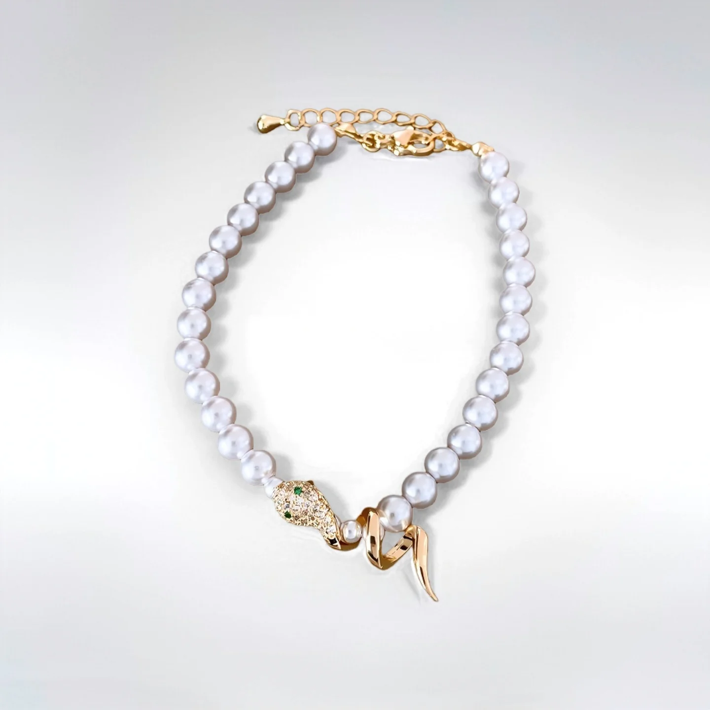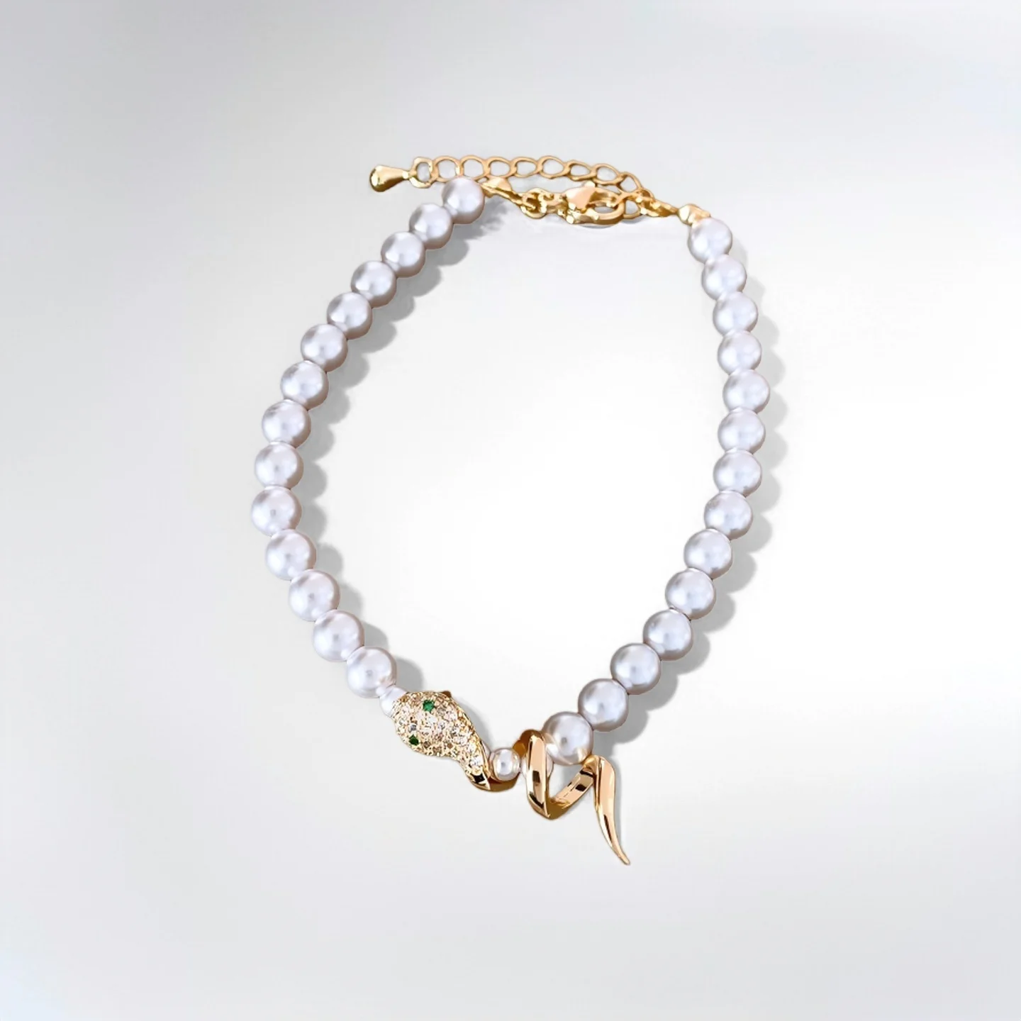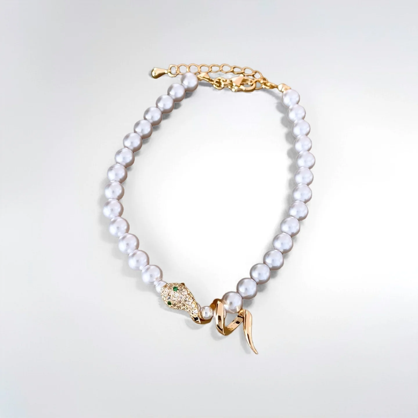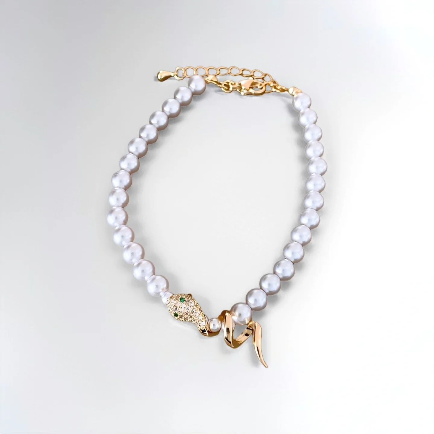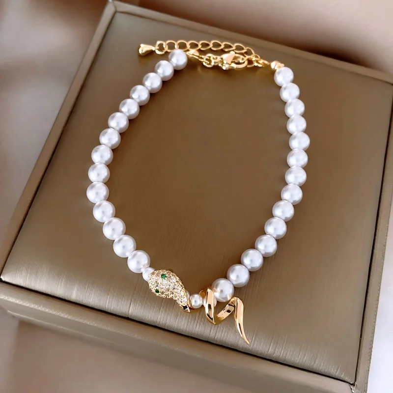 Woman Custom Imitation Pearl Bracelet Beaded Hollowed Snake-wrapped Zircon Copper Bracelets Wedding Jewelry Fashion Jewellery