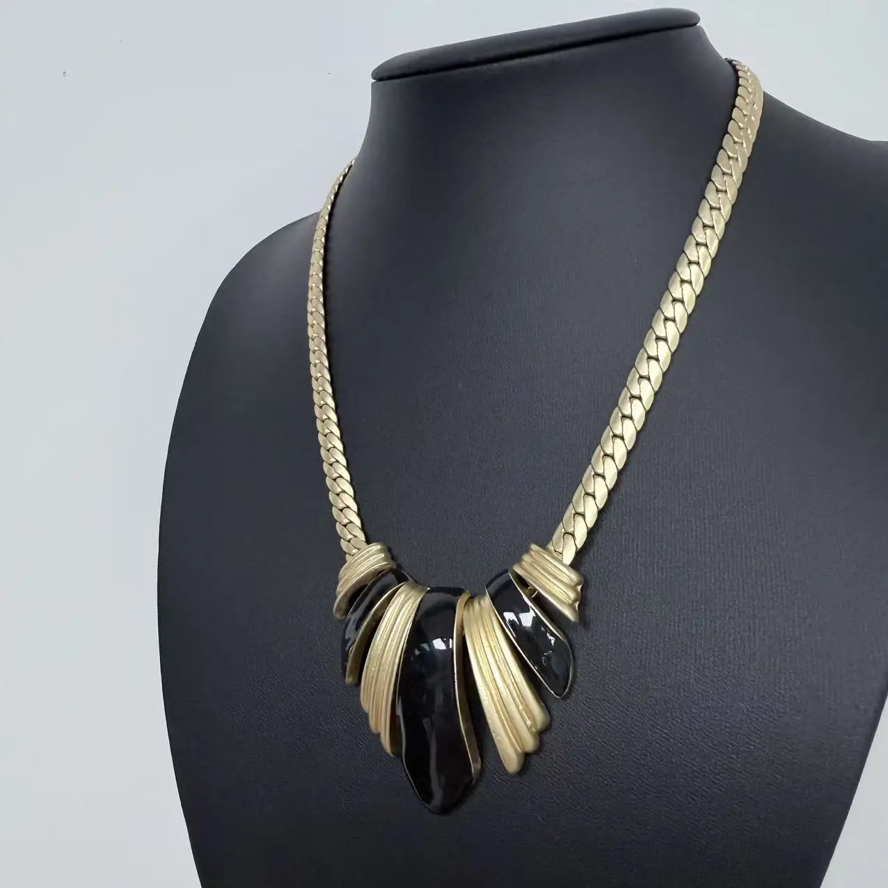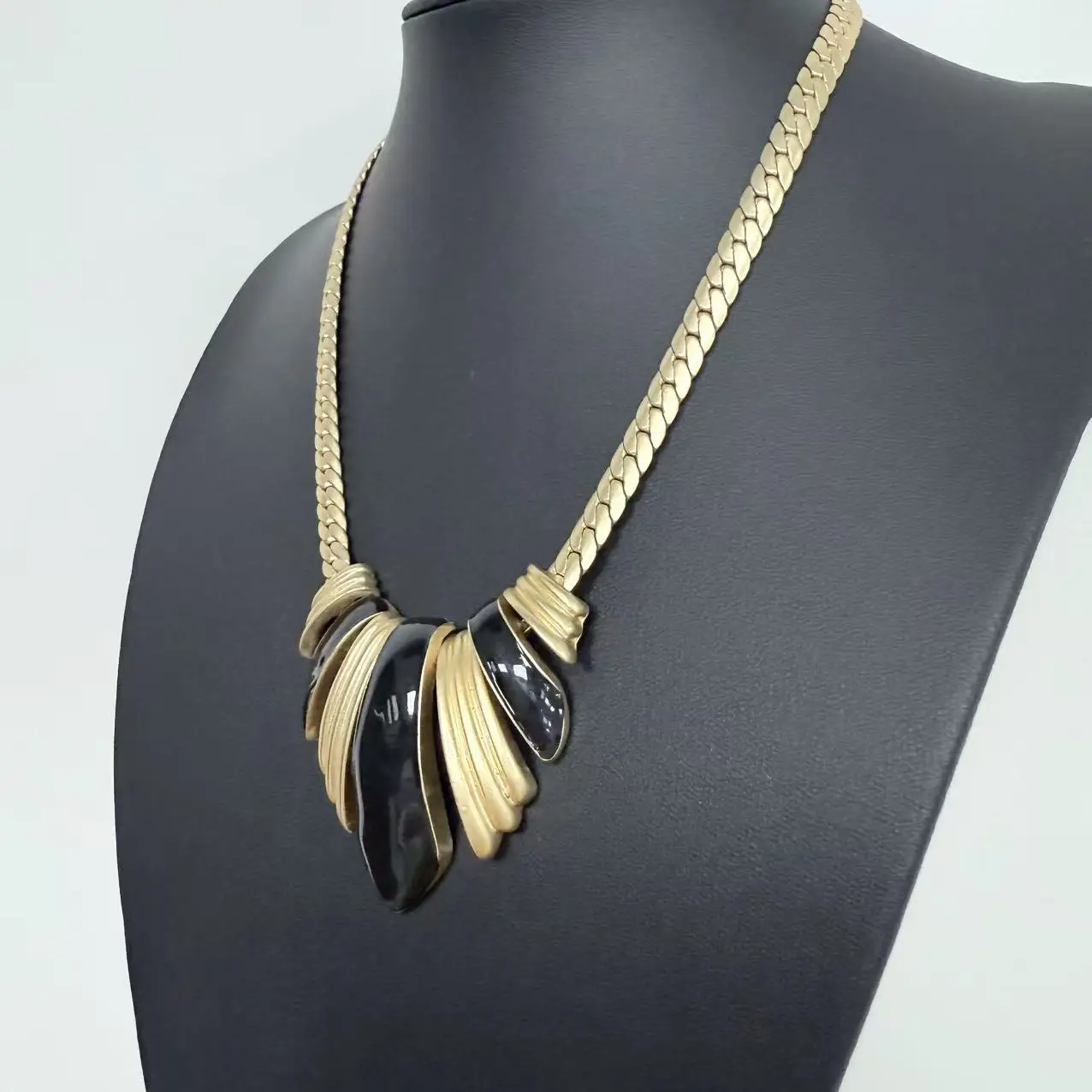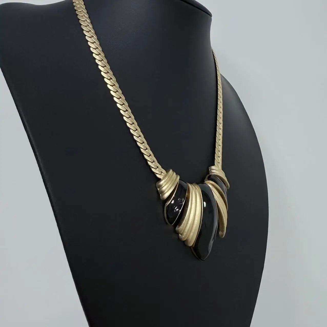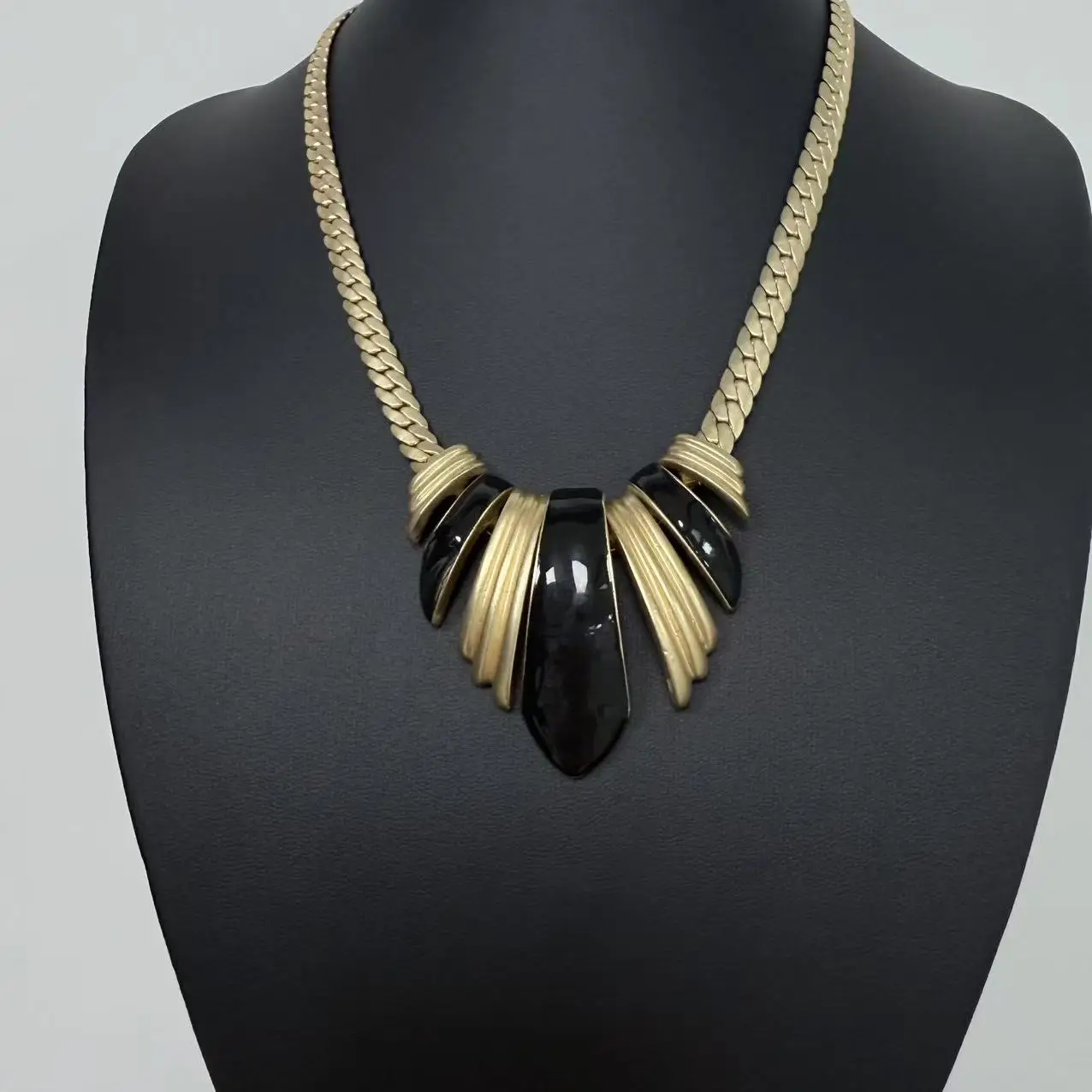 Hot Retro Black Gold Inverted Triangle Copper Alloy Snake Bone Chain Temperament Women with Cuban Chain Gold Pendant Necklace