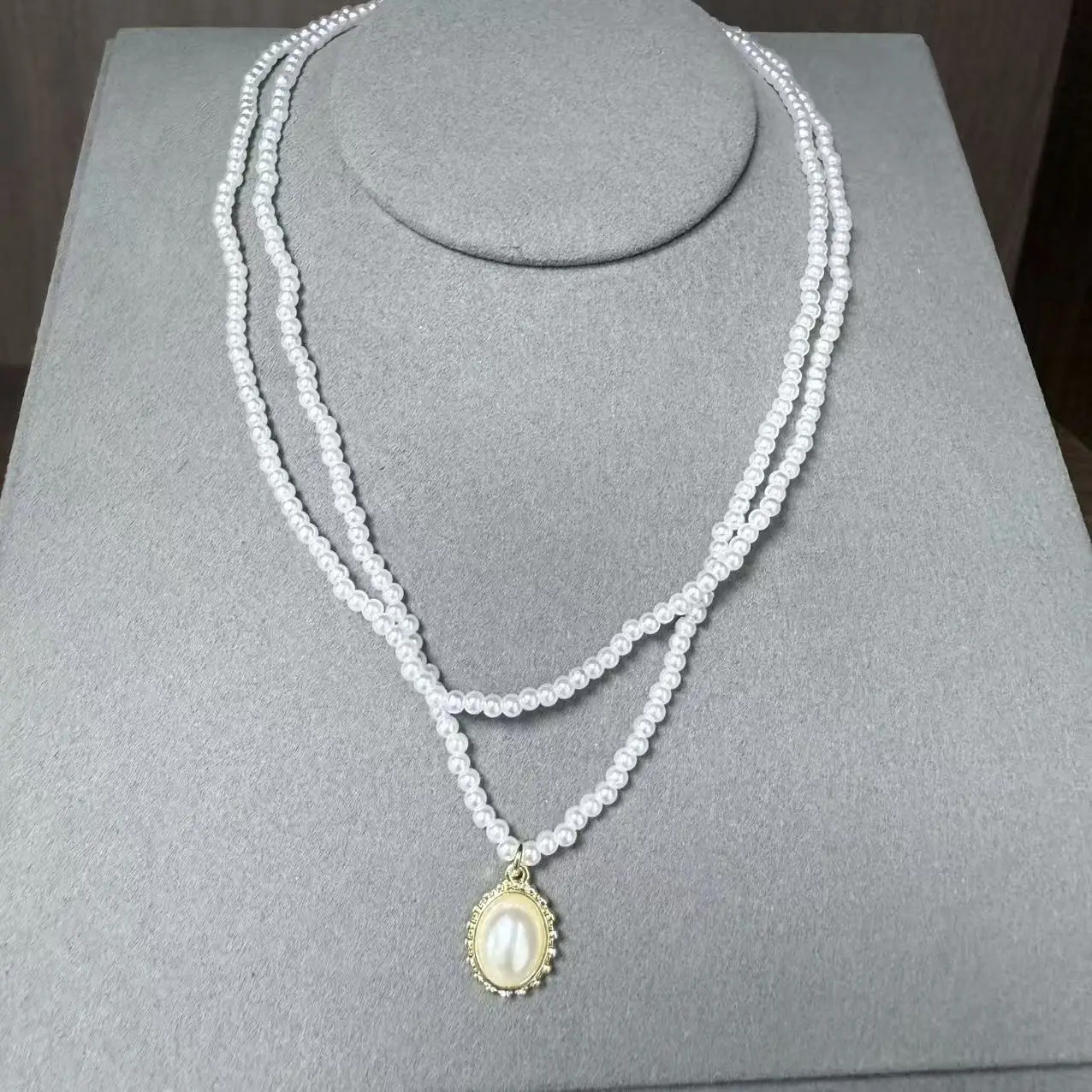 Wholesale Korean Version Double Layer Pearl Necklace Gold Plated Light Luxury Temperament Fashionable Chain Necklace