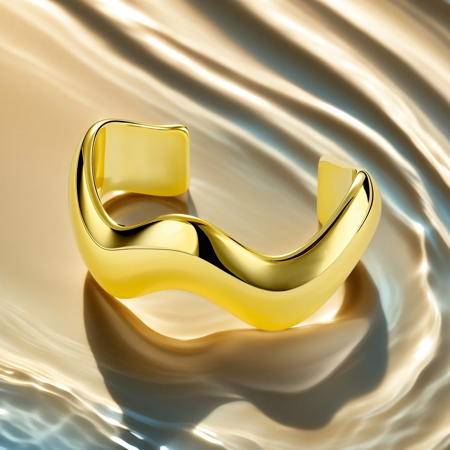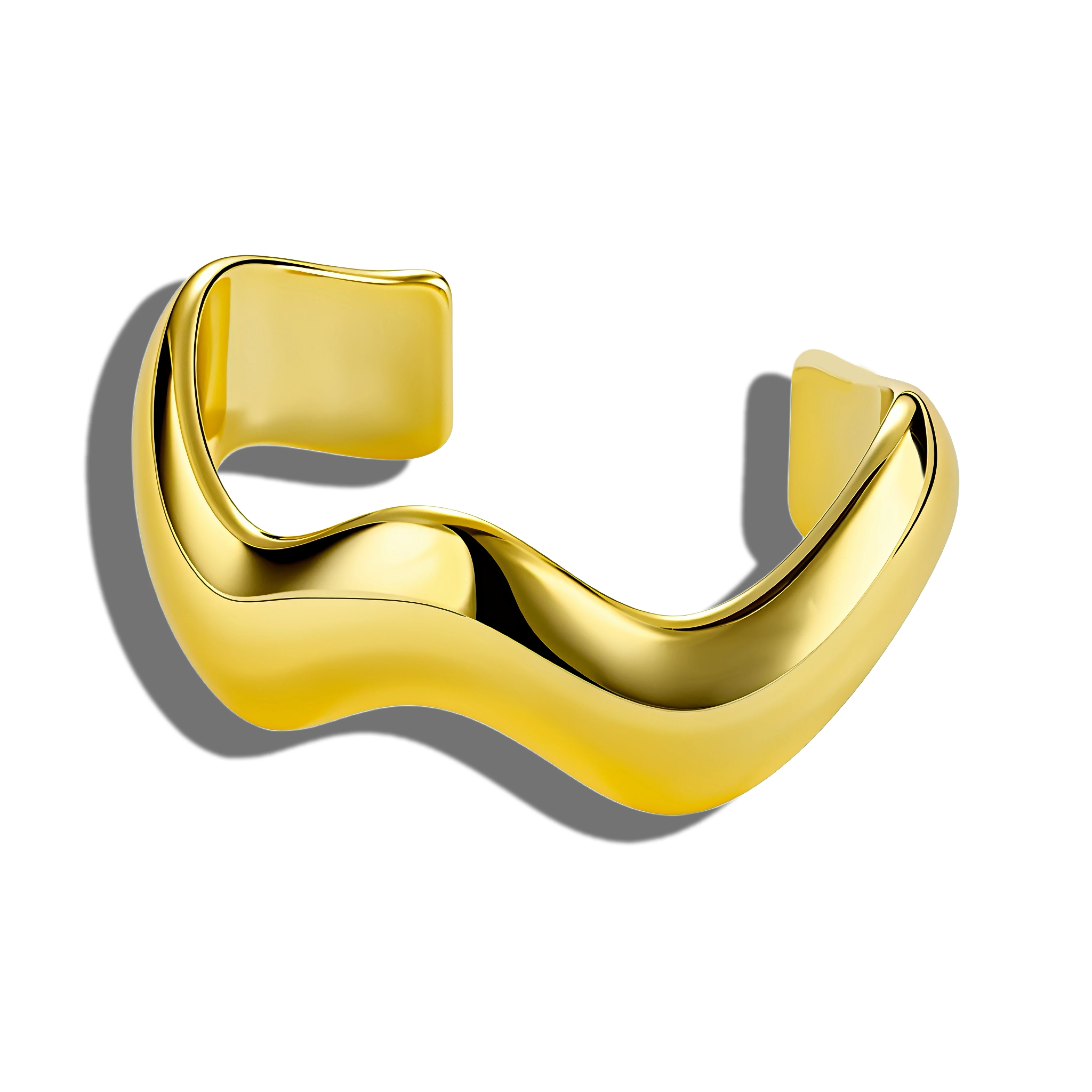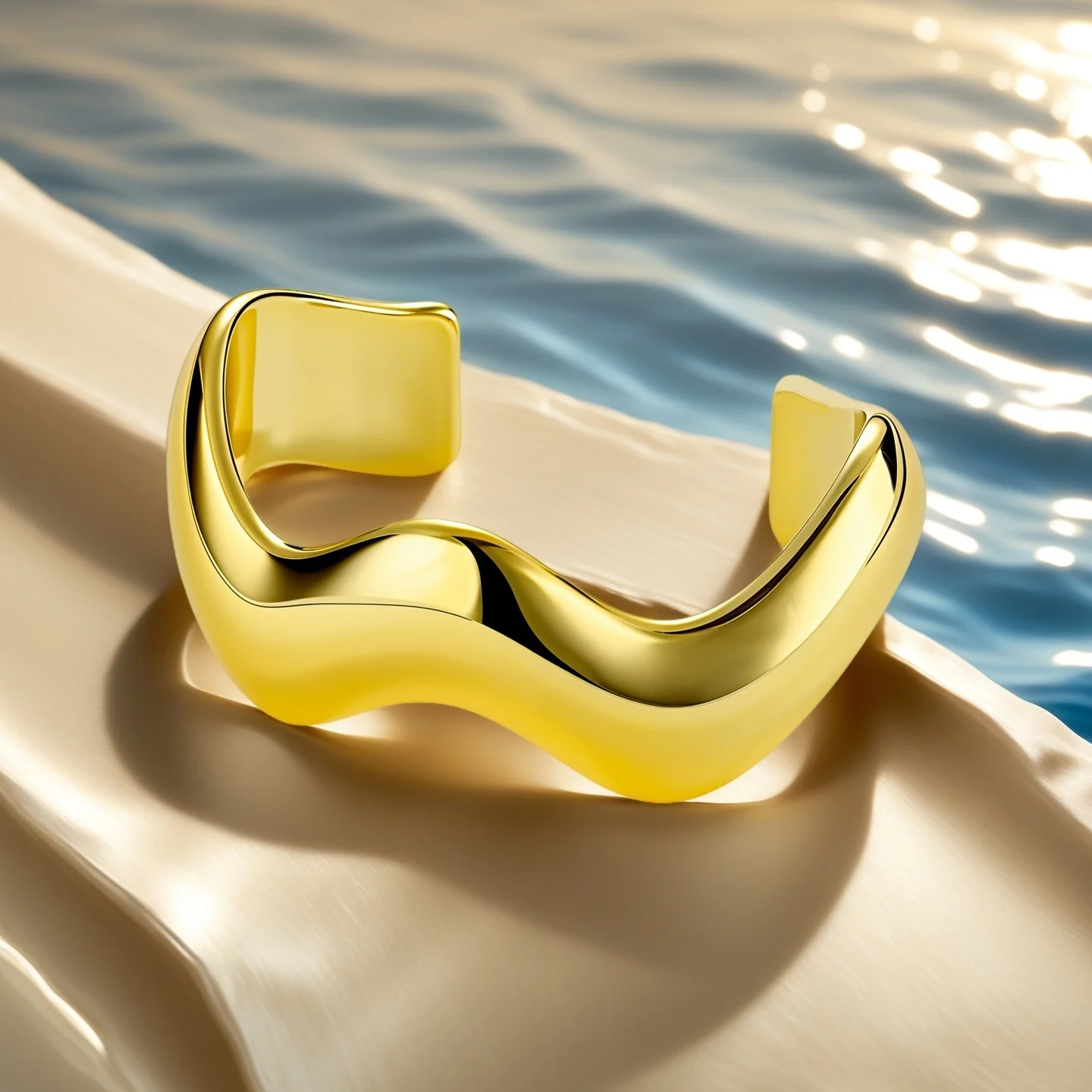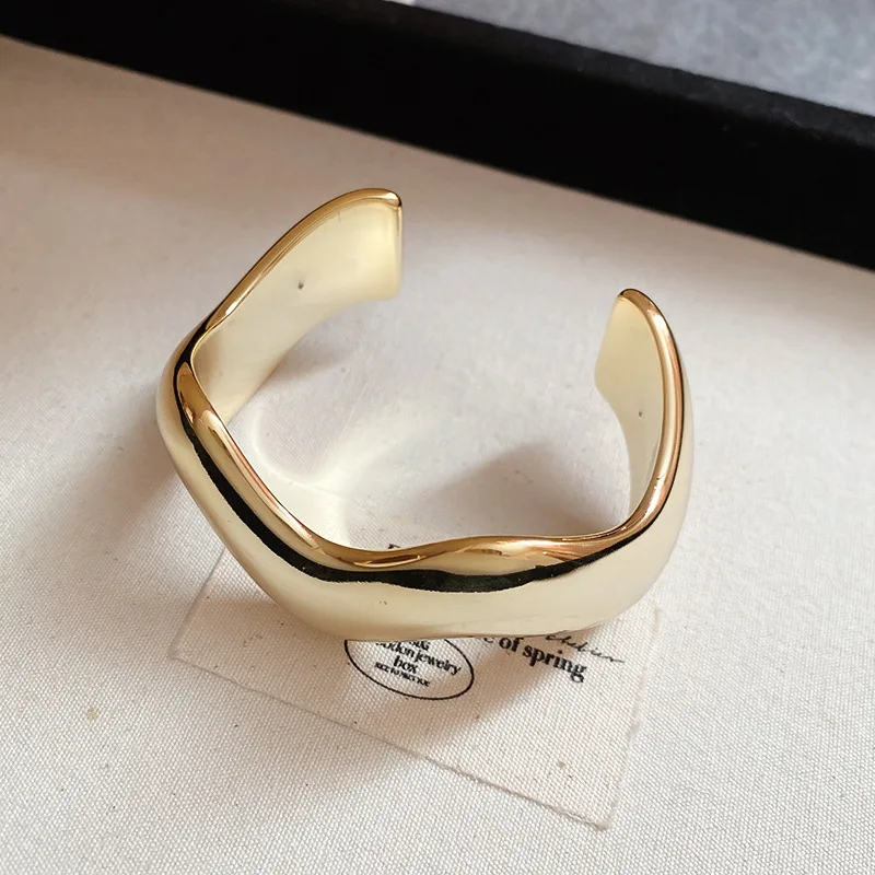 Low MOQ Wholesales Statement Adjustable Golden Plated Retro Wave Design Cuff Glossy Bangles Jewelry for Women Bracelet