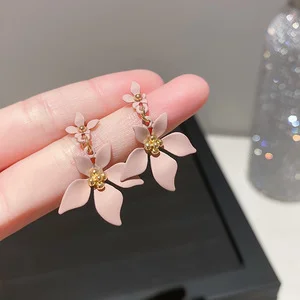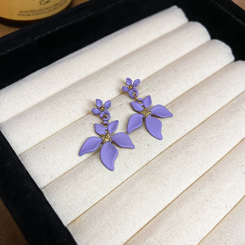 New Trendy Wholesale Earrings Euro Style Alloy Flower Drop Earring for Women Romantic Colorful Petals Earring Jewelry