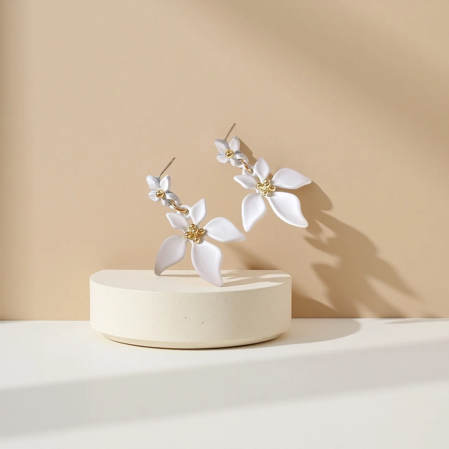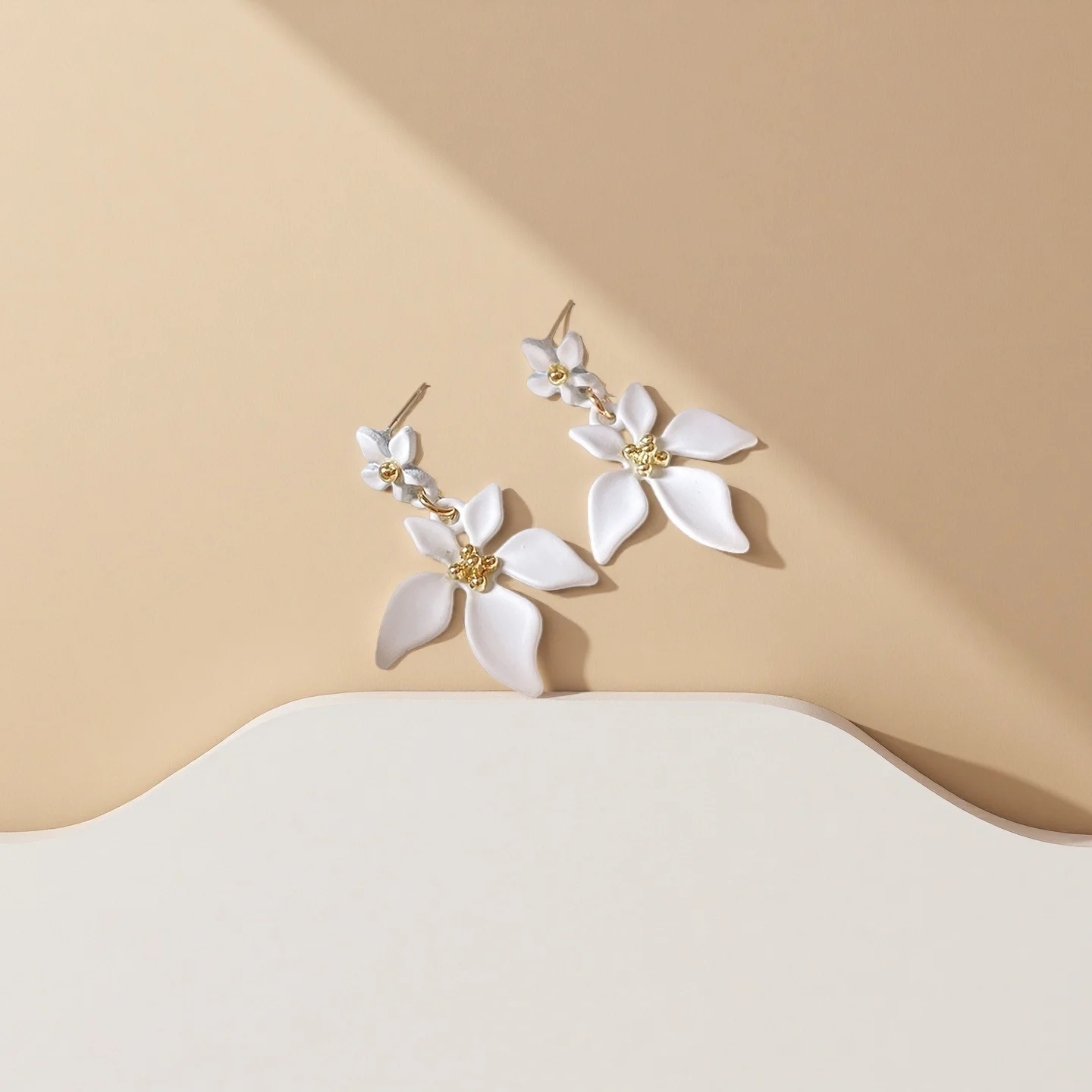 New Trendy Wholesale Earrings Euro Style Alloy Flower Drop Earring for Women Romantic White Petals Earring Jewelry