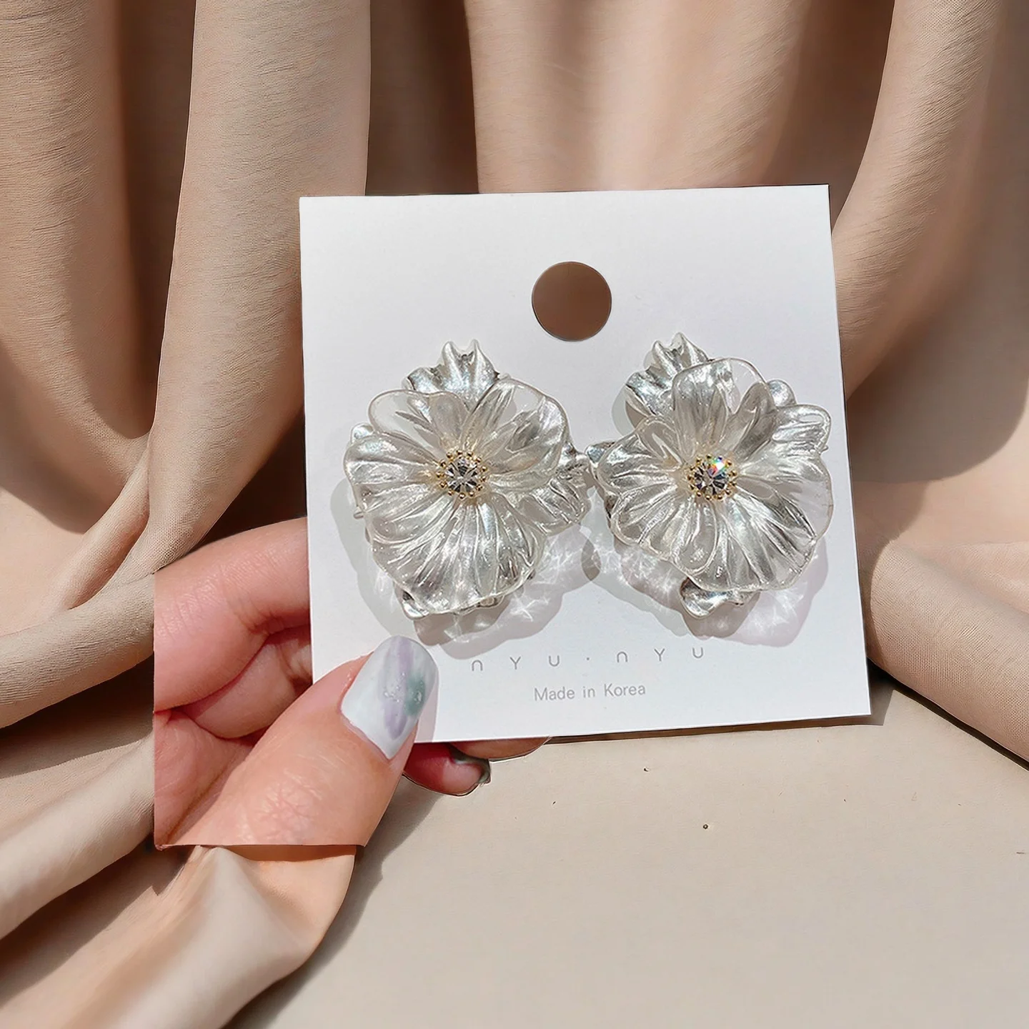 New Factory Wholesale Earrings American Retro Style Metal Crystal Transparent Flower Stud Earrings for Women