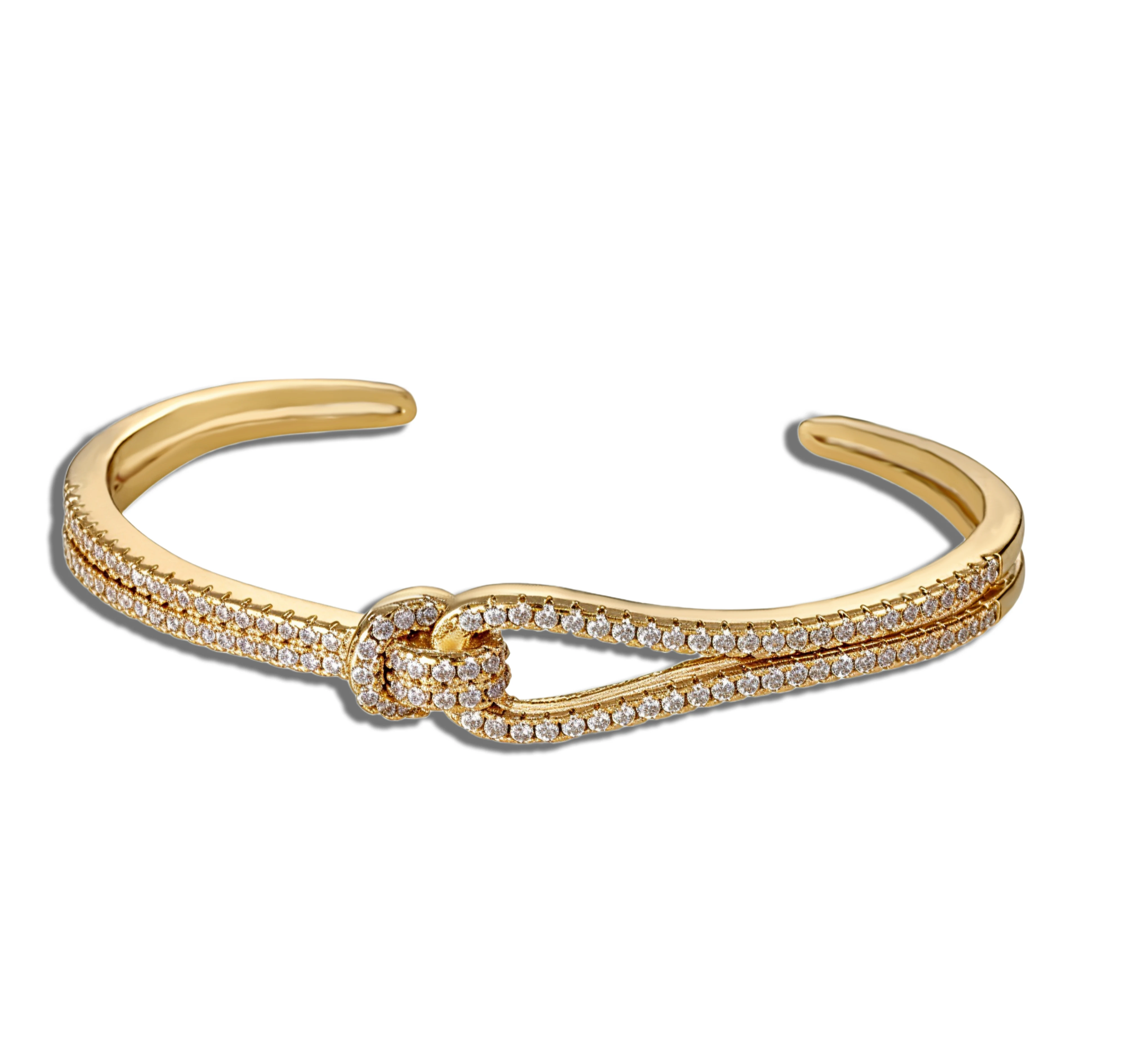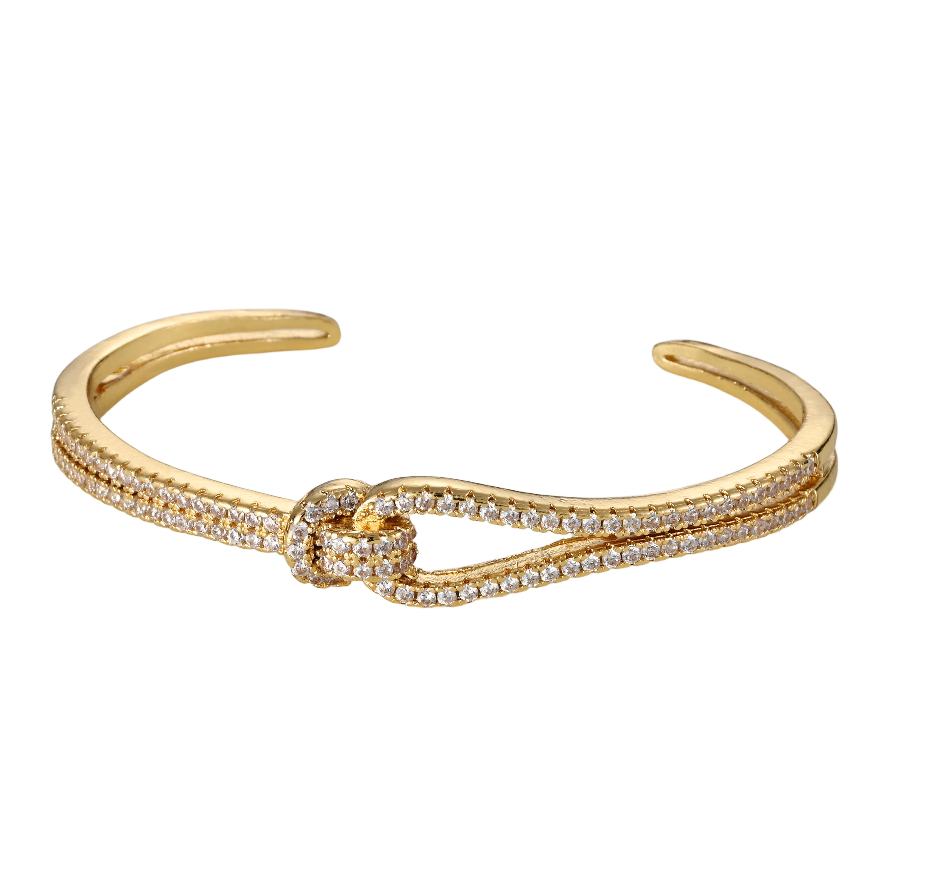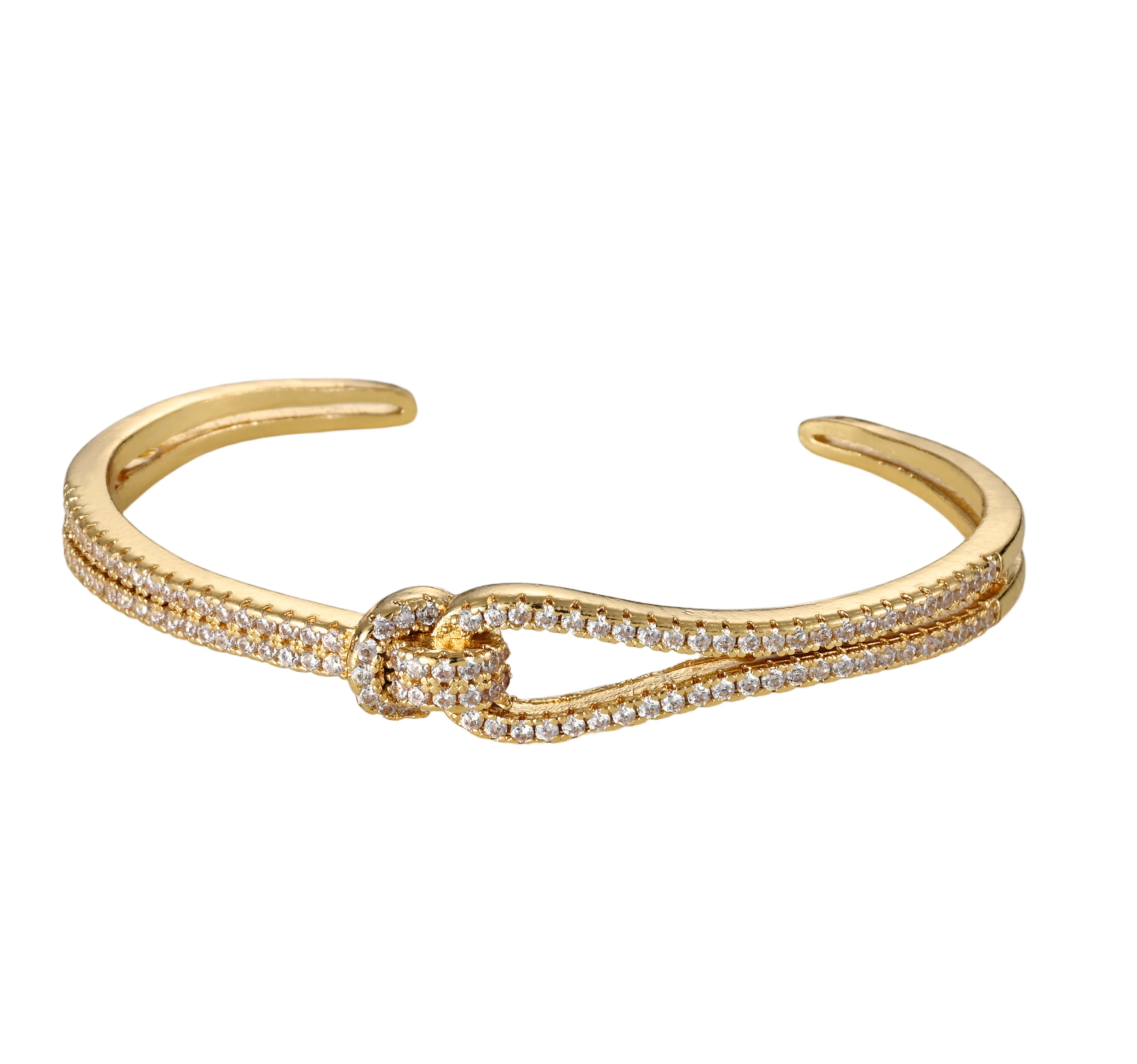 Fine Jewelry Women Gold Plated Alloy Custom Diamond Zircon Knot Cuff Ladies Bracelets and Bangles Lucky Knot Bracelet