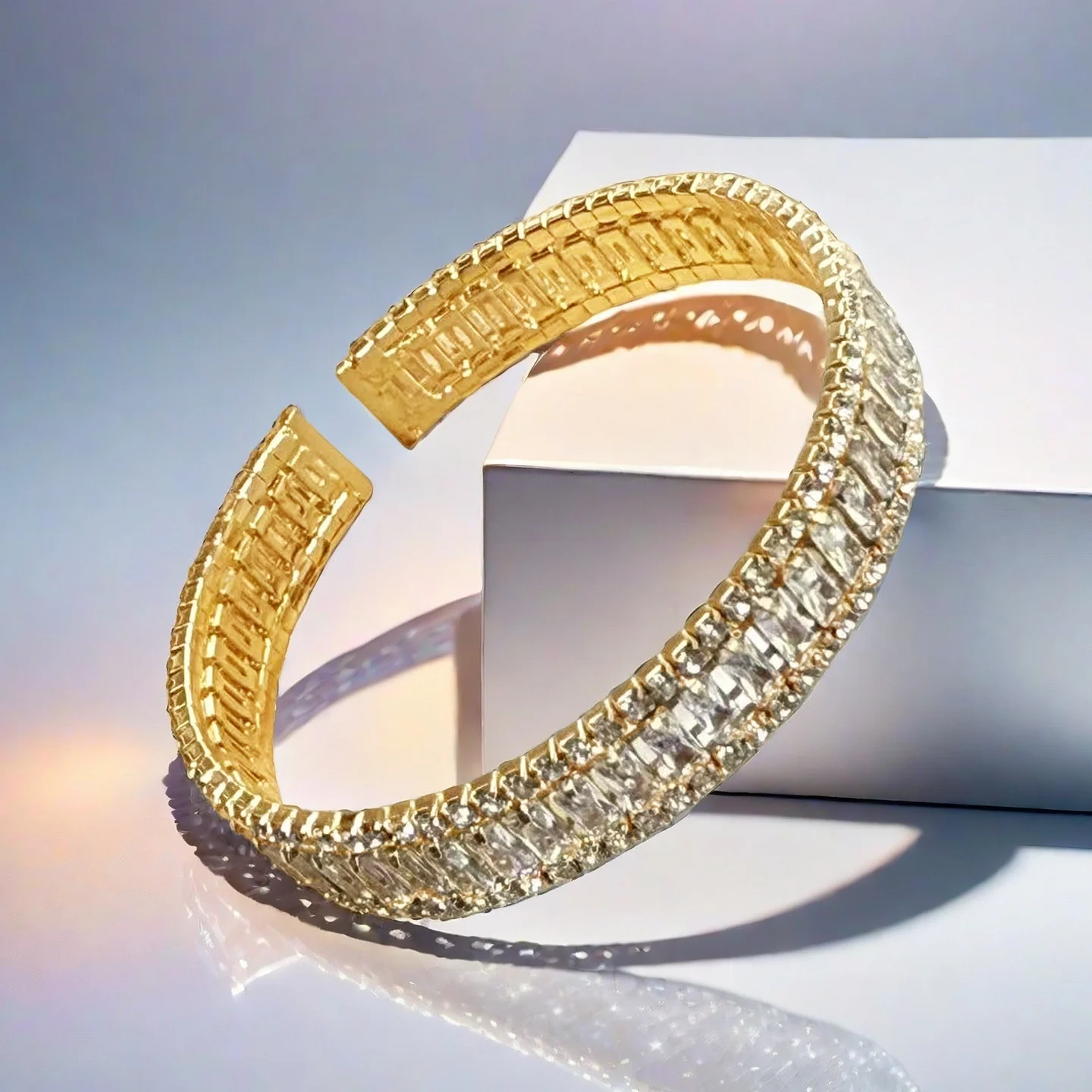 New Luxury Wedding Jewelry Fashion Design Shiny Diamond Zircon Bracelet Adjustable Opening Personality Bangles Jewelry for Women