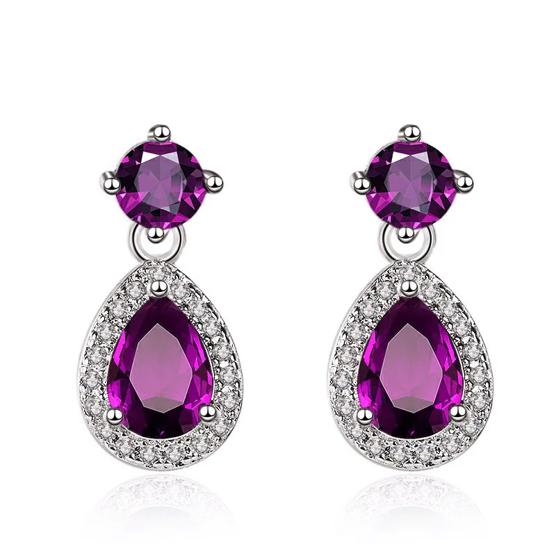 Wholesale Earrings Fashion Jewelry Colorful Cubic Zirconia Earrings Dangle Water Dropping Earrings Pendant Earrings for Women