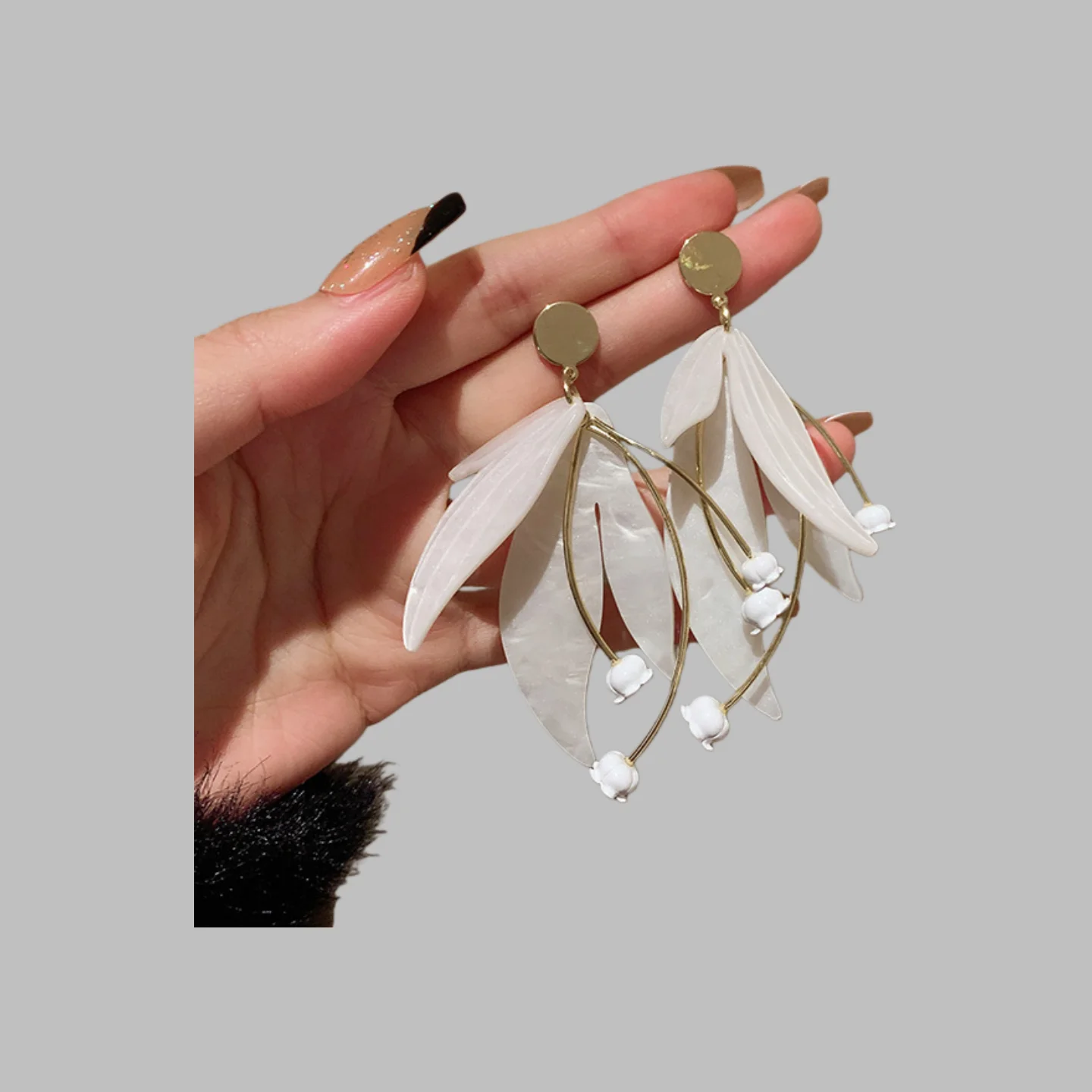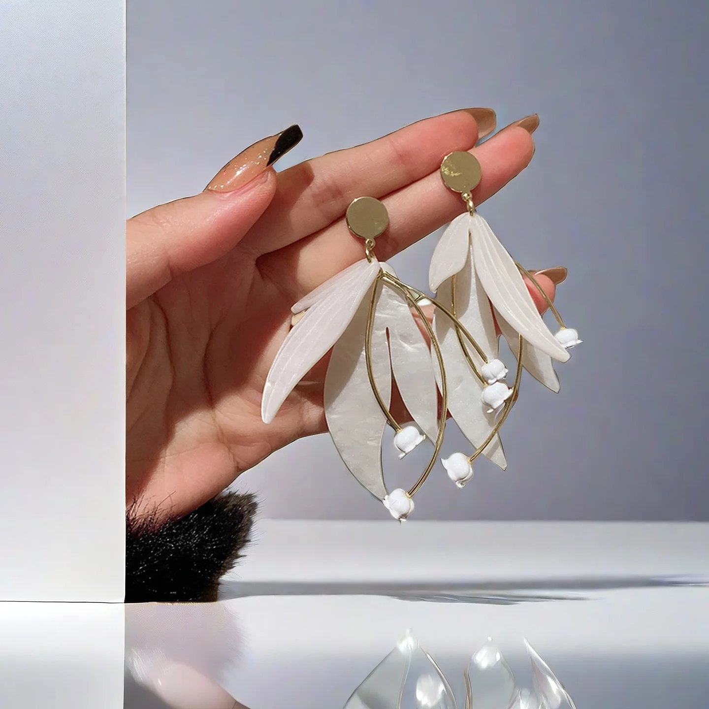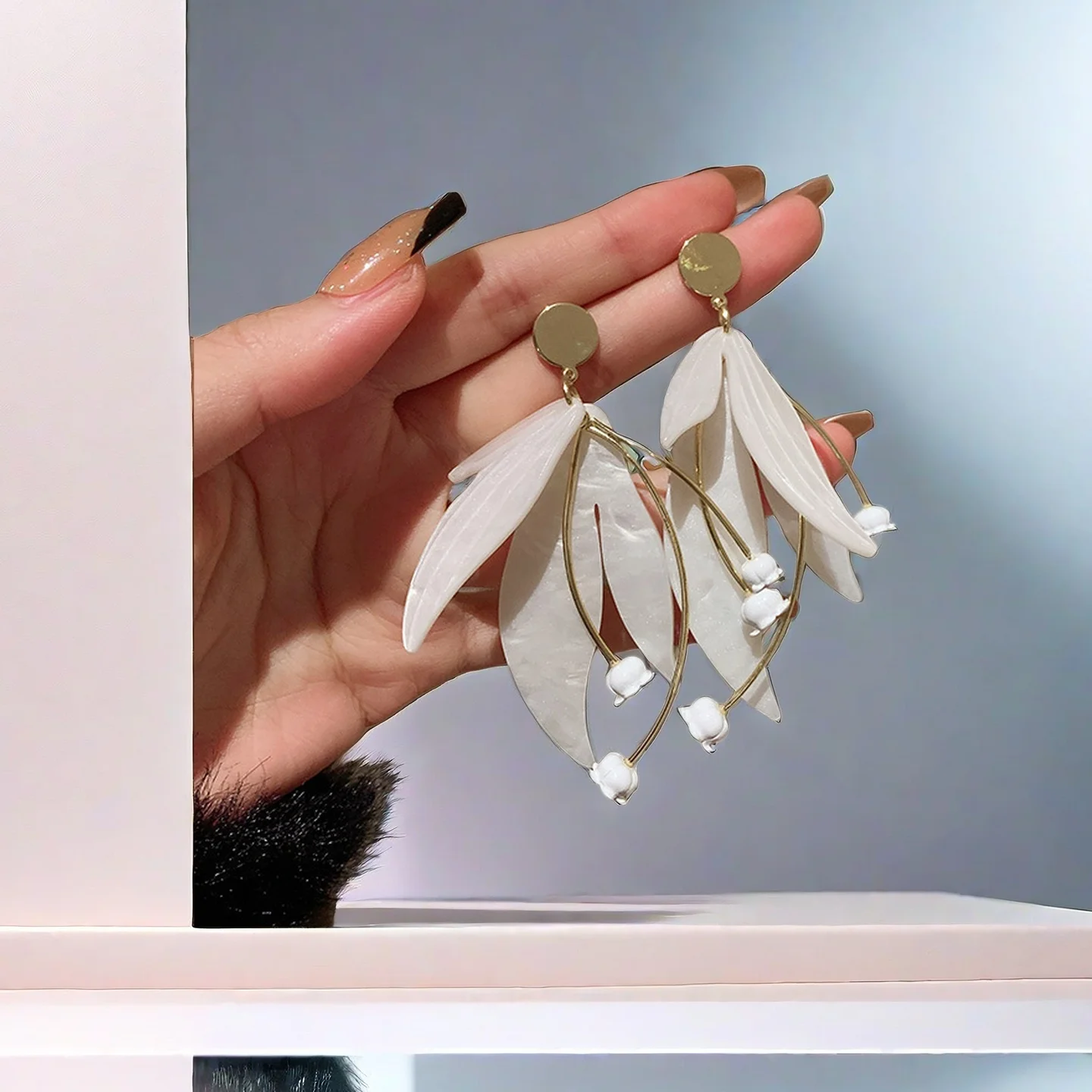 New Style Wholesale Earrings Luxurious Excessive White Flower Petal Stud Earrings Alloy Fashion Earrings for Women