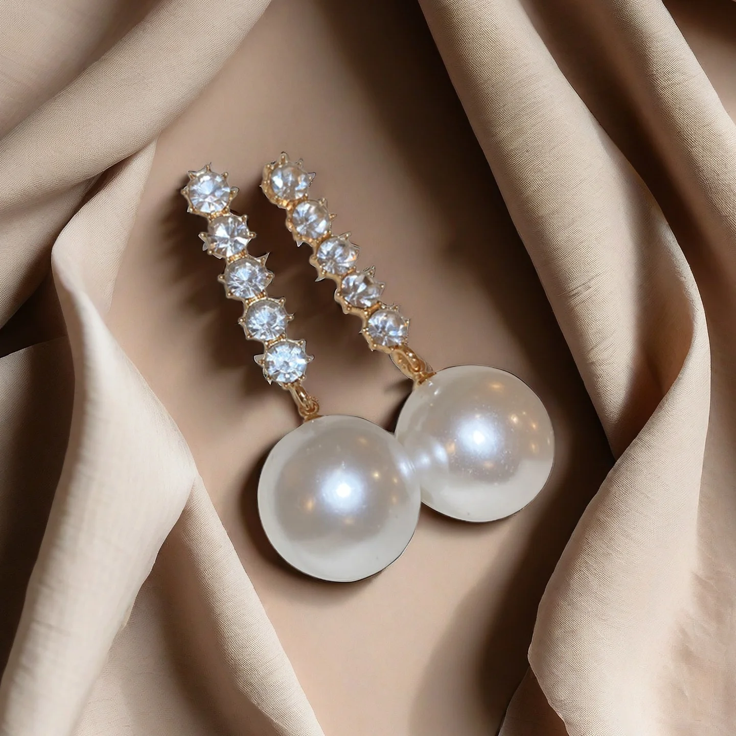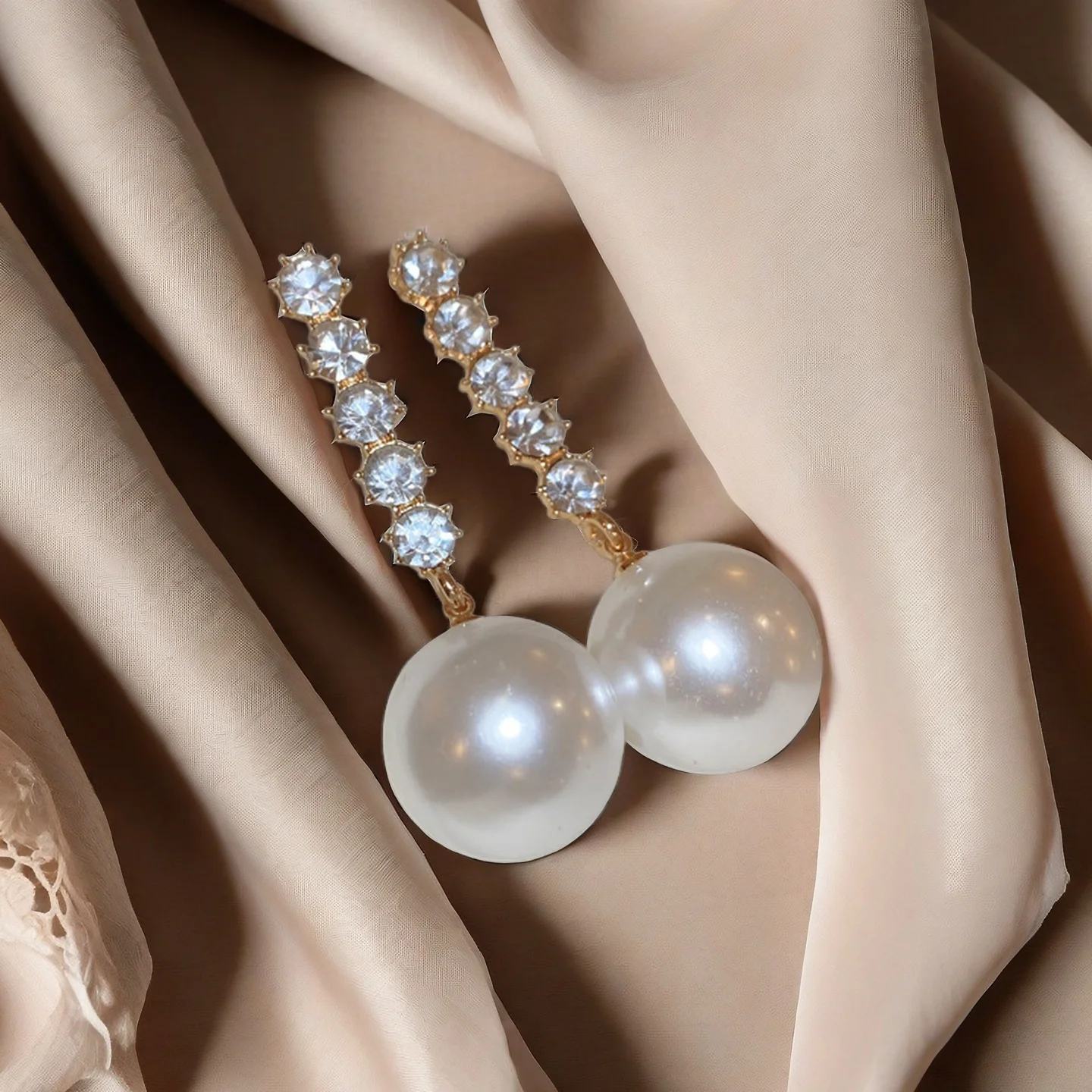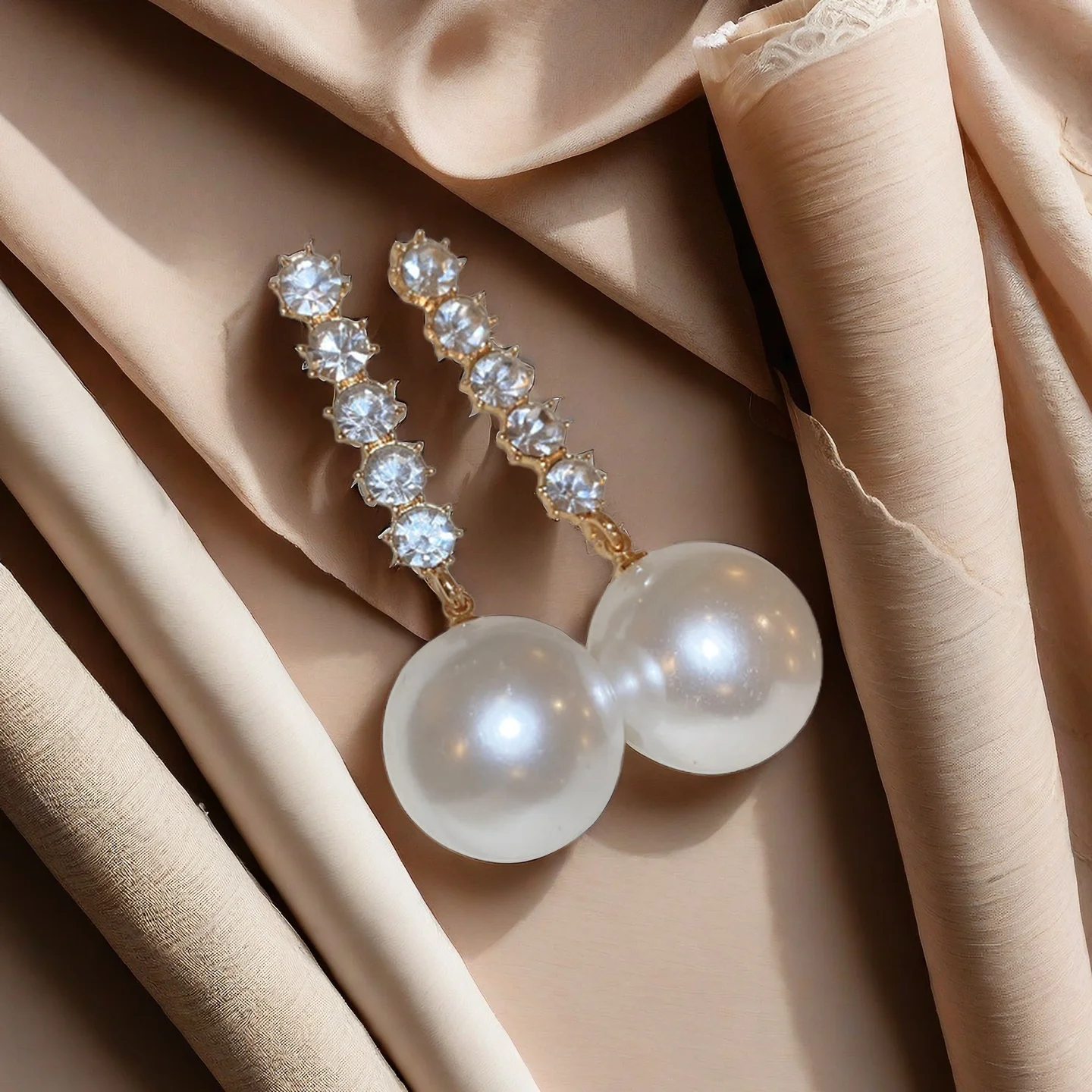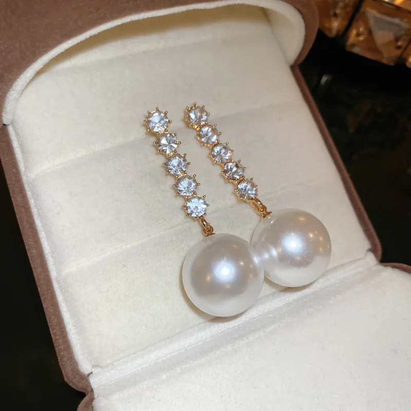 Fashion Korean Large Pearl Drop Wholesale Long Earrings for Women Elegance Golden Round Zircon Wedding Earrings Jewelry Gift