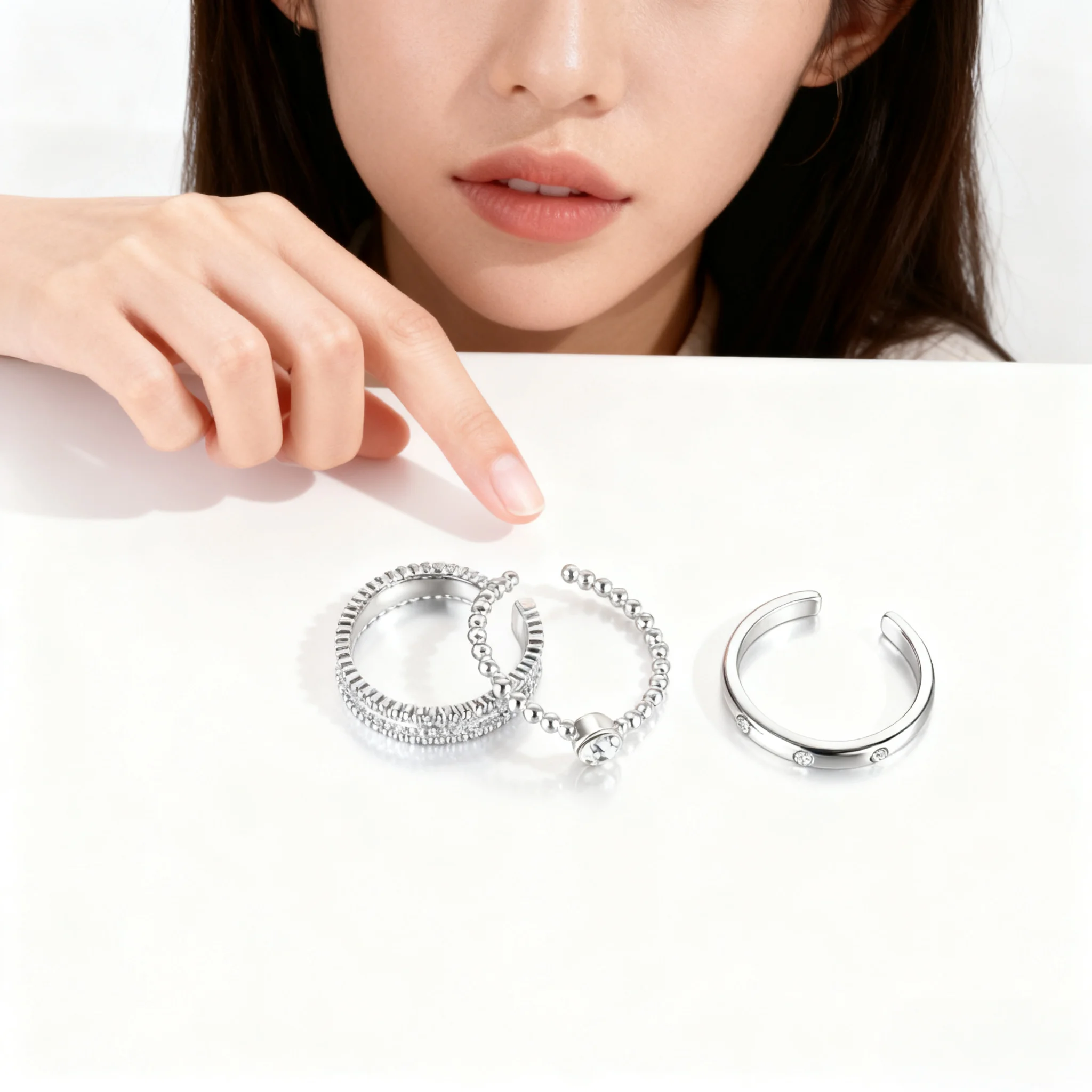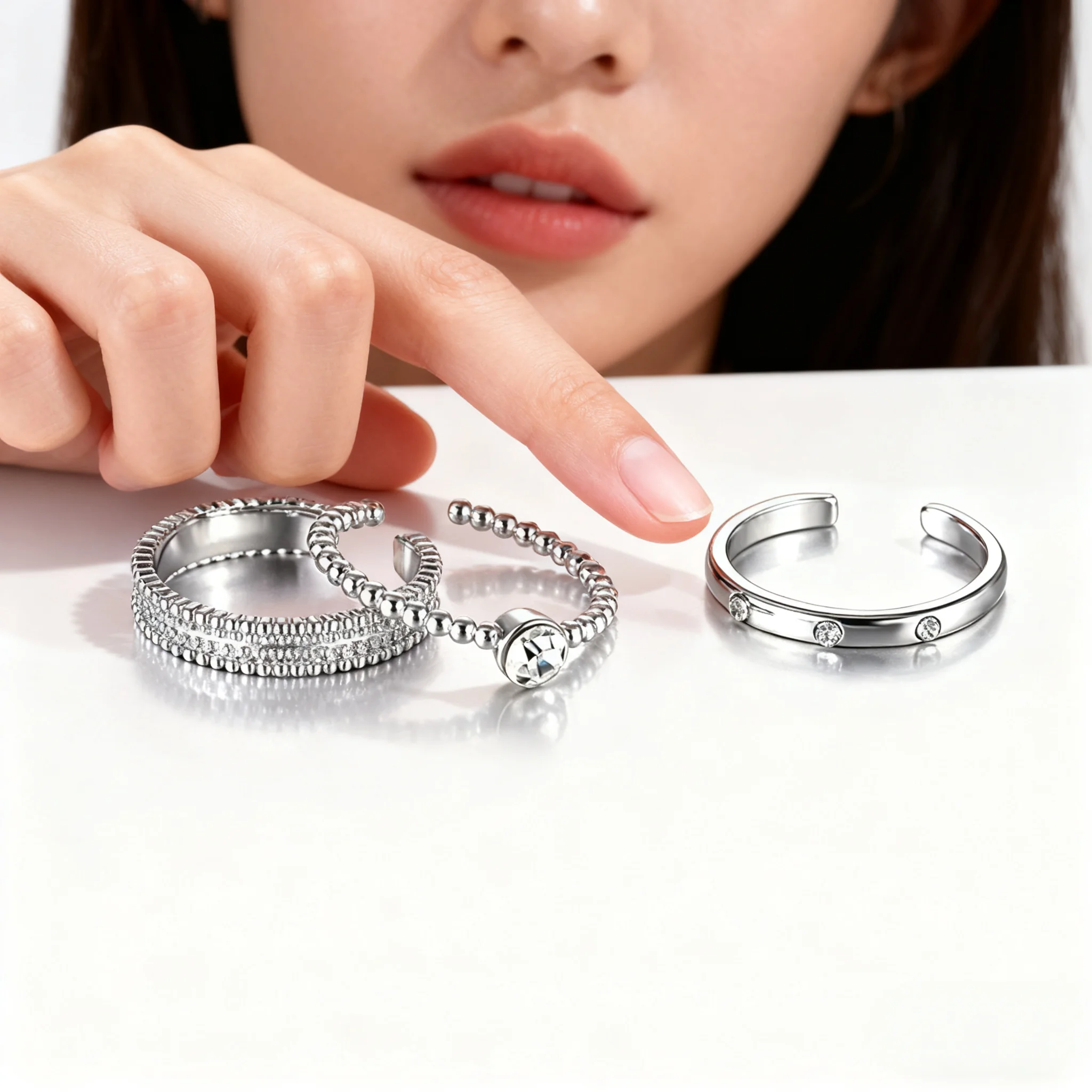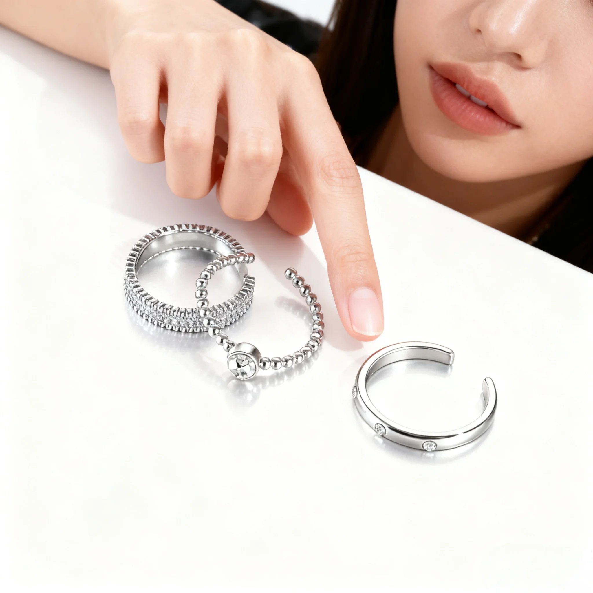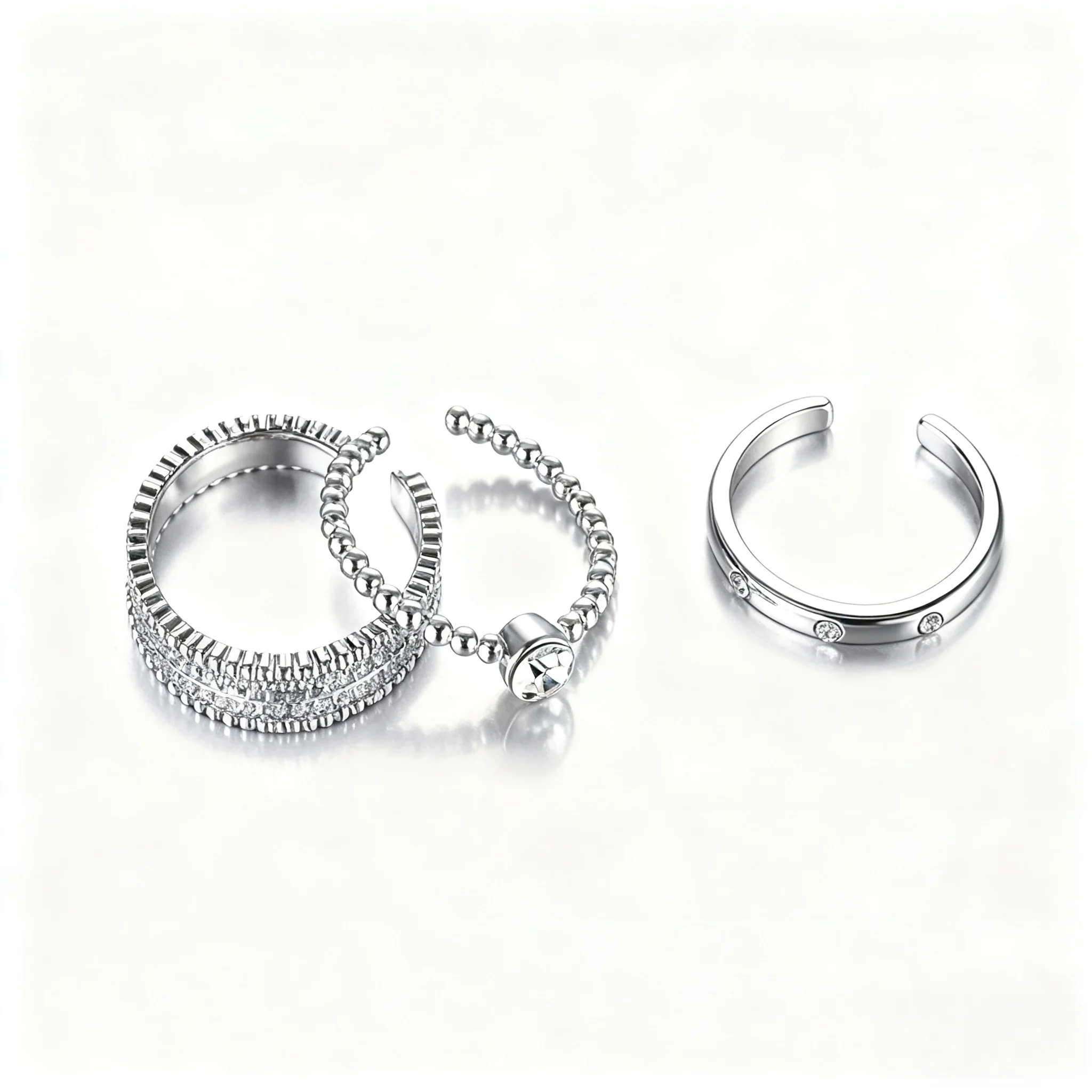 Silver Open Ring Set Zircon Textured Designs 3pcs Fashionable Stackable Rings Women Trendy Statement Jewelry Daily Wear Gift