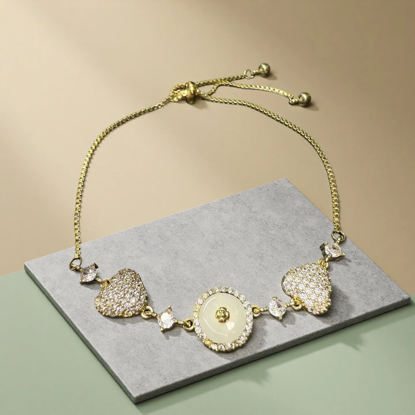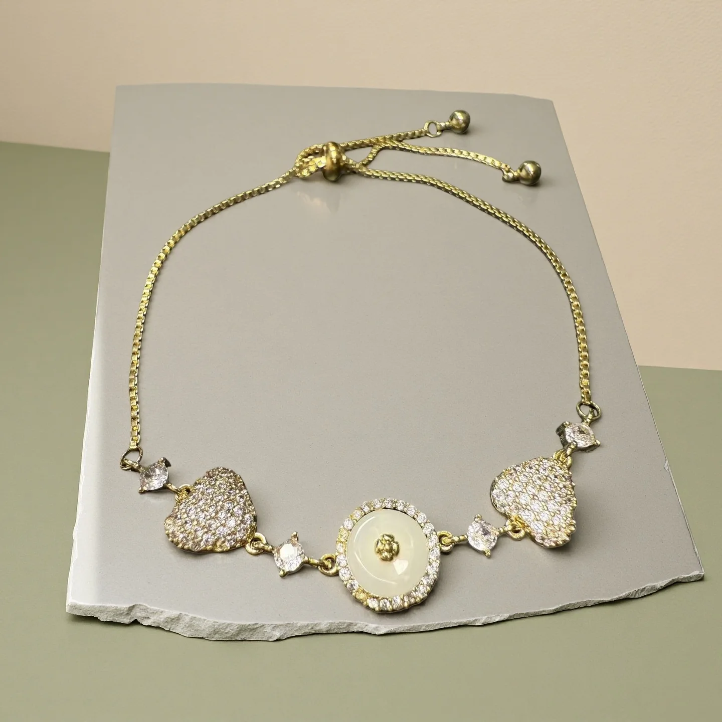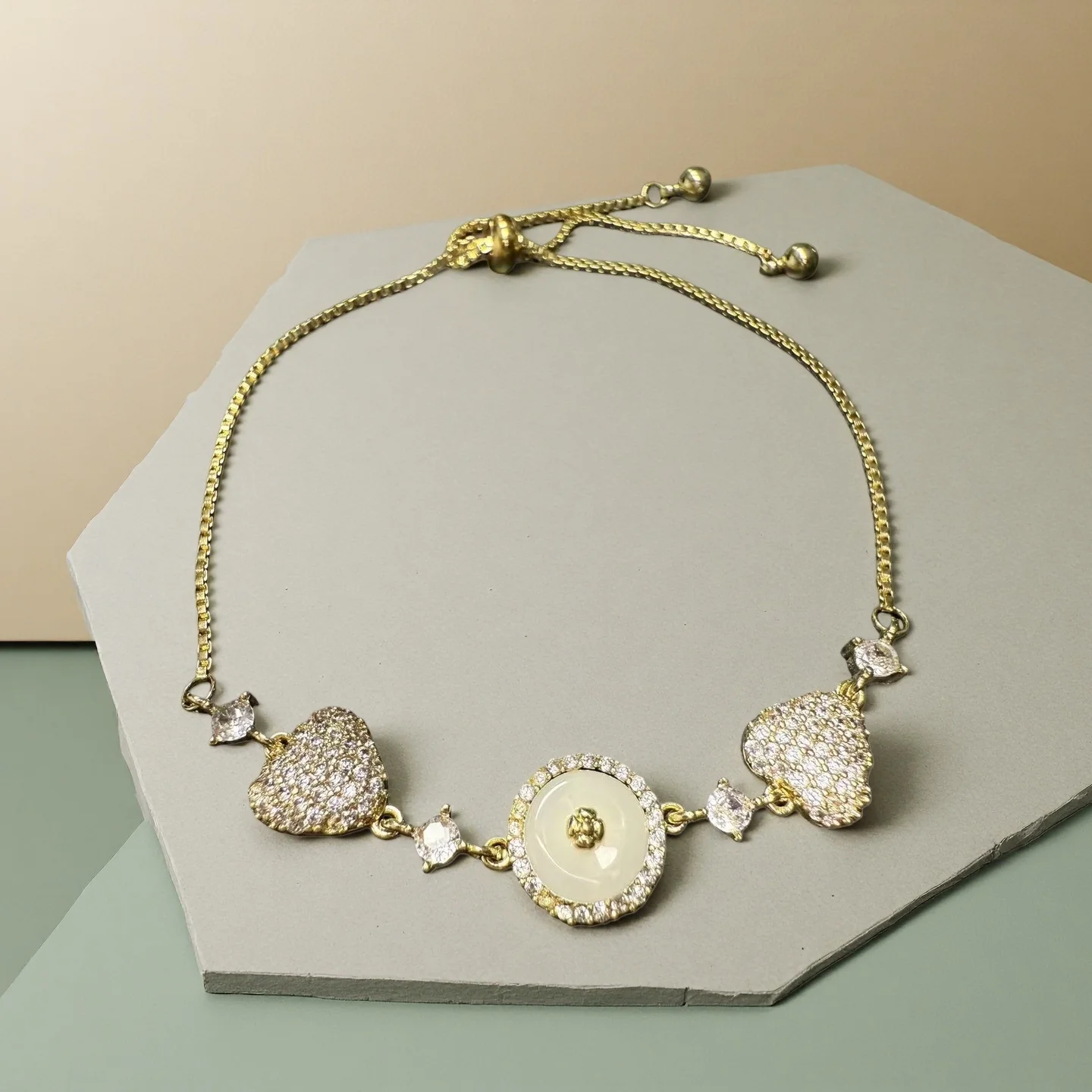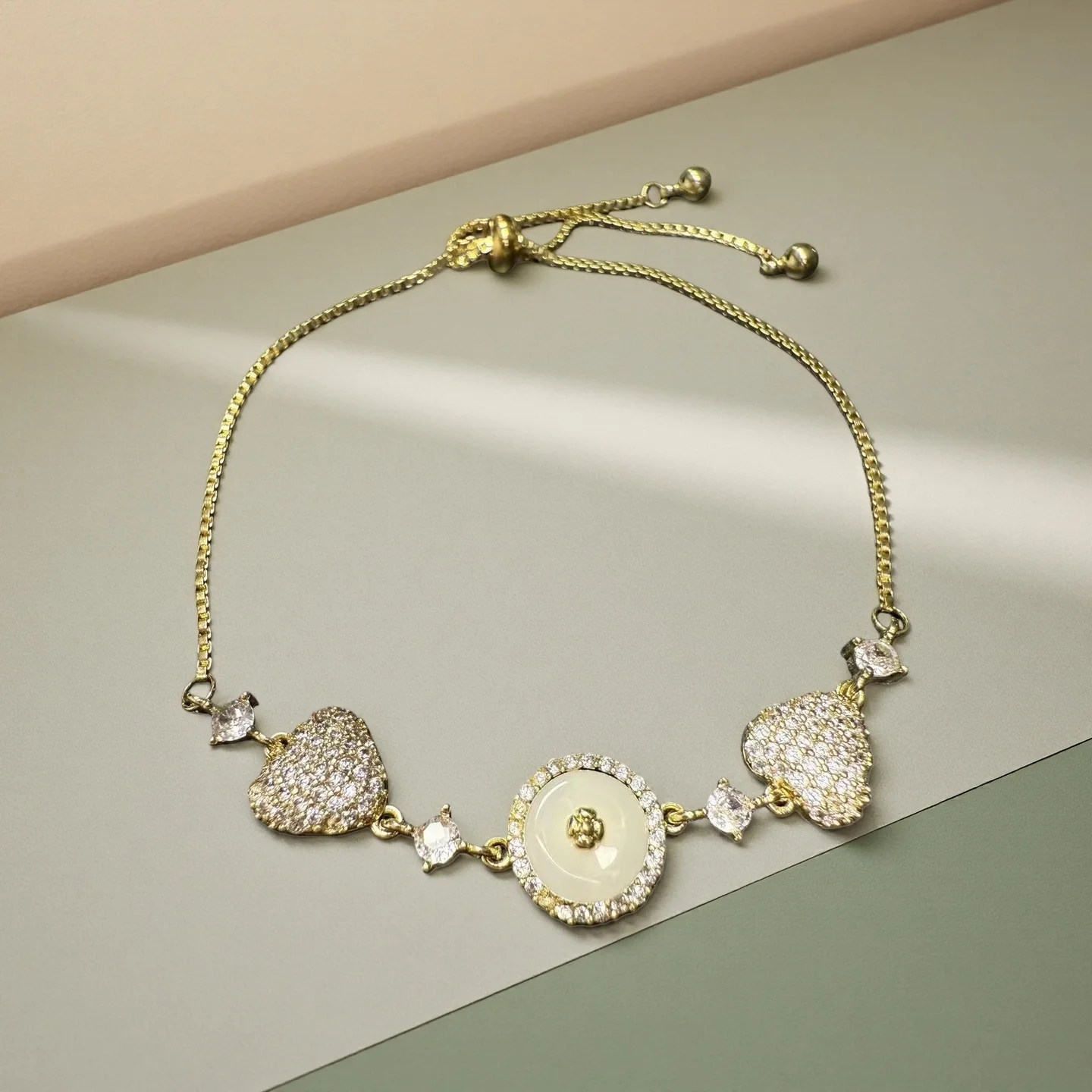 Y2K Heart Charm Bracelet for Women Adjustable Gold Chain with Round Center Stone Dainty Romantic Jewelry Gift for Everyday Wear
