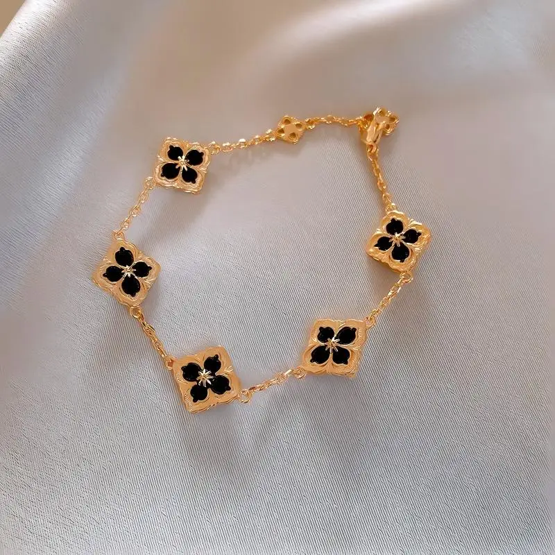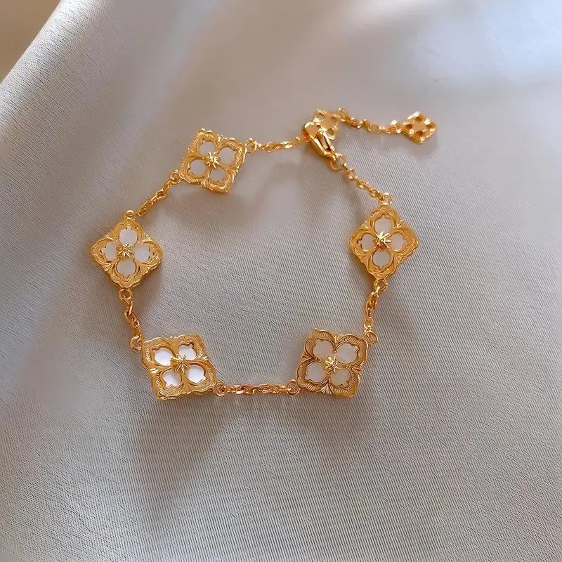 Women's Fashion Chain & Link Bracelets Gold Plated Copper 4 Four Leaf Clover Bracelet Fine Friendship Jewelry for Friend Gift