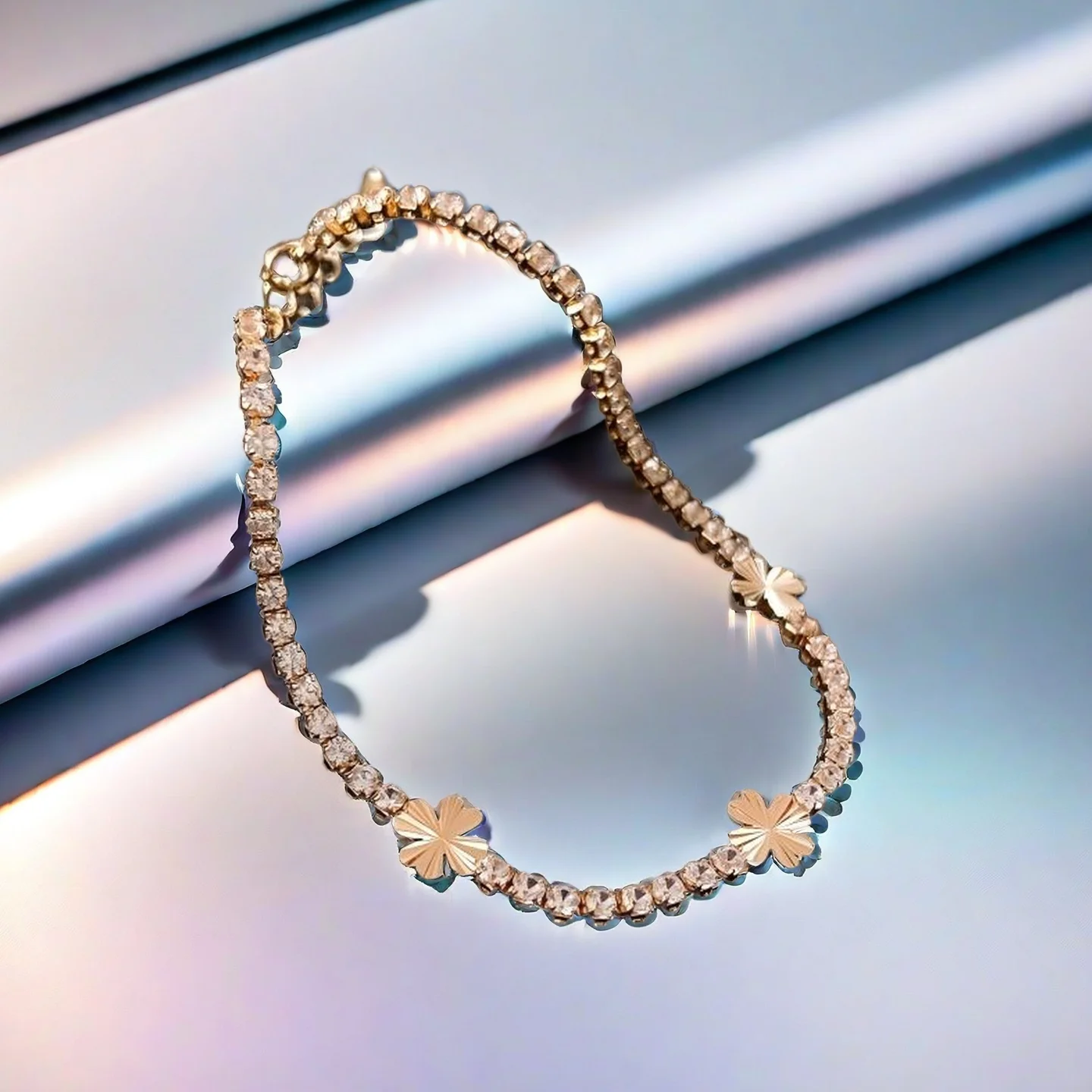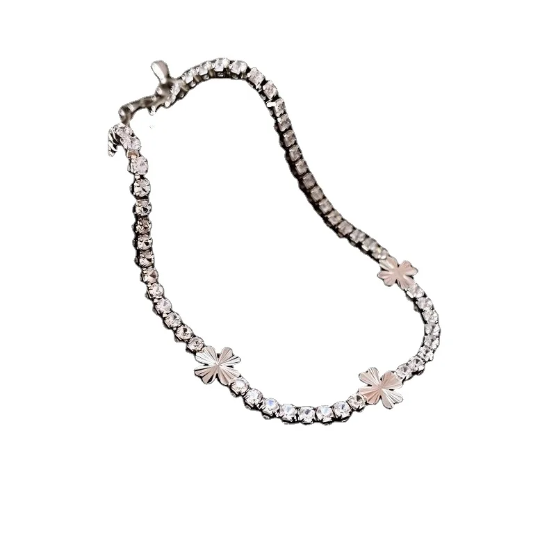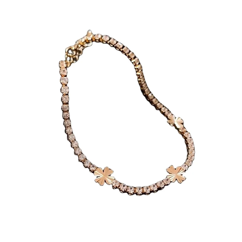 Diamond Zircon 4 Leaf Flower Fashion Chain & Link Bracelets Silver Gold Plated Copper Jewelry Fancy Jewellery for Ladies Women
