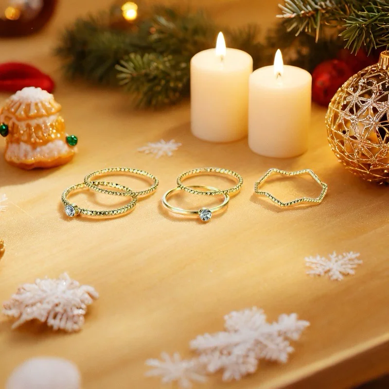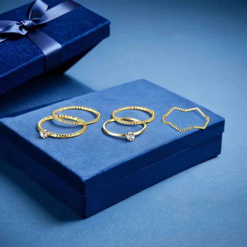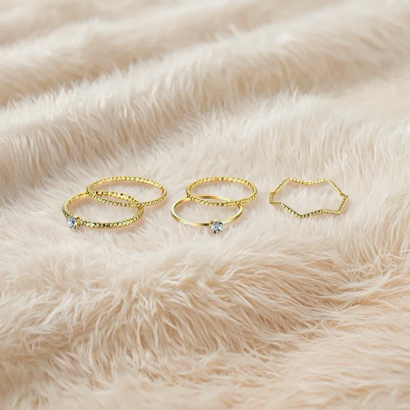 Muxcor Gold Plated Alloy Five-piece Set Jewelry Rings for Girls Fine Jewelry Fancy Jewellery for Ladies Tarnish Free Rings
