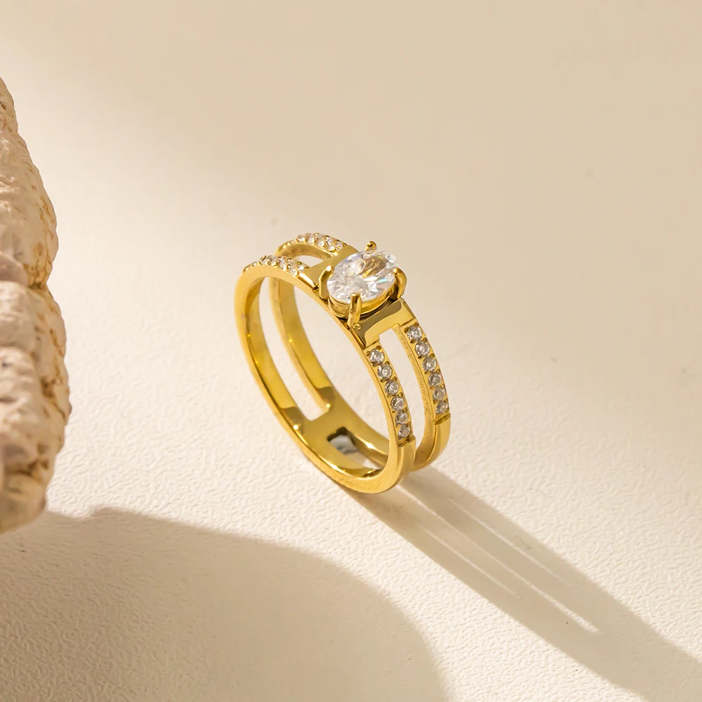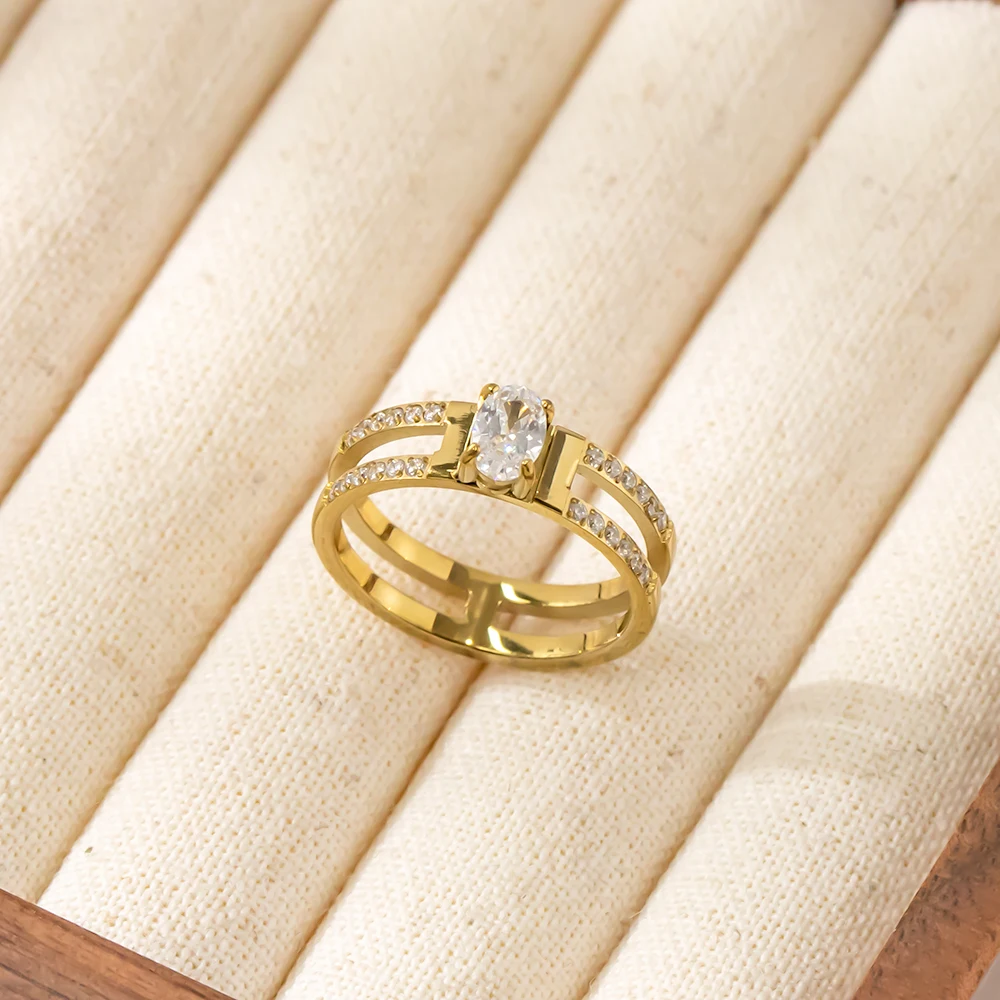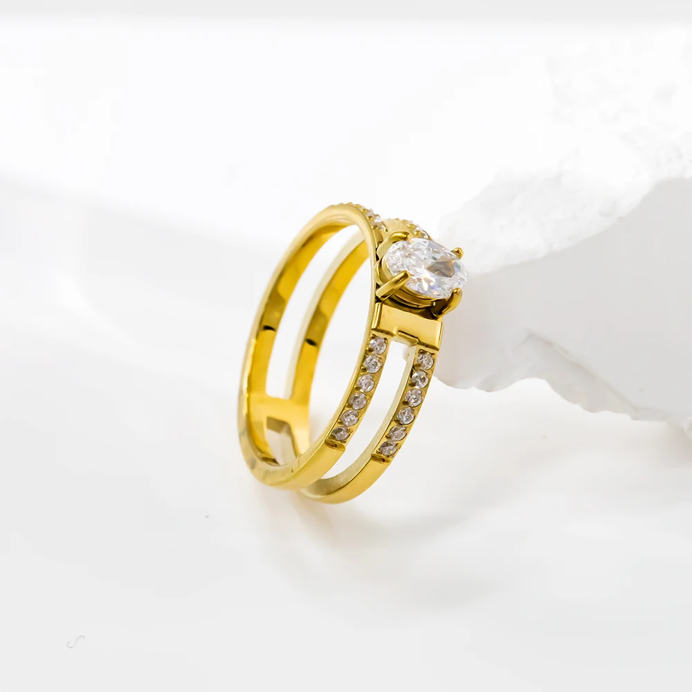 Wholesale Women Gold Plated Stainless Steel Fine Jewelry Accessories Custom Sparkling Gold 18K Plating High Rings for Girls