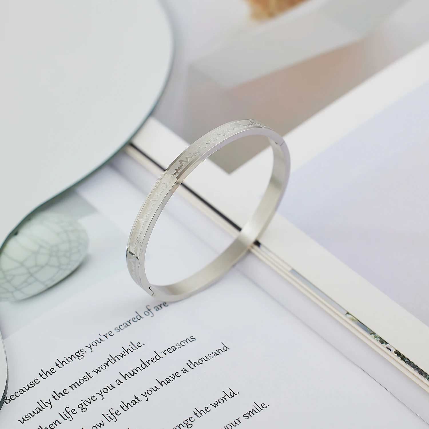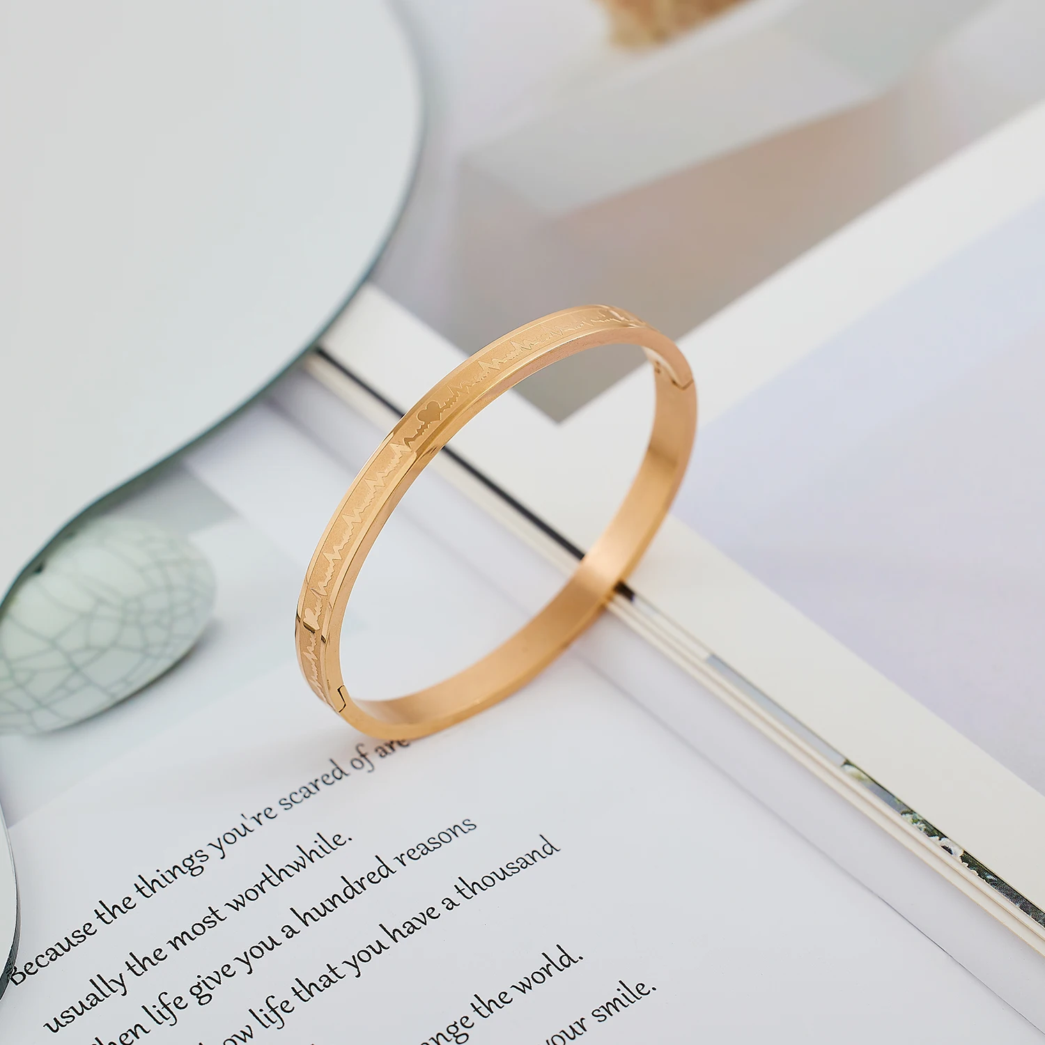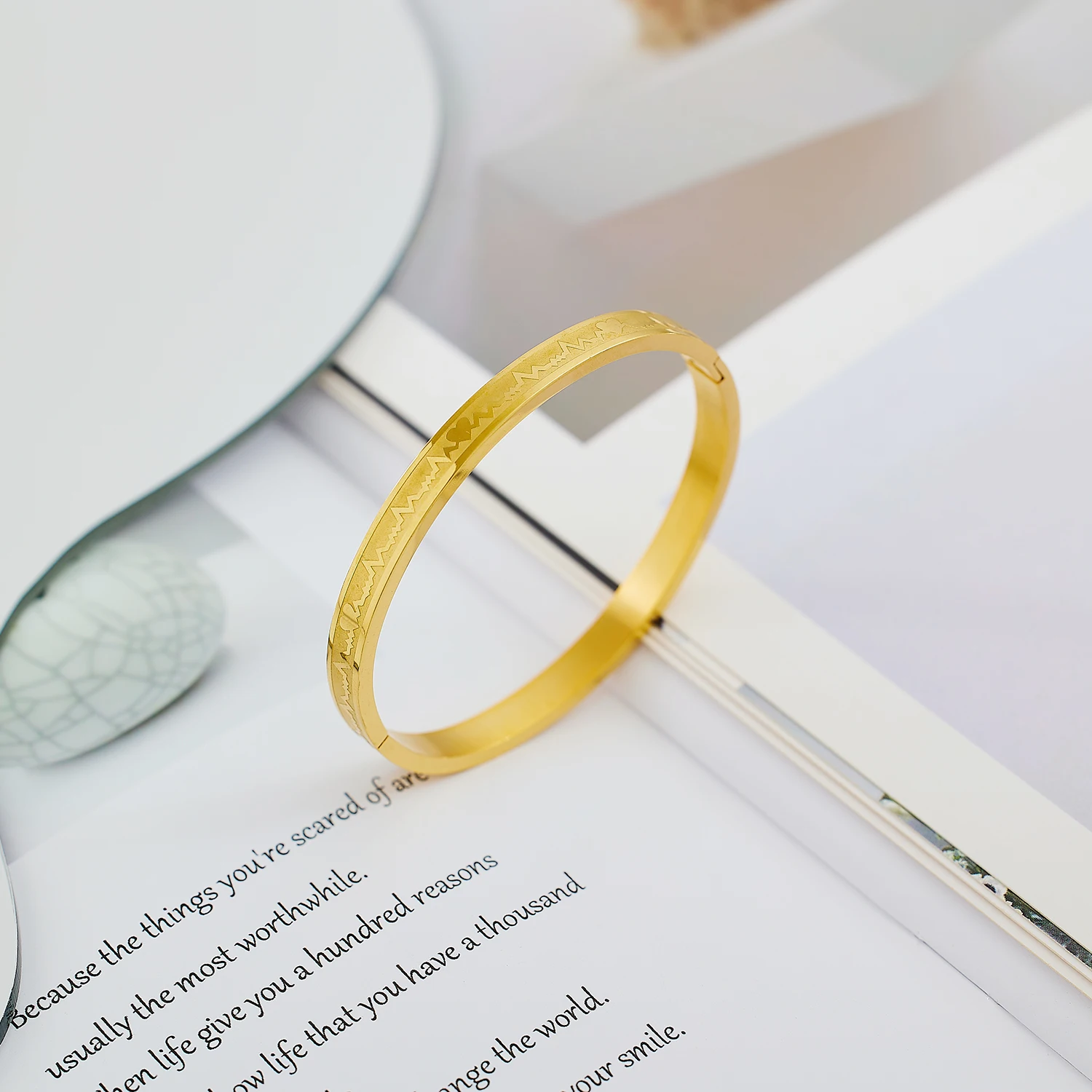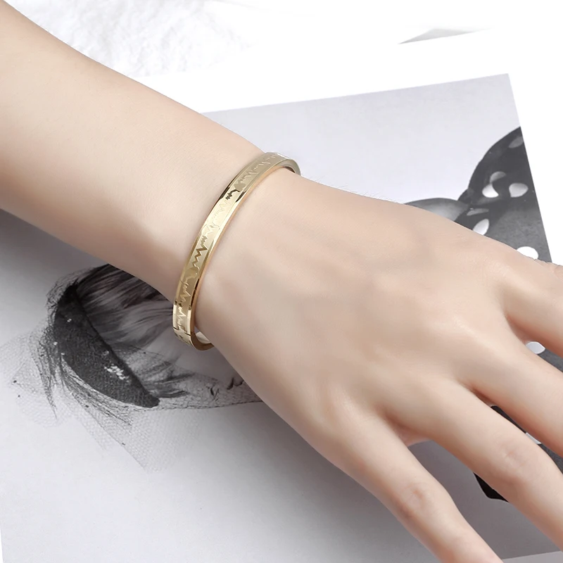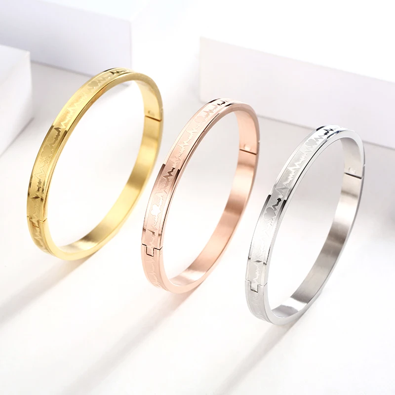 Hiphop Classic Luxury Fashion Bangles Women Men Custom Wholesale Electrocardiogram Pattern Gold Plated Stainless Steel Jewelry