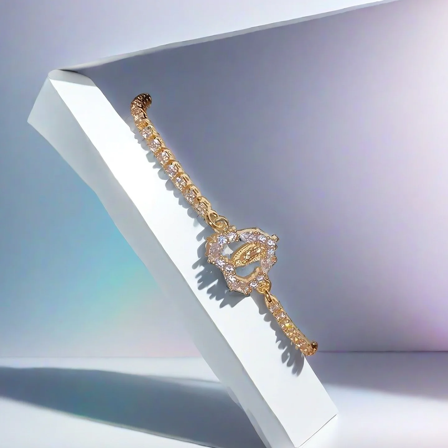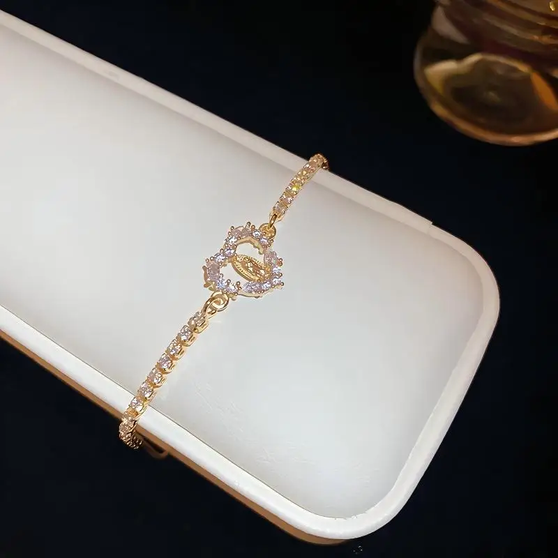 Fashion Chain & Link Bracelets Gold Plated Copper Full Diamond Heart Zircon Bracelet Jewelry Fancy Jewellery for Ladies Women