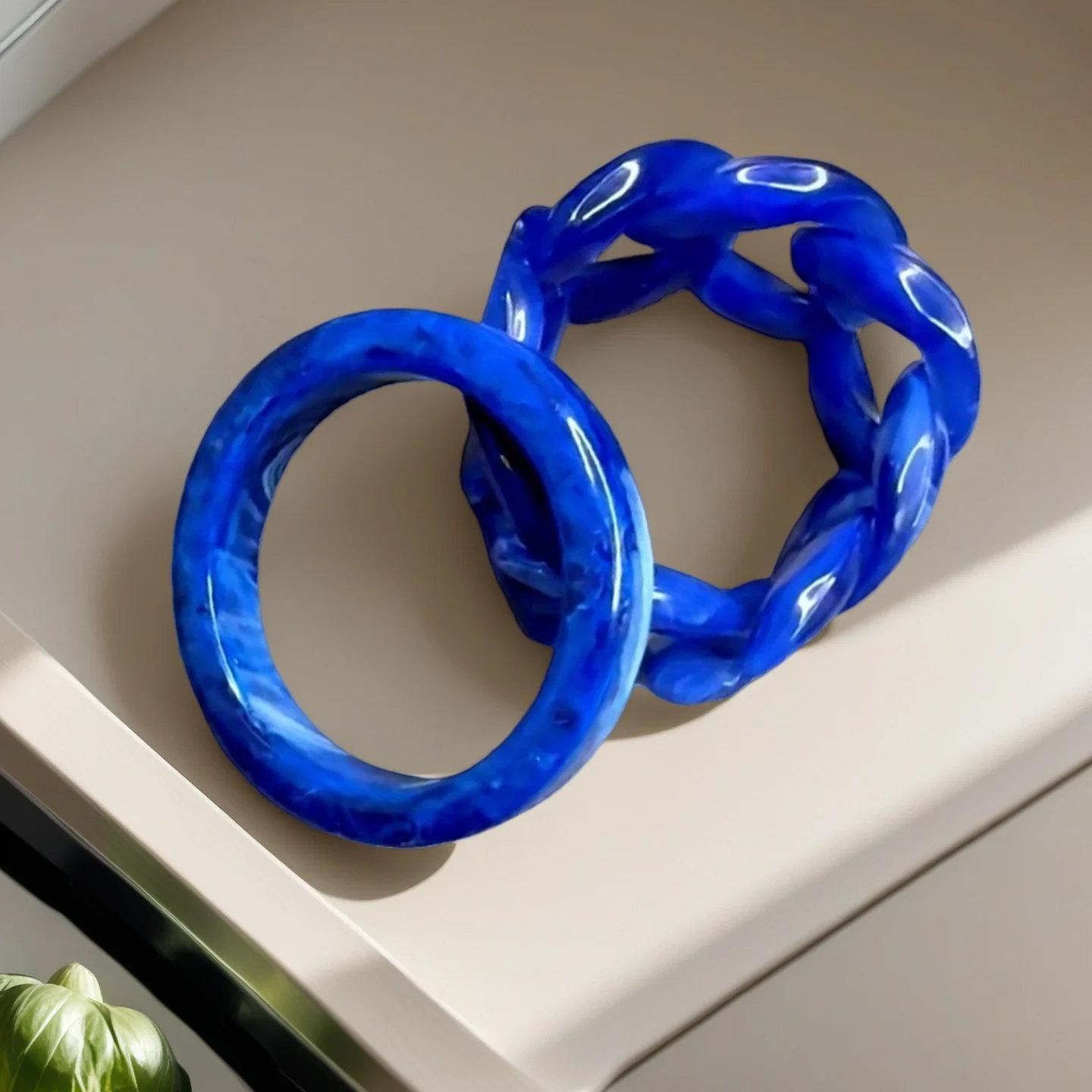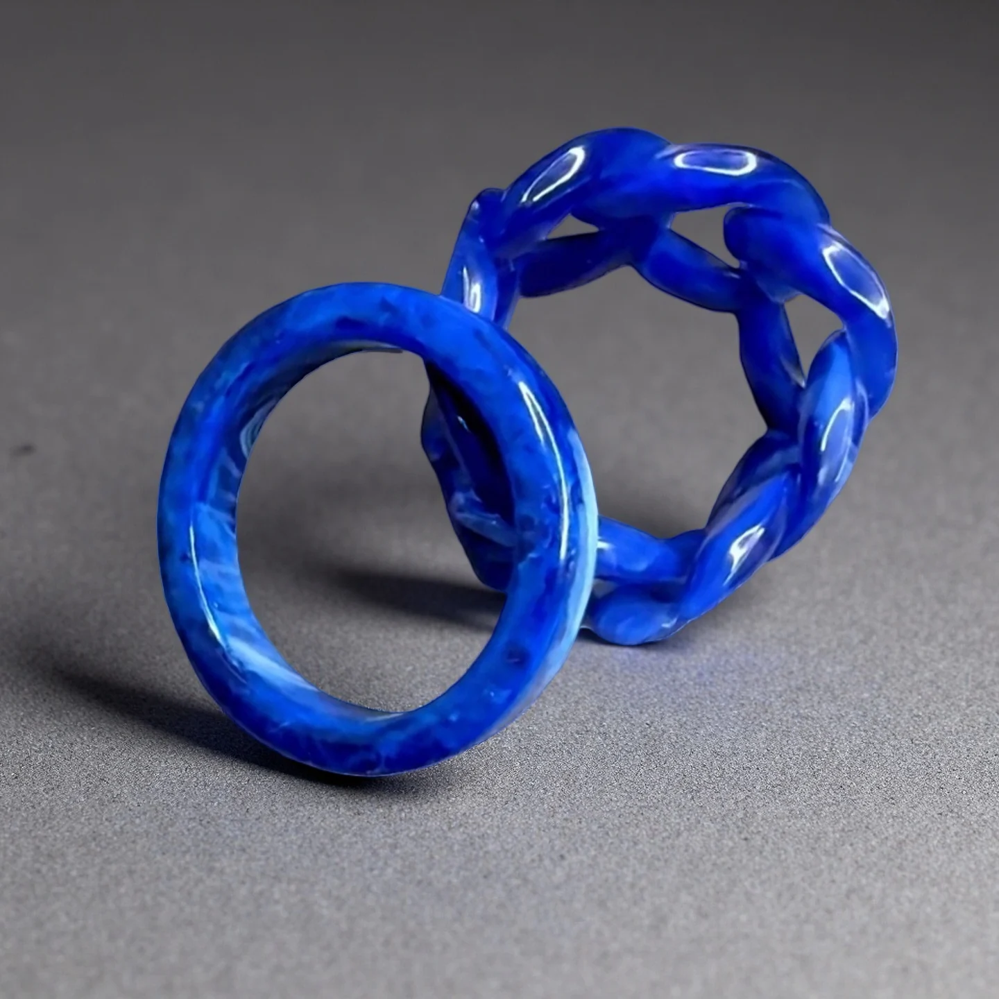 Muxcor Two-piece Set Vintage Ring Made of Resin Retro Revival Niche Minimalist Style Blue Color Personalized Rings