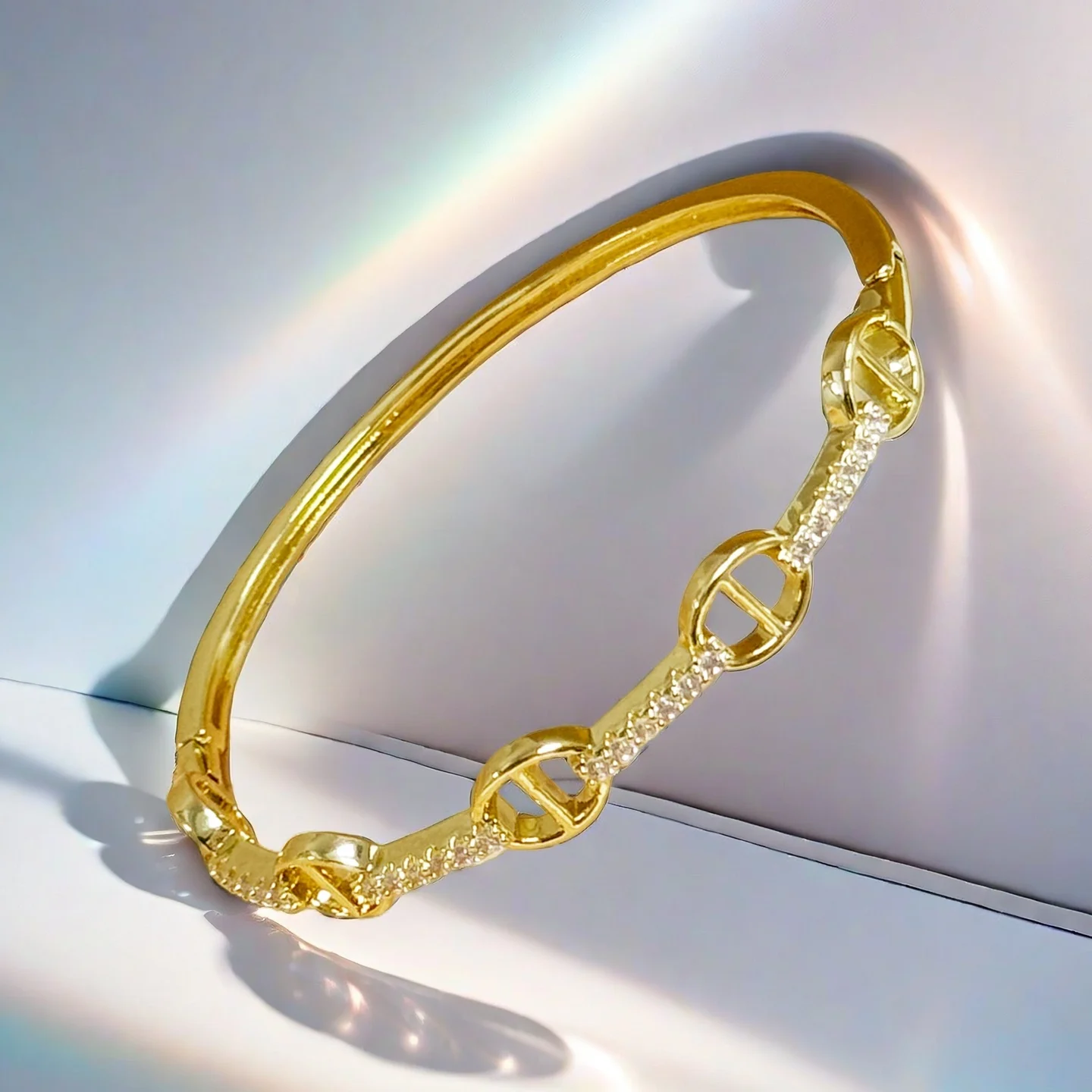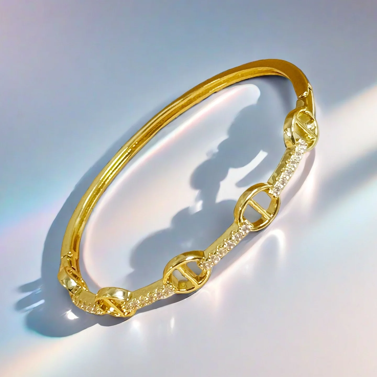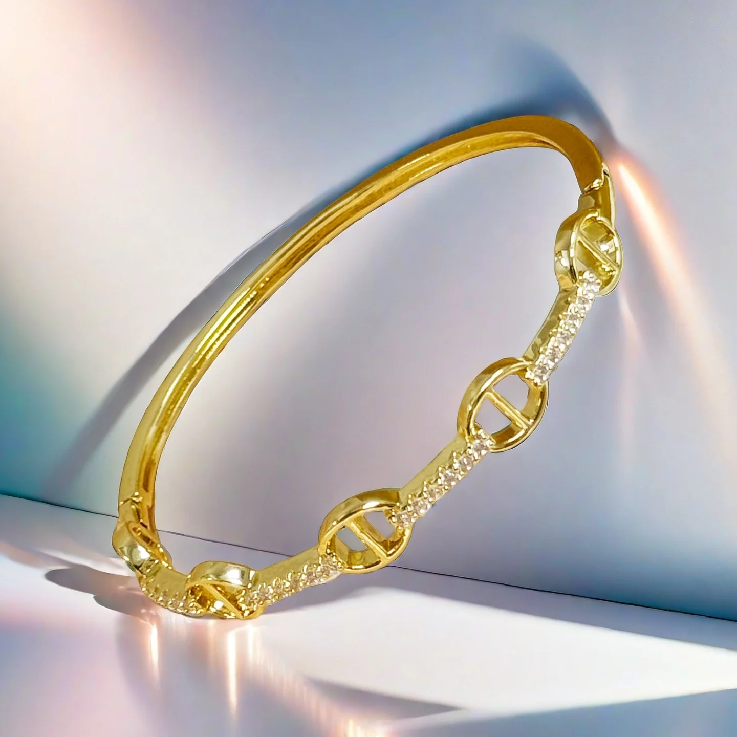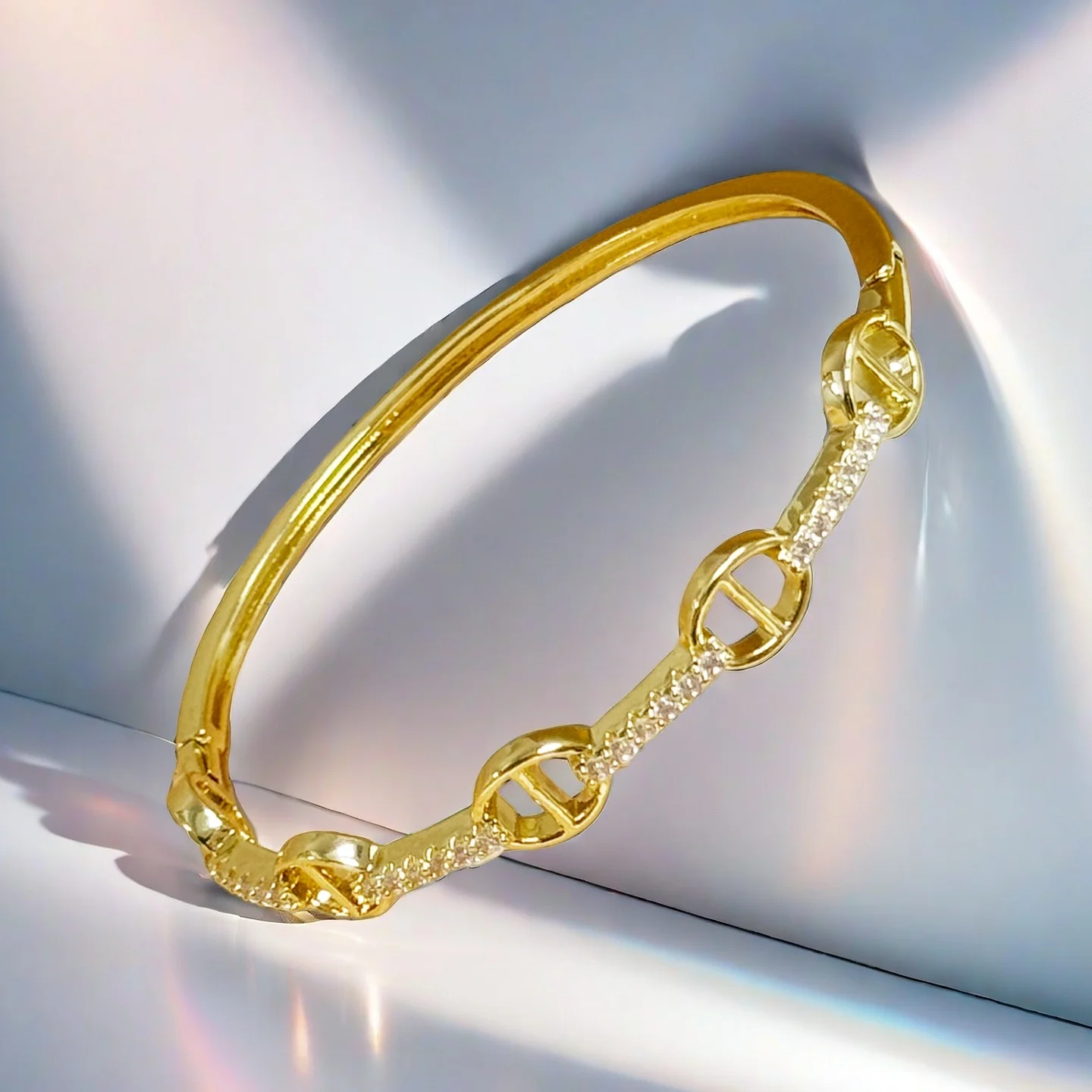 Wholesale Irregular Zircon Cubic Bracelets Gold Plated Copper Alloy Jewelry Bangles Women Hot Sell Christian Style Bangle