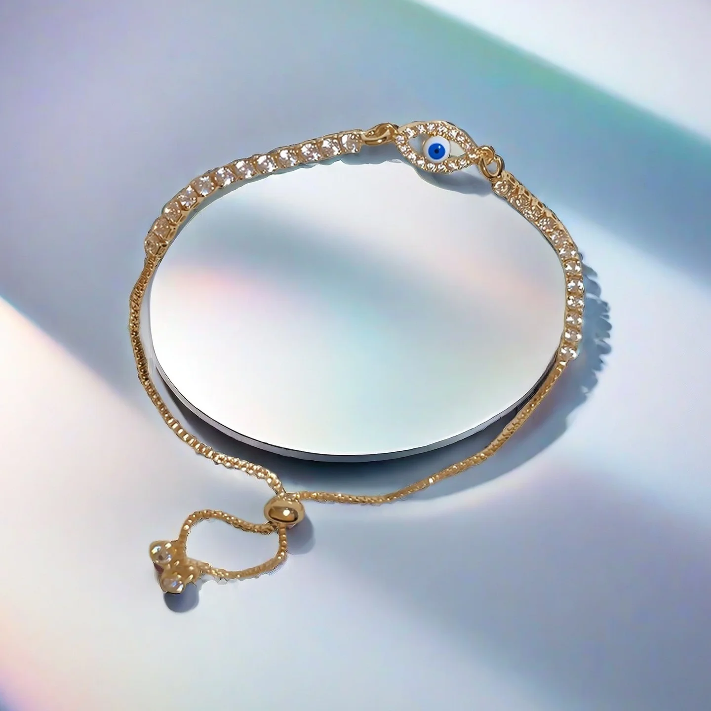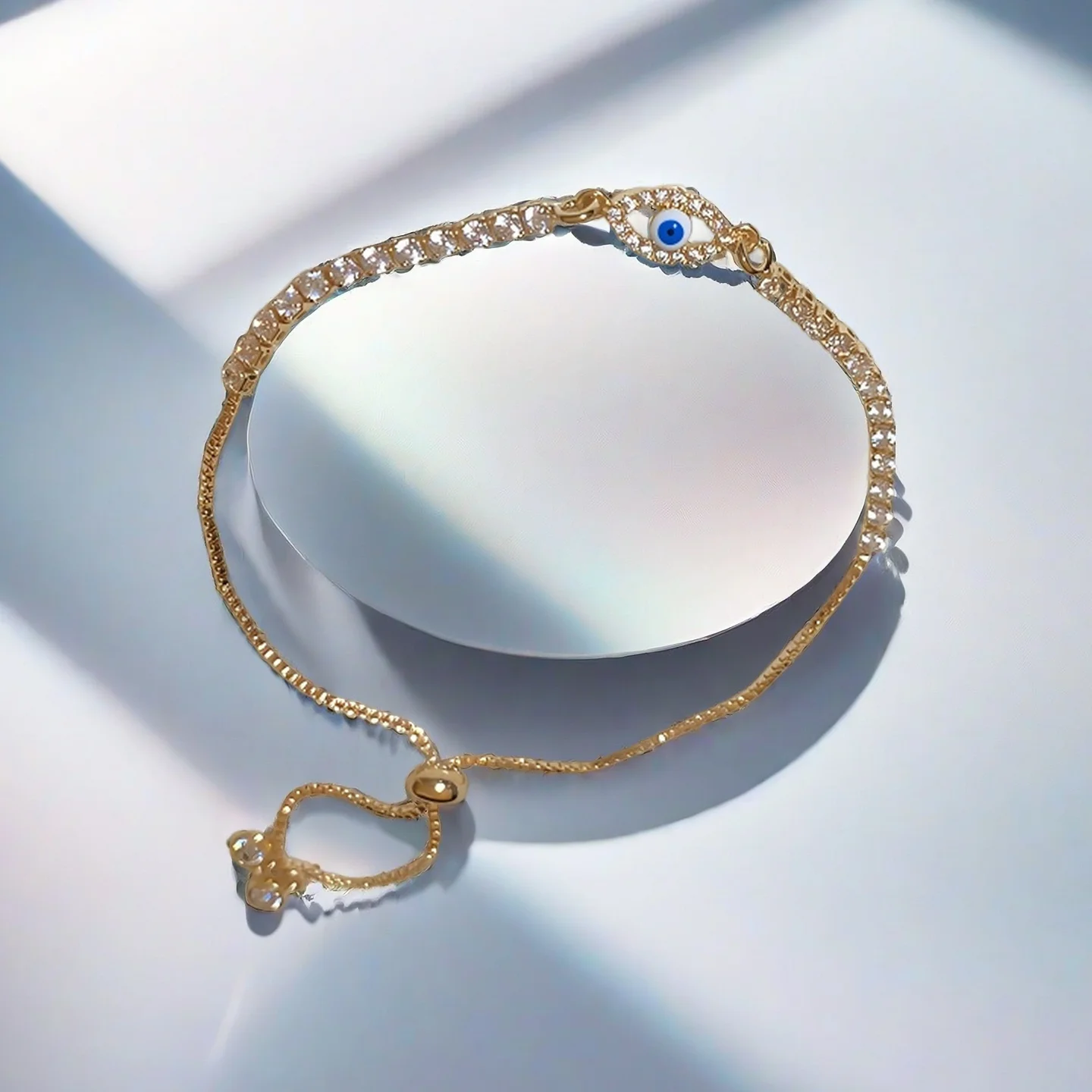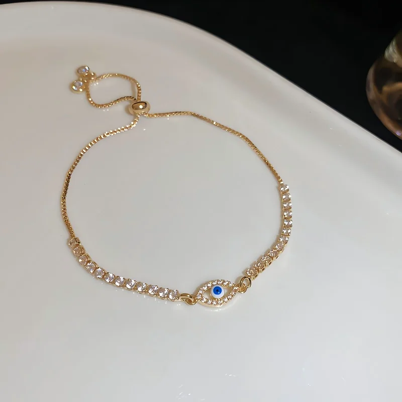 Women Tennis Zircon Blue Evil Eye Bracelet Fashion Chain & Link Bracelets Gold Plated Copper Jewelry Fancy Jewellery for Ladies