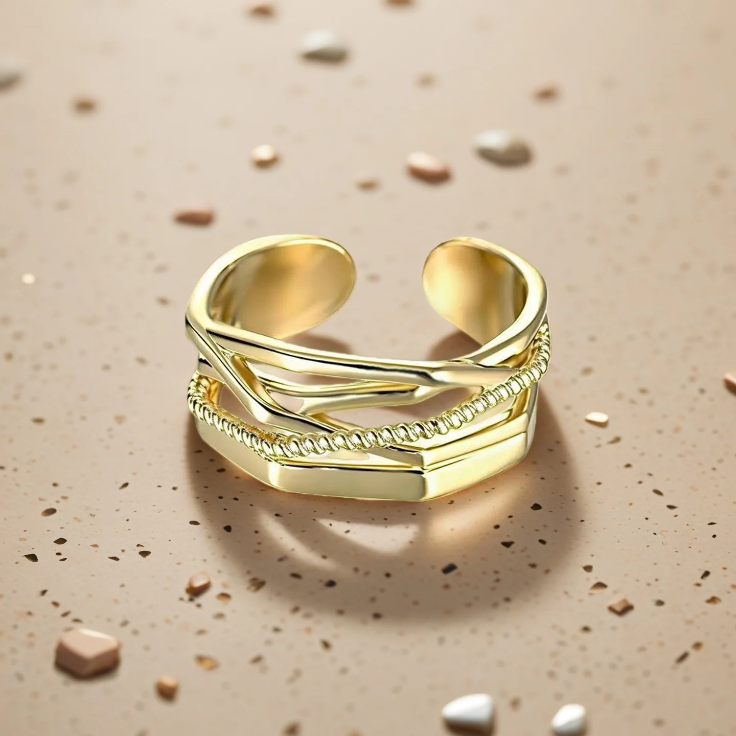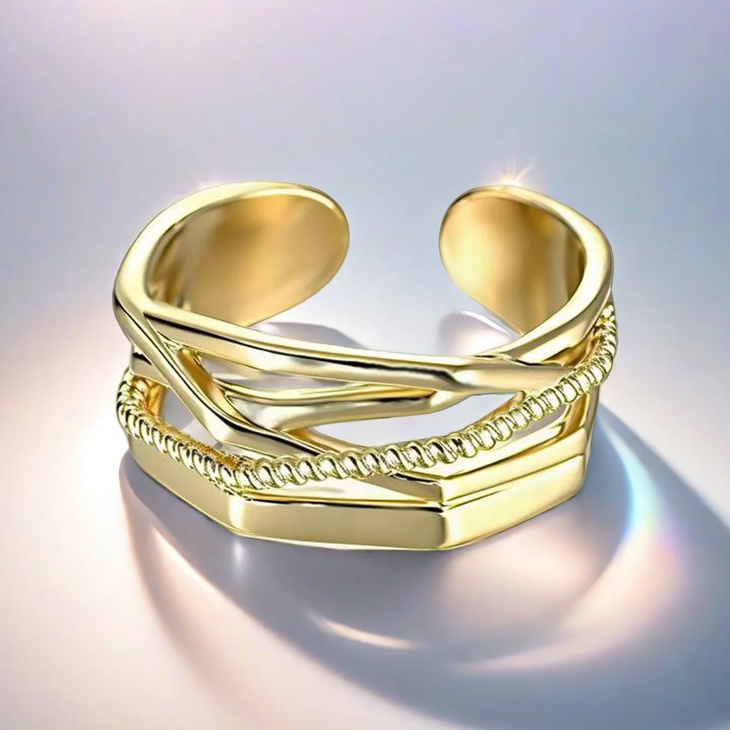 Muxcor Gold Plated Alloy Geometric Irregular Open Ring Niche Affordable Luxury European and American Style Custom Ring