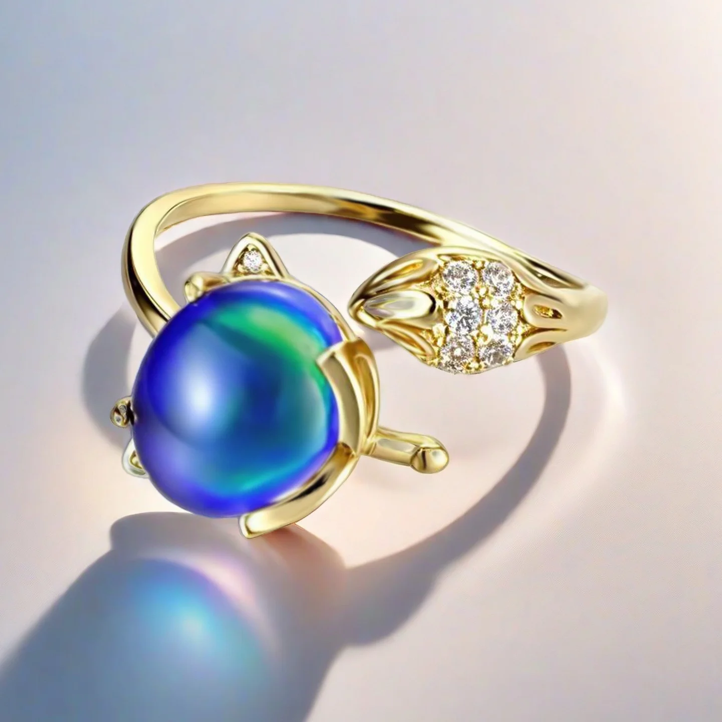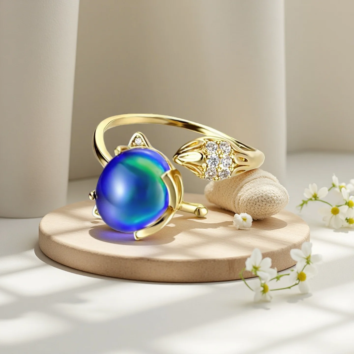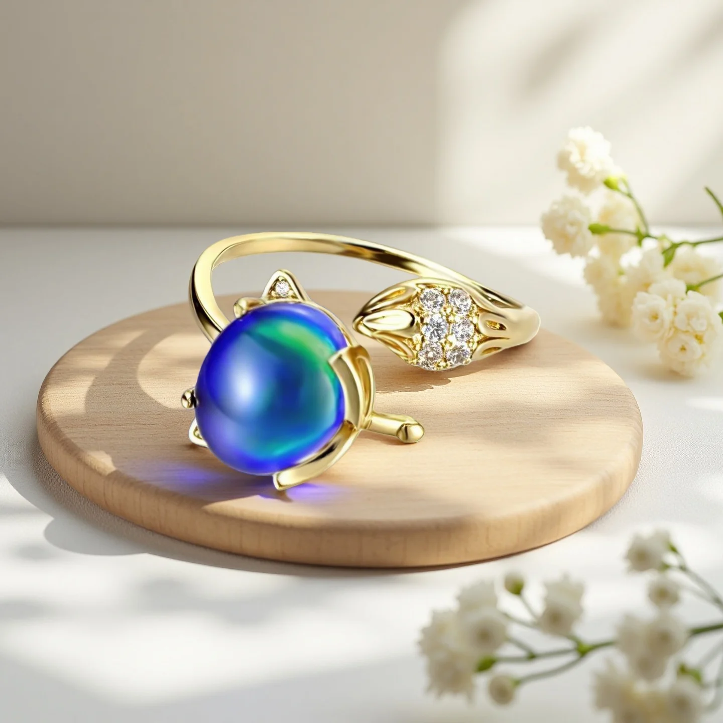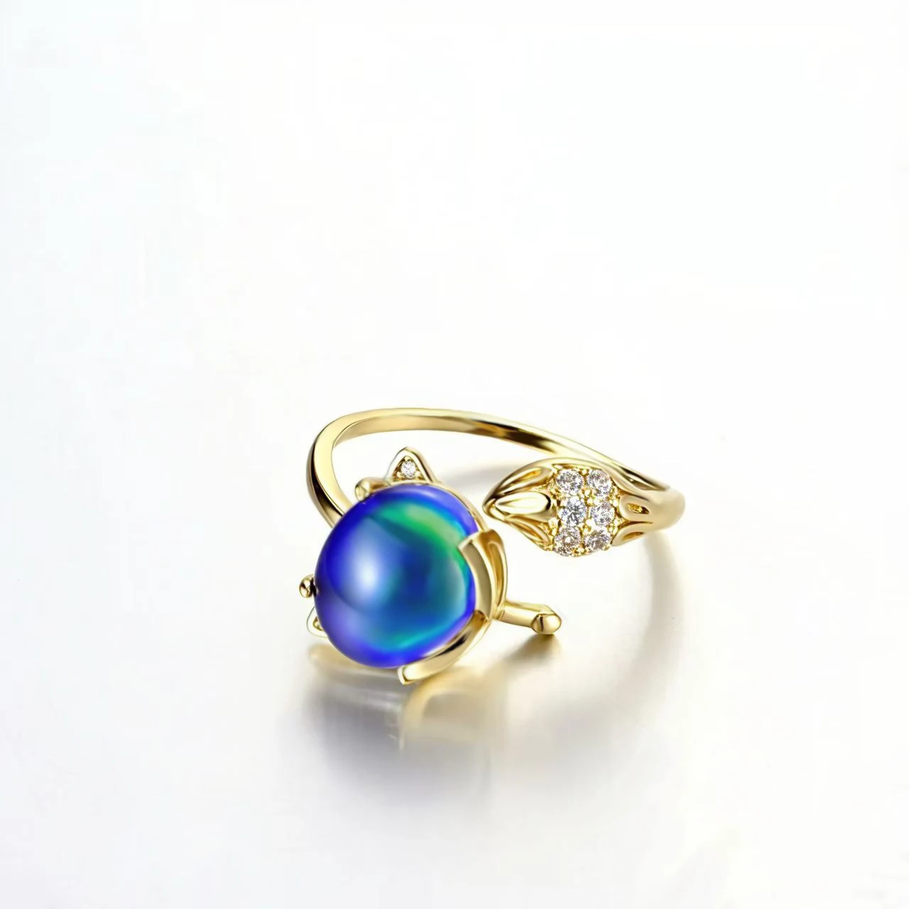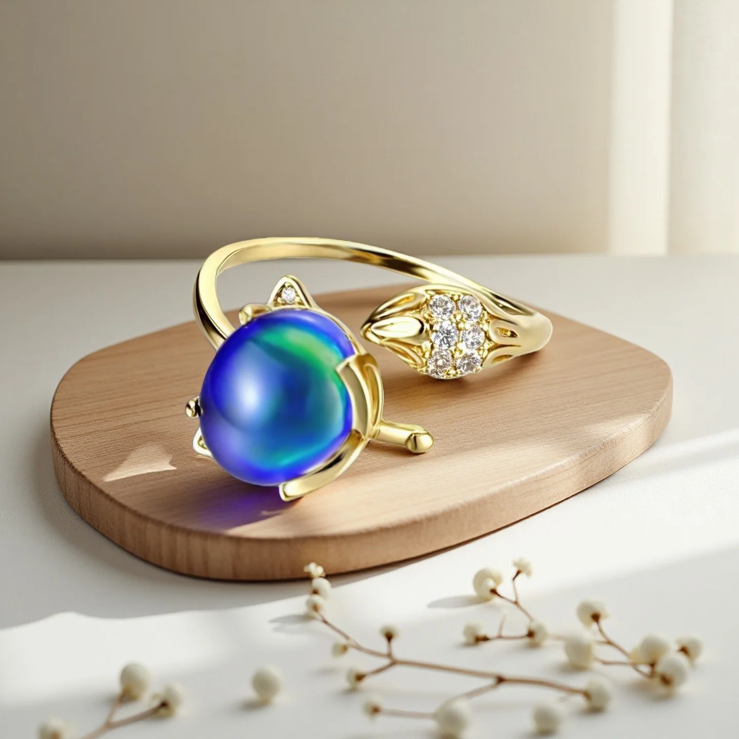 Muxcor Gold Plated Alloy Geometric Irregular Open Ring Niche Affordable Luxury Cat-shaped Gemstone Style