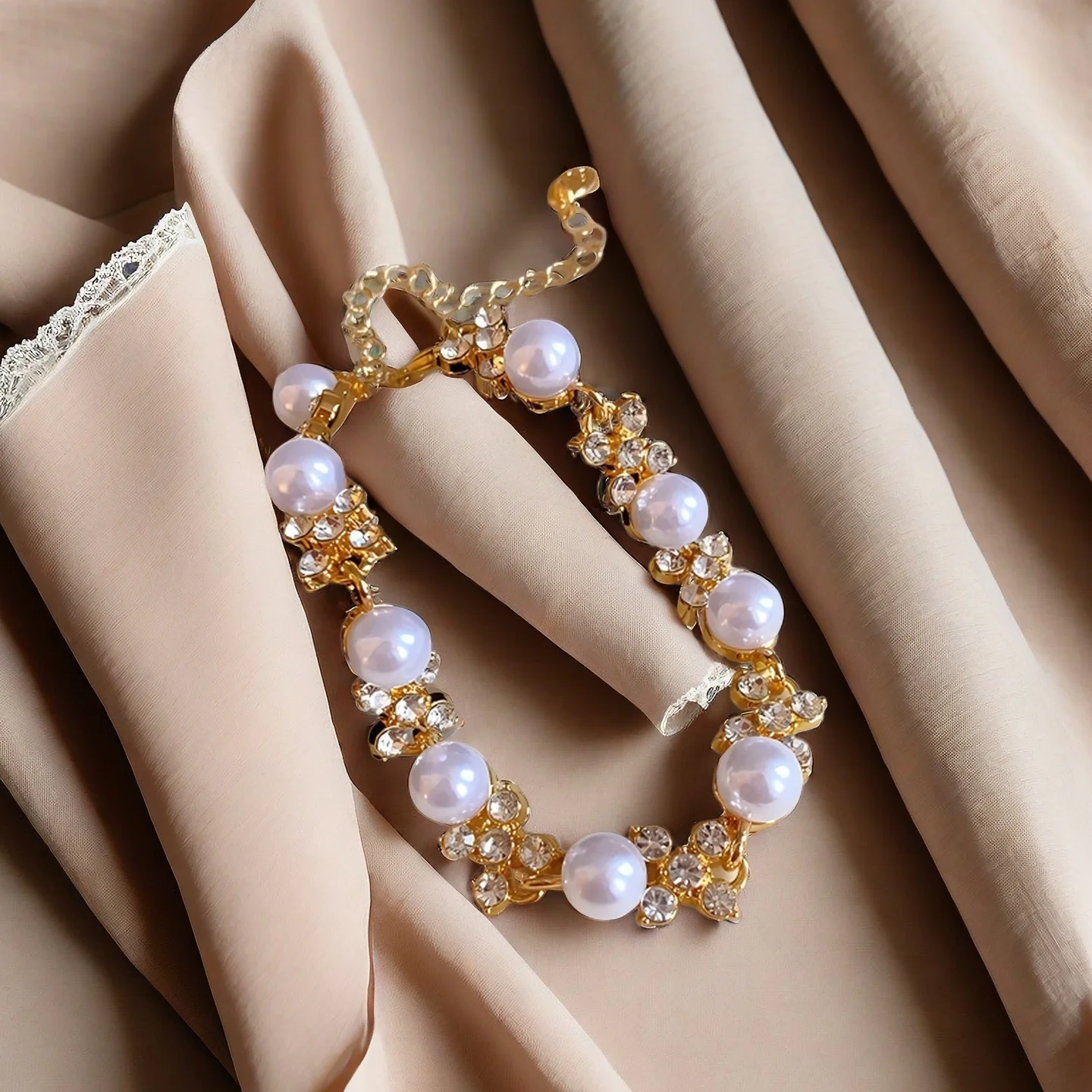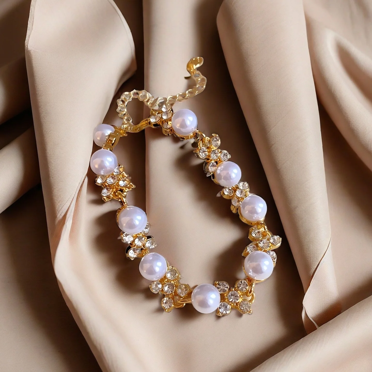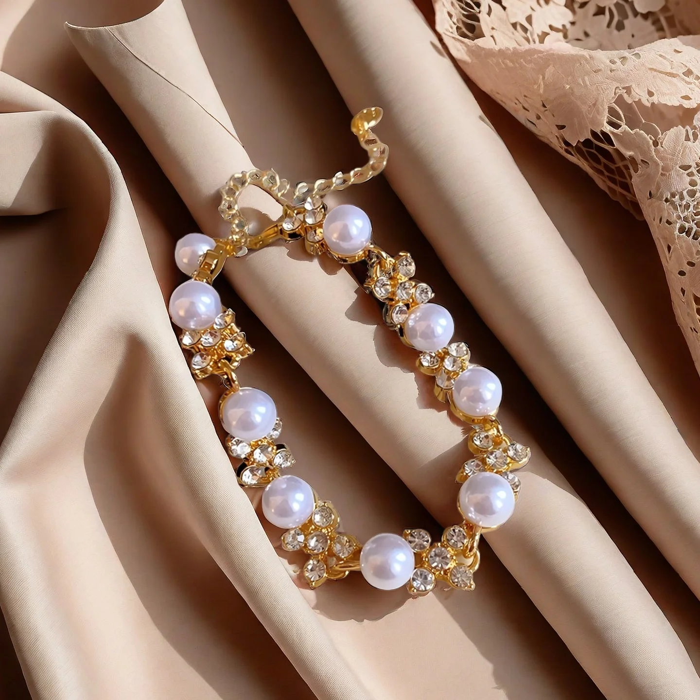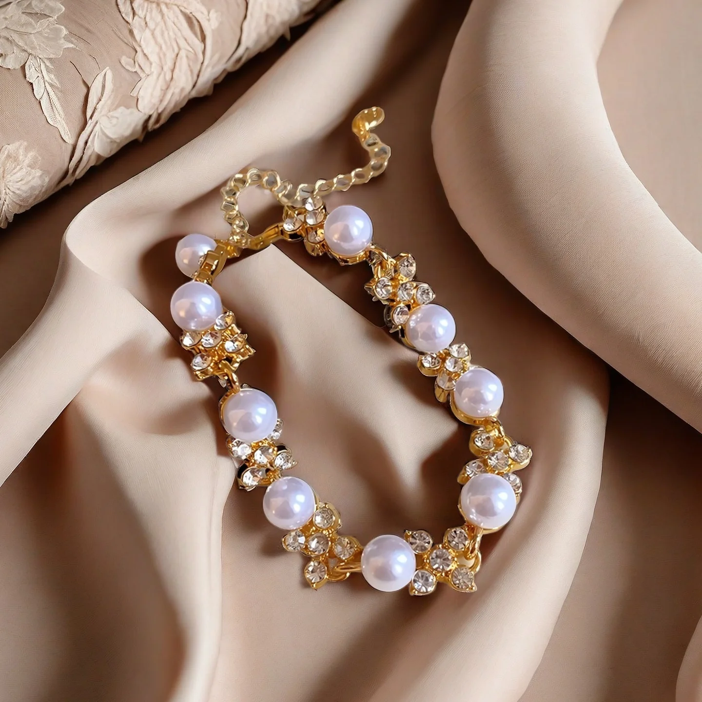 Custom Charm Fashion Chain & Link Bracelets Gold Plated Alloy Jewelry Artificial Pearl Flower Wedding Women Girls Jewelry
