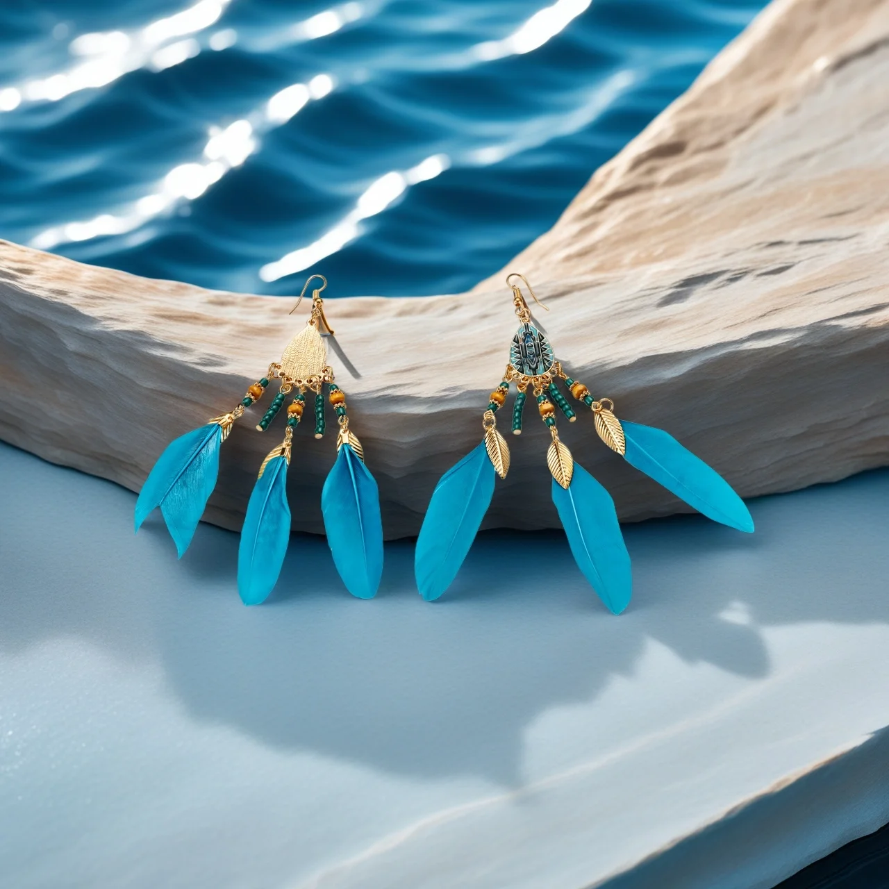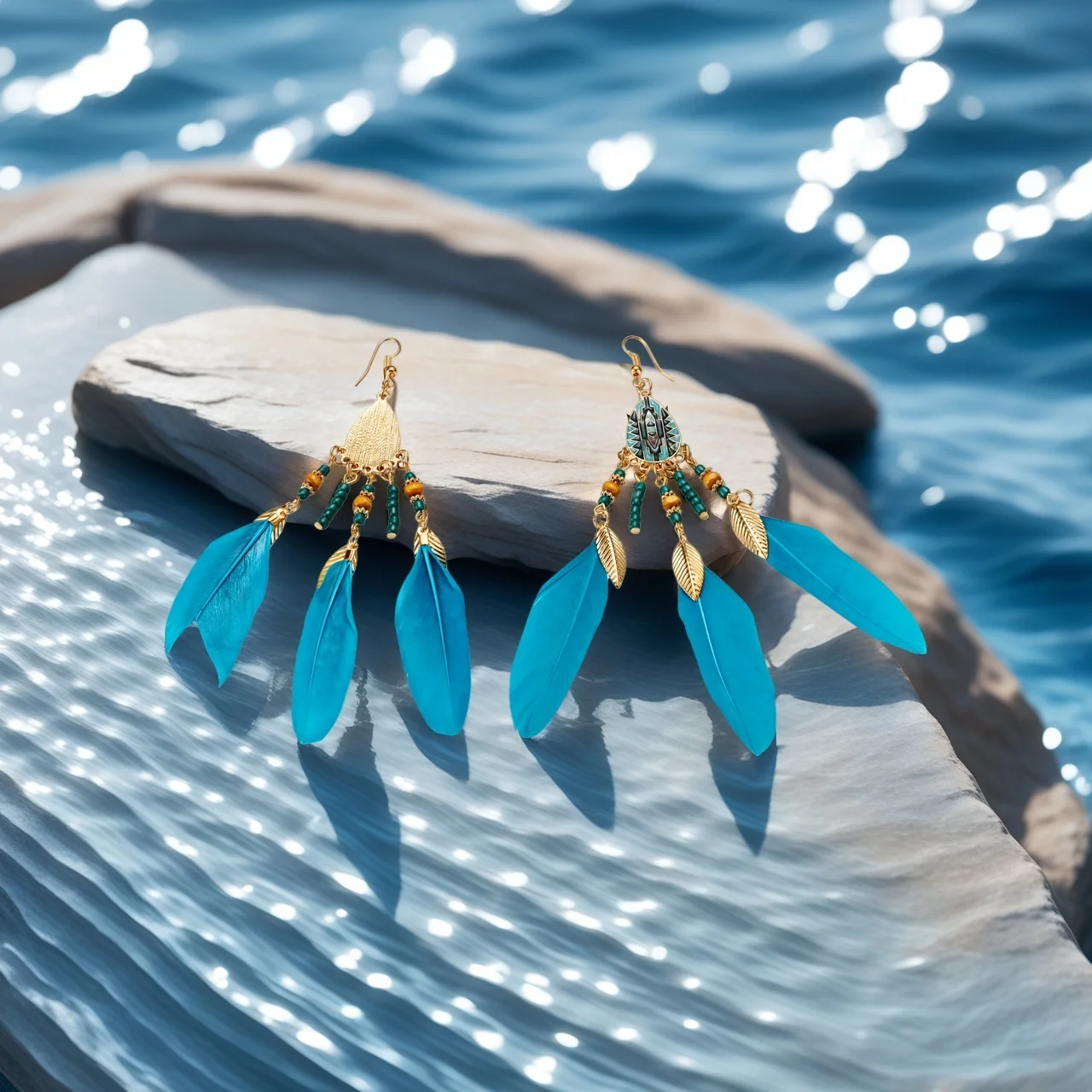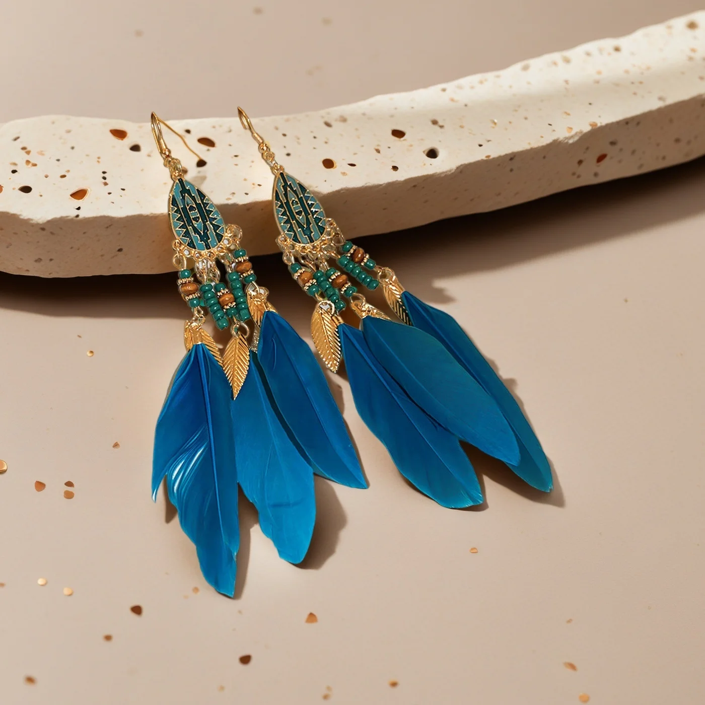 Bohemia Blue Feather Holiday Earrings Alloy Gold Plated Copper Designer Inspired Jewelry Sets Fancy Jewellery for Ladies