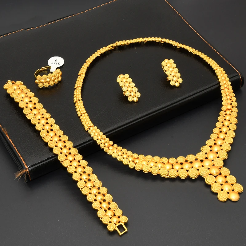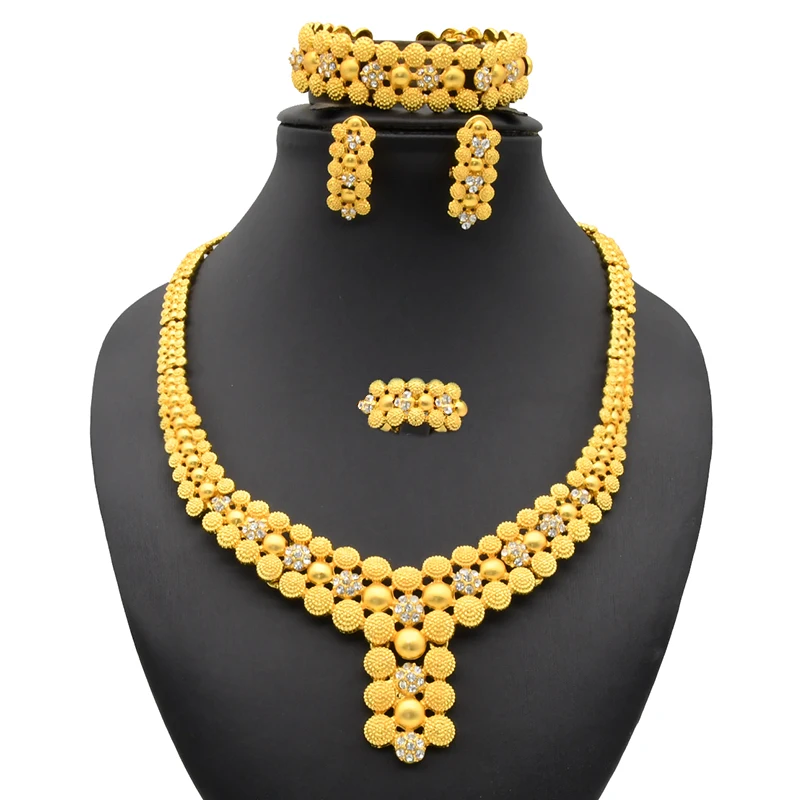 Luxury Glod Plated Copper Alloy Wedding Jewelry Designer Inspired Fashion Sets of Costume Bride Jewelry Set Wholesale