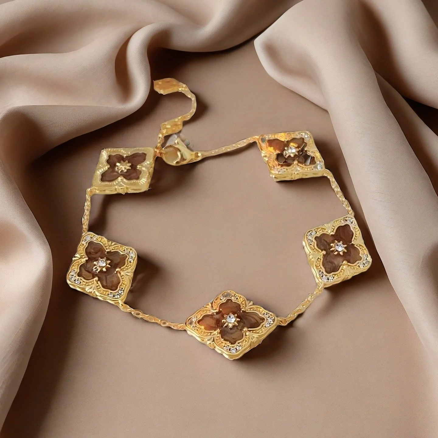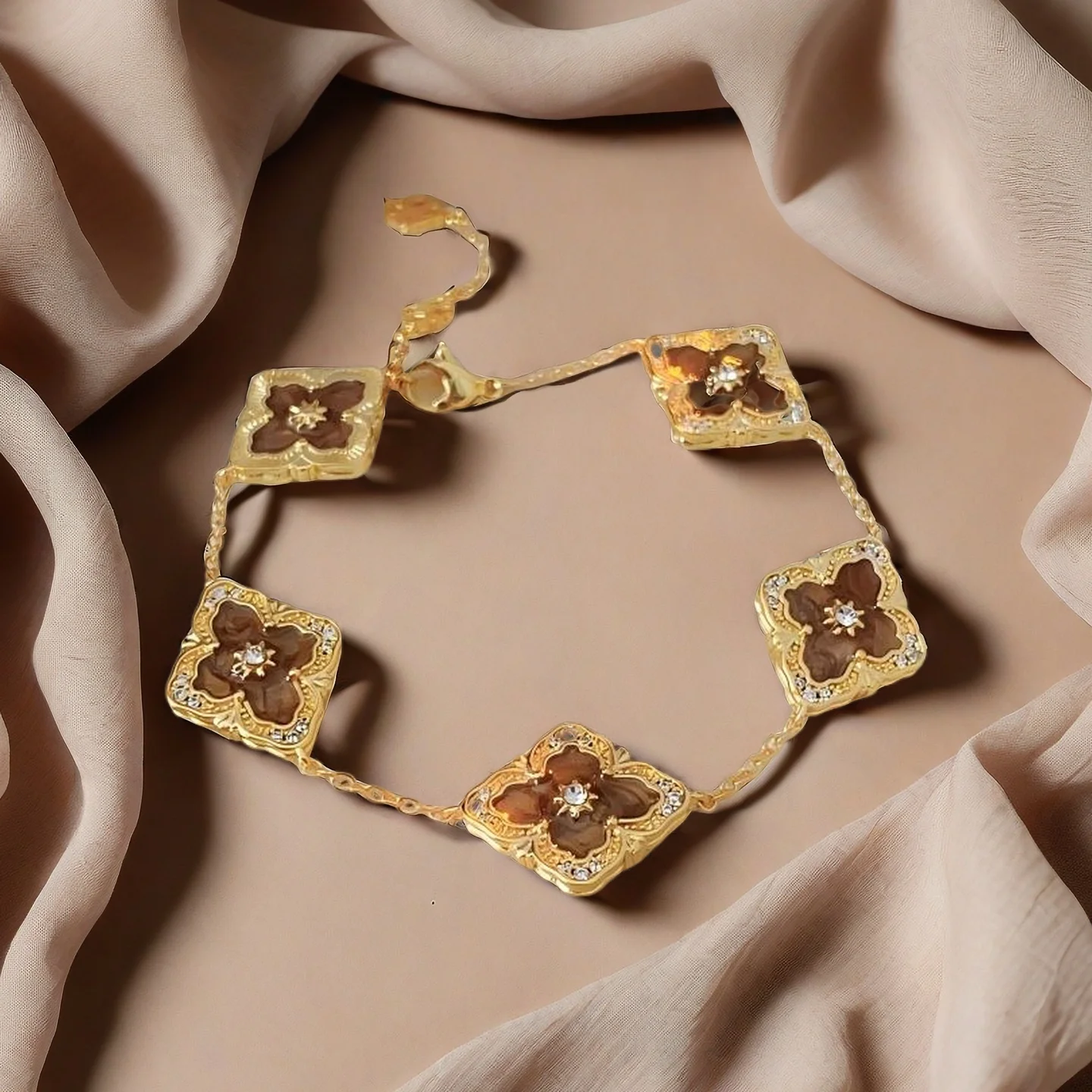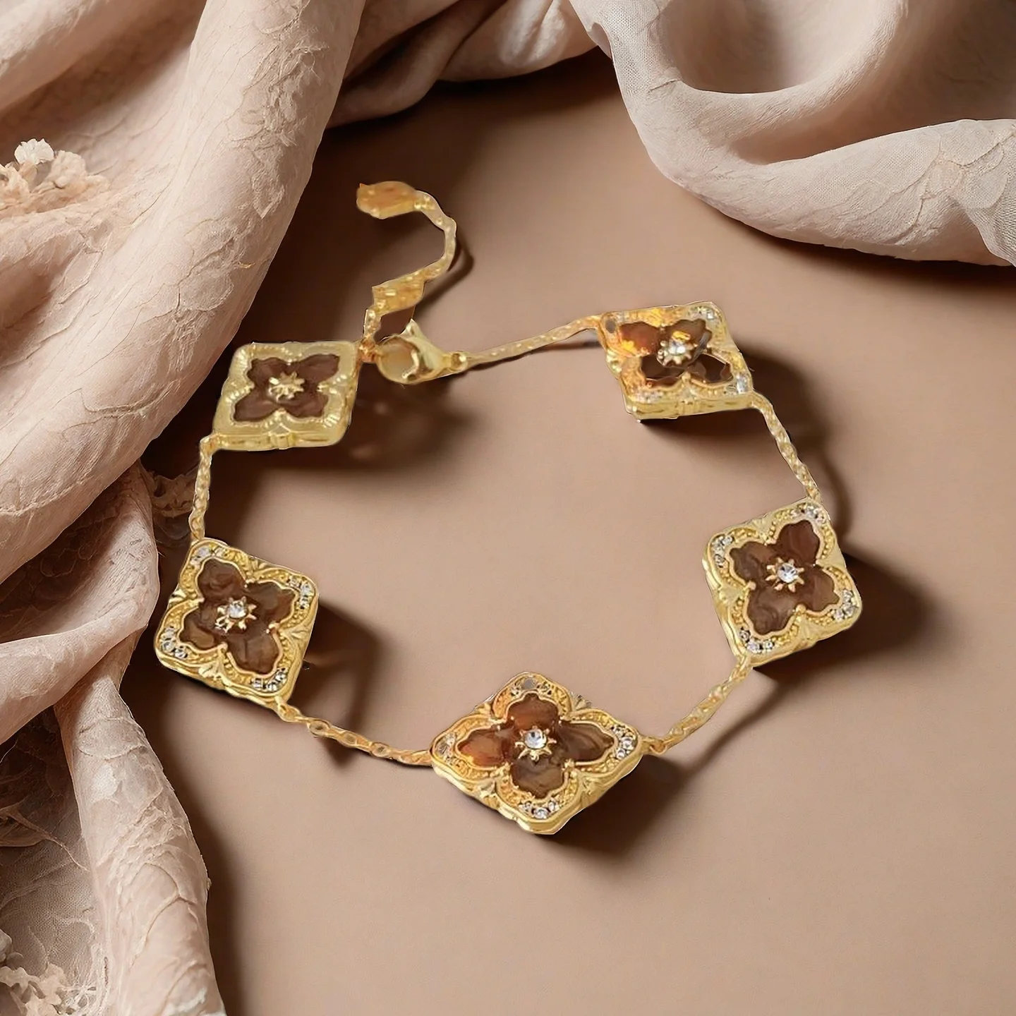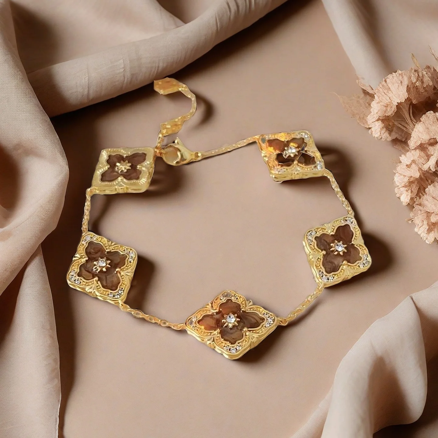 Diamond 4 Four Leaf Clover Bracelets Trendy Gold Plated Copper Zircon Bracelet Jewelry Chain Fancy Jewellery for Ladies Women