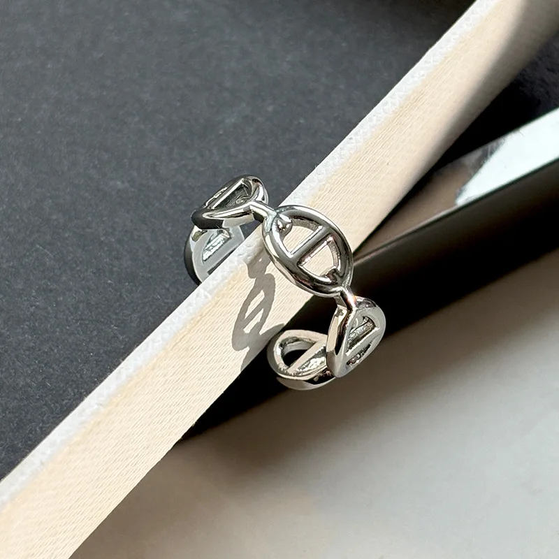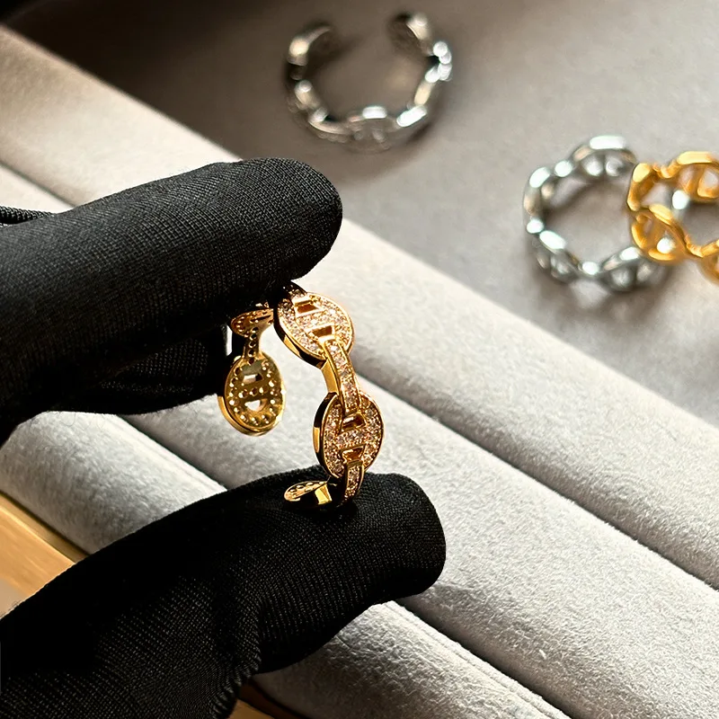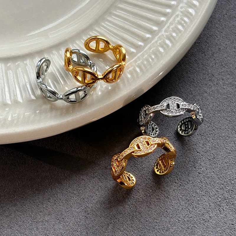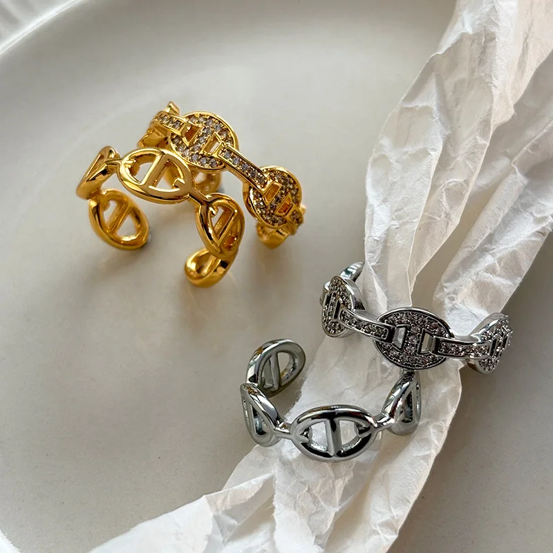 Trendy Link Chain Open Rings Gold Silver Tone Cubic Zirconia Statement Fashionable Adjustable Finger Fine Jewelry Rings Women