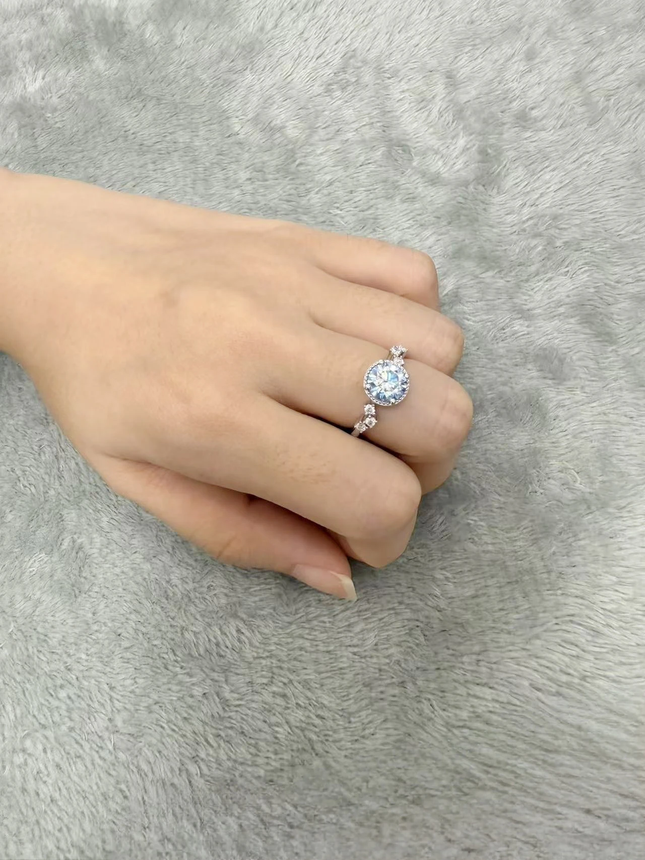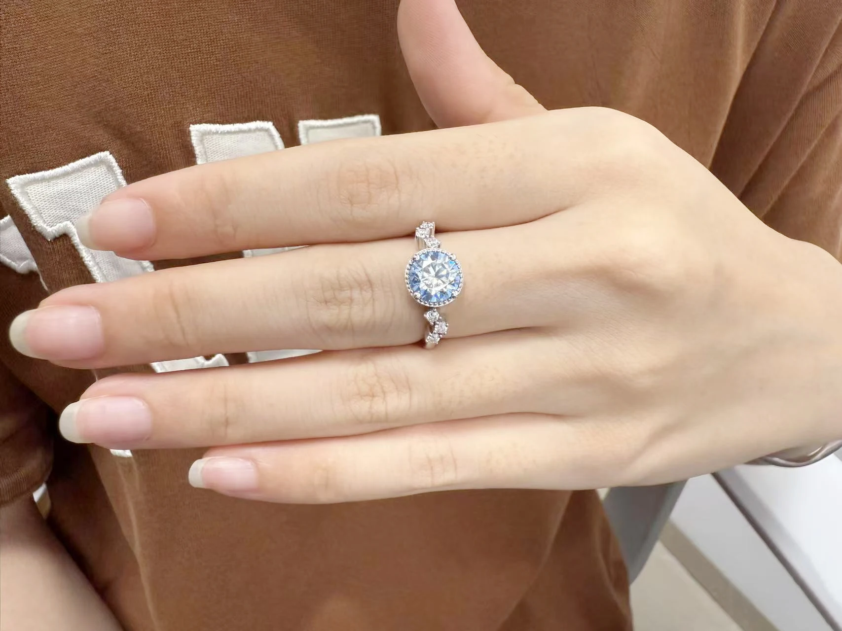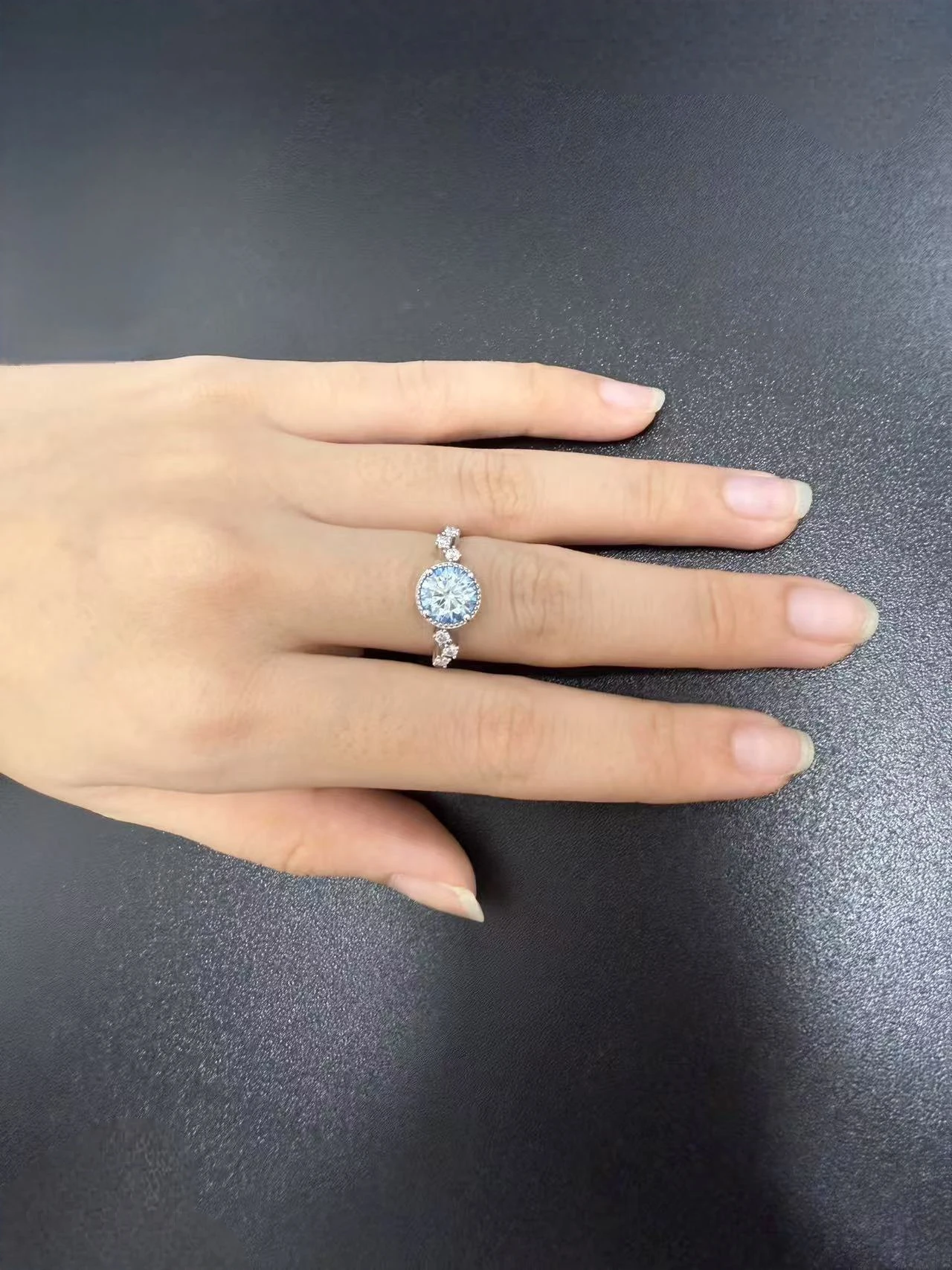 Fine Jewelry Platinum Plated 7.5 Carats Blue Diamond Mossanite Luxury Fashion Rings for Women Engagement Wedding Rings