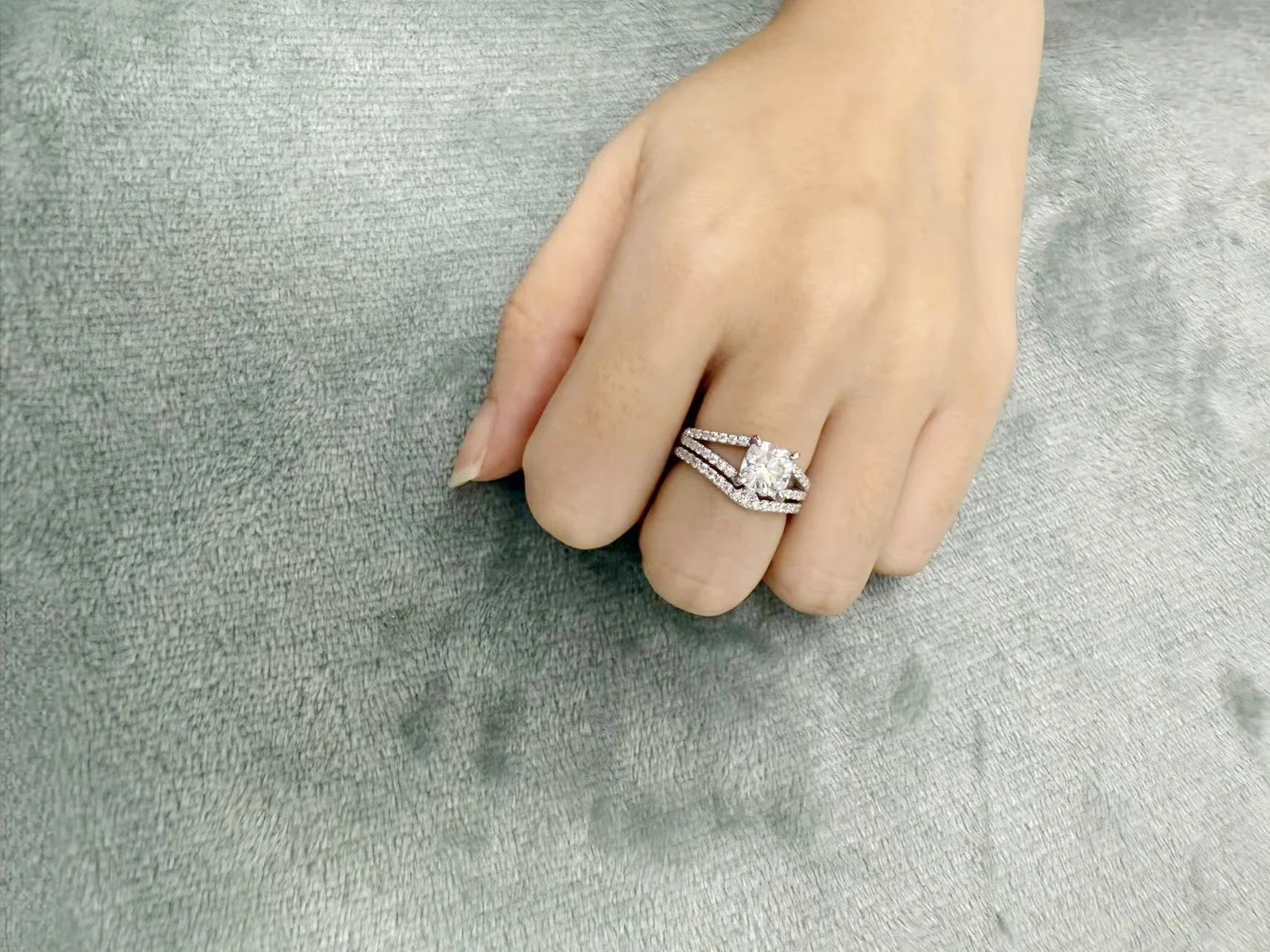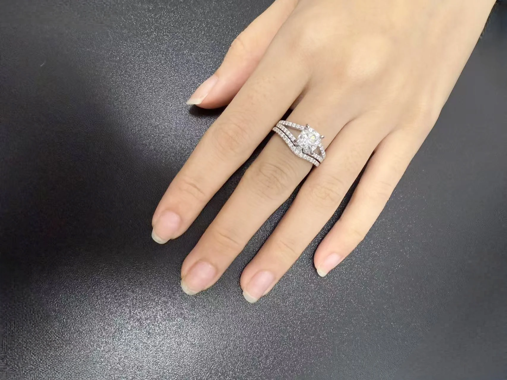 Custom Fine Jewelry Diamond Mossanite Luxury Anniversary Glowing Marriage 925 Sterling Silver Rings Sets for Women Men Couple