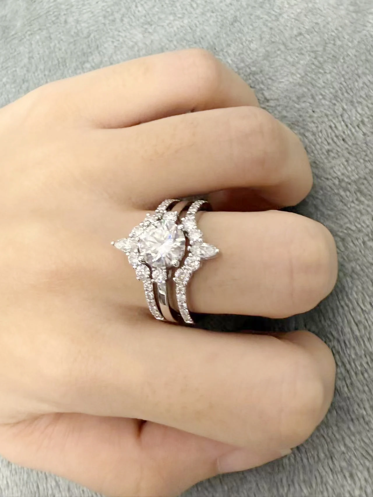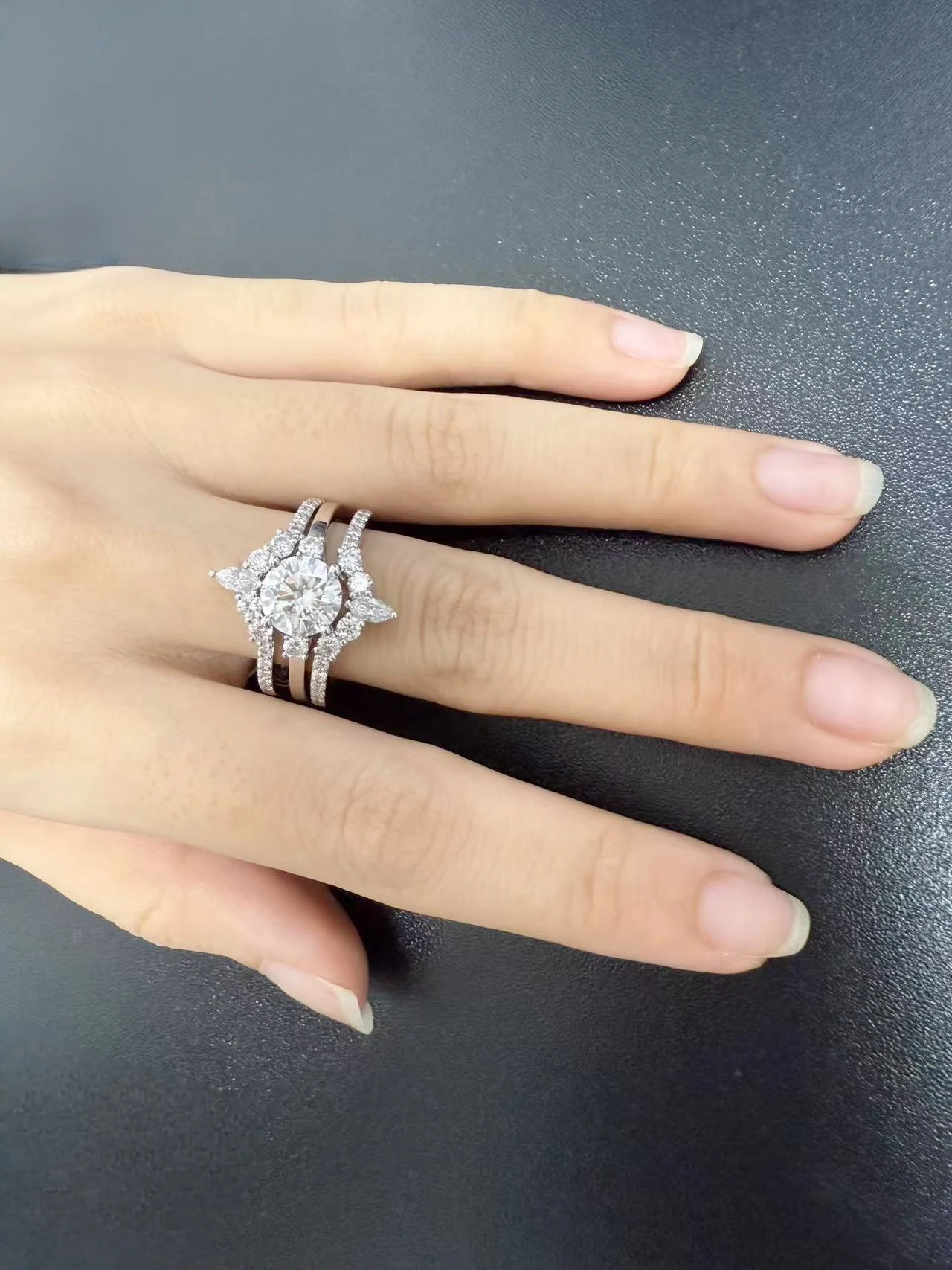 Custom Fine Jewelry Female Couple Diamond Ring Set 925 Sterling Silver Platinum Luxury Engagement Moissanite Ring for Lovers
