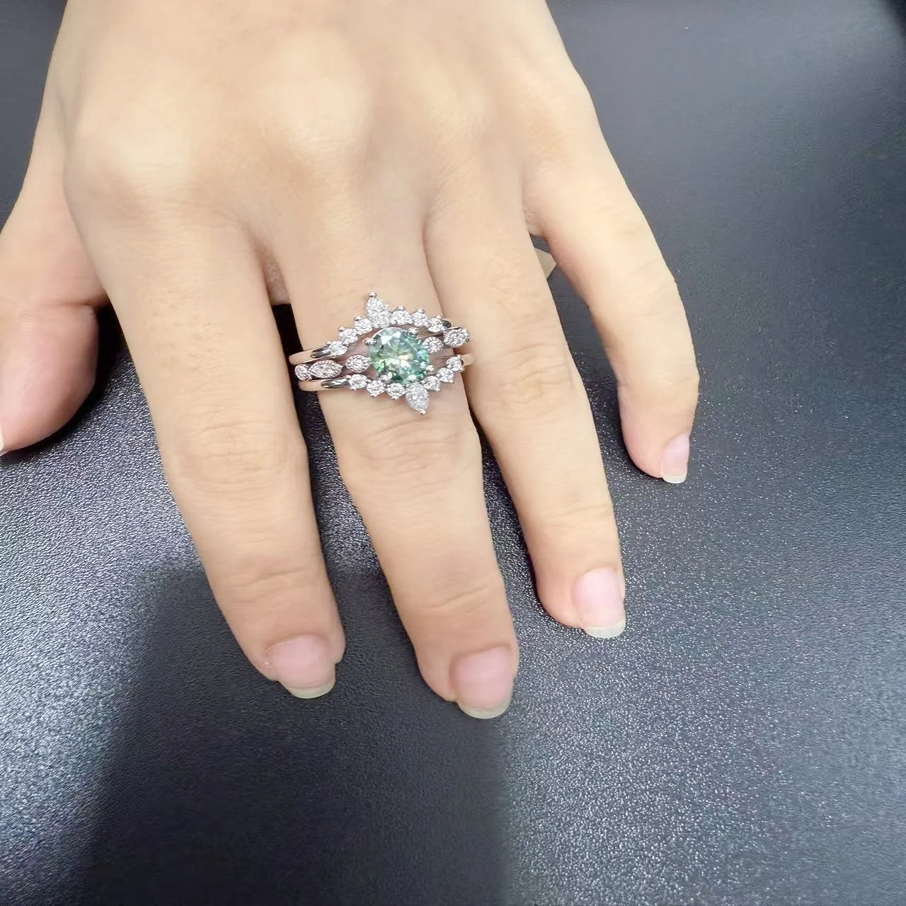Fine Wedding Jewelry 925 Sterling Silver Moissanite Custom Green Elegant Classic Engagement Women Rings for Girls Joias De Luxo