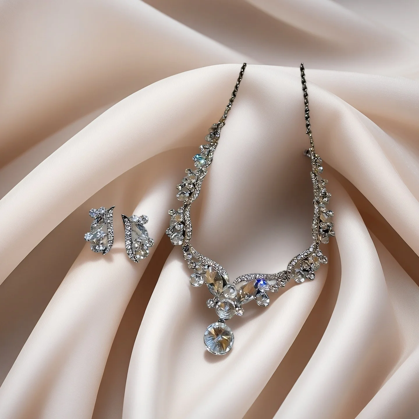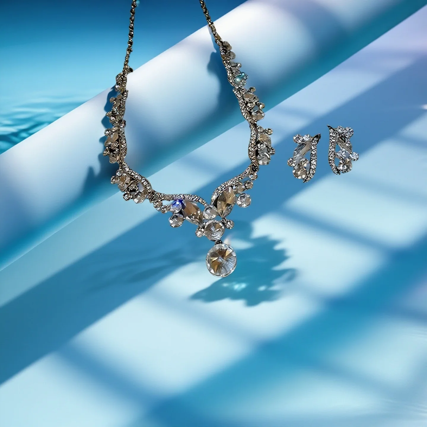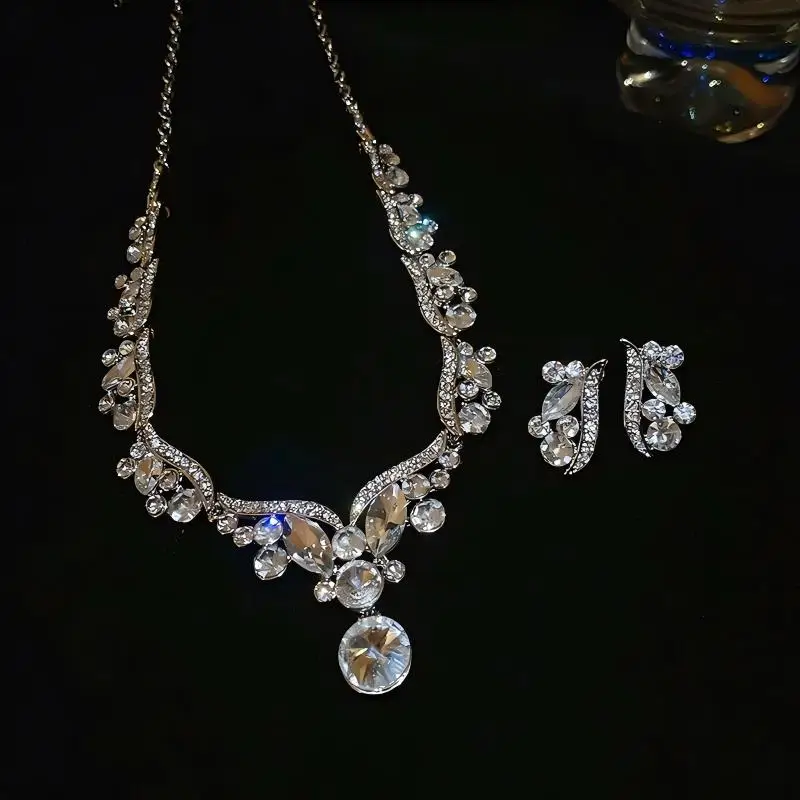 Custom Luxury Designer Inspired Rhinestone Pendant Necklace Earrings Sets Diamond Wedding Jewelry Ladies Joias De Luxo