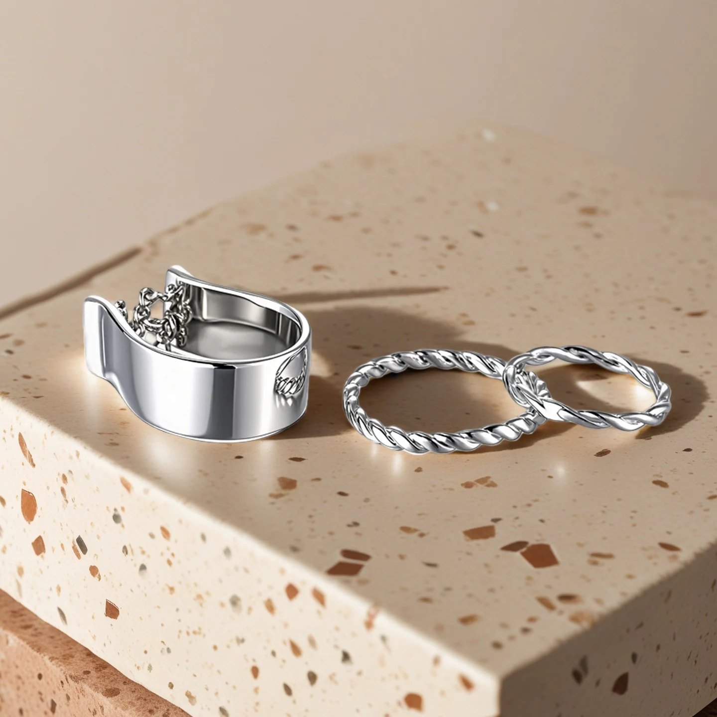 Muxcor Silver Plated Copper Alloy Three-piece Set Jewelry for Girls Fine Jewelry Fancy Jewellery for Ladies Tarnish Free Rings