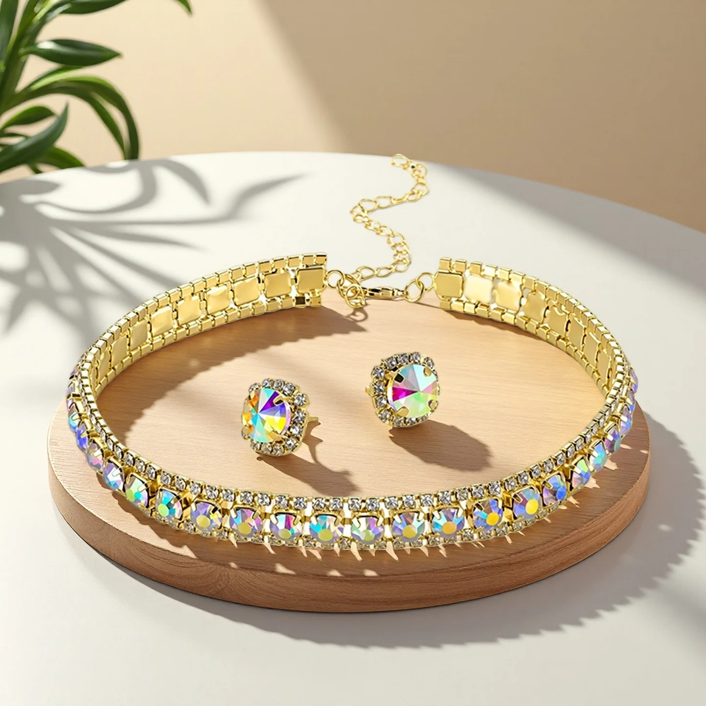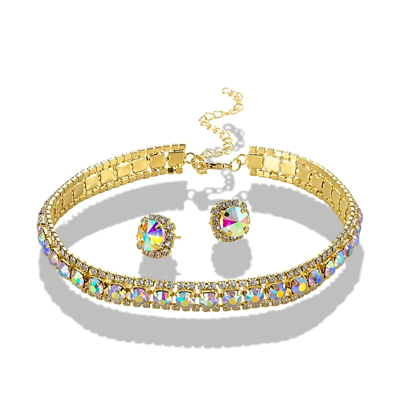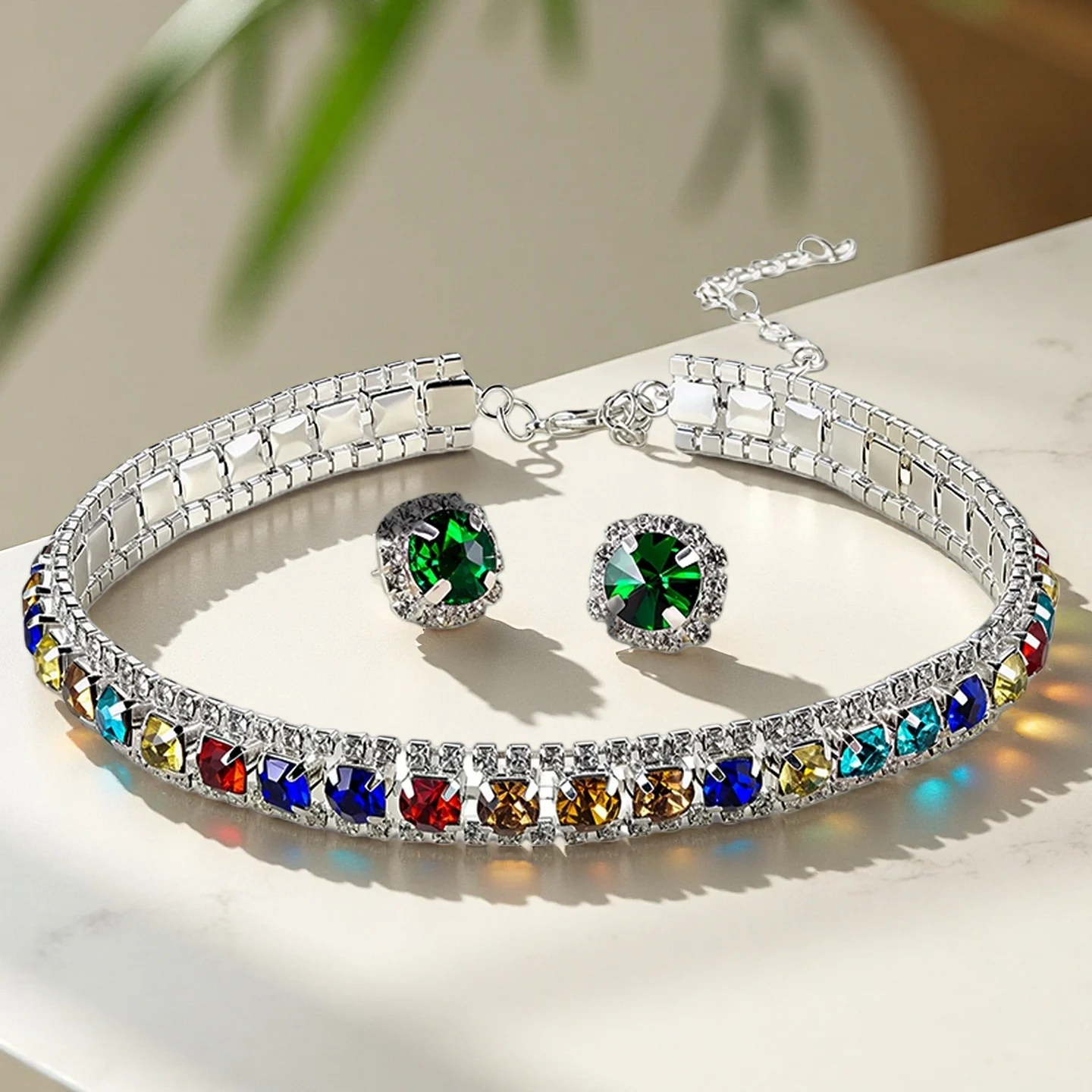 Joias De Luxo Wedding Women Copper Jewelry Sets Colored Diamond Zircon Pendant Necklaces Earrings Fancy Jewellery for Ladies