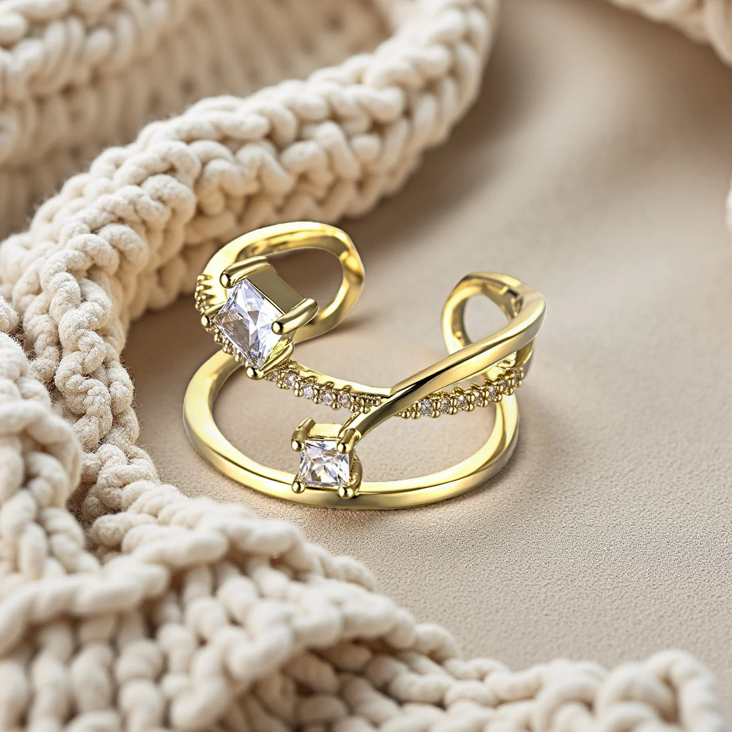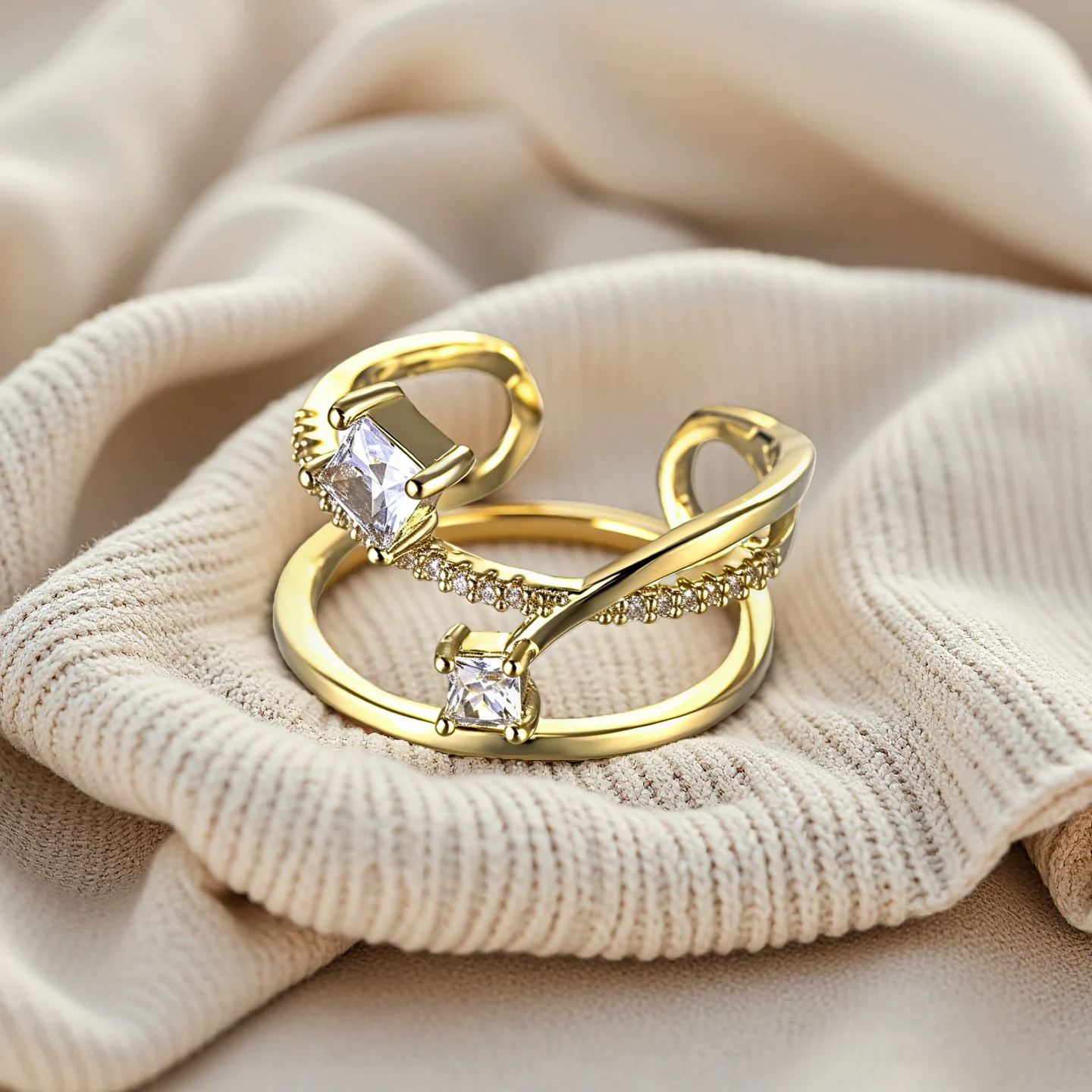 Muxcor Gold Plated Copper Alloy Jewelry Rings for Girls Fine Ajustable Opening Industrial Style Trendy Minimalist