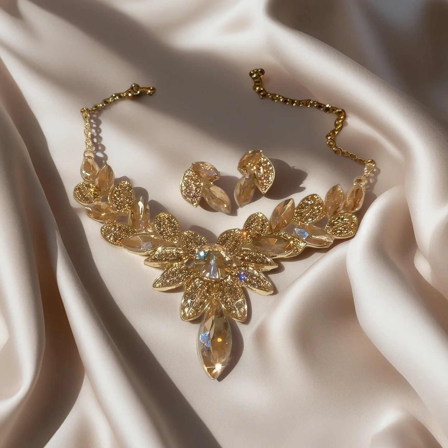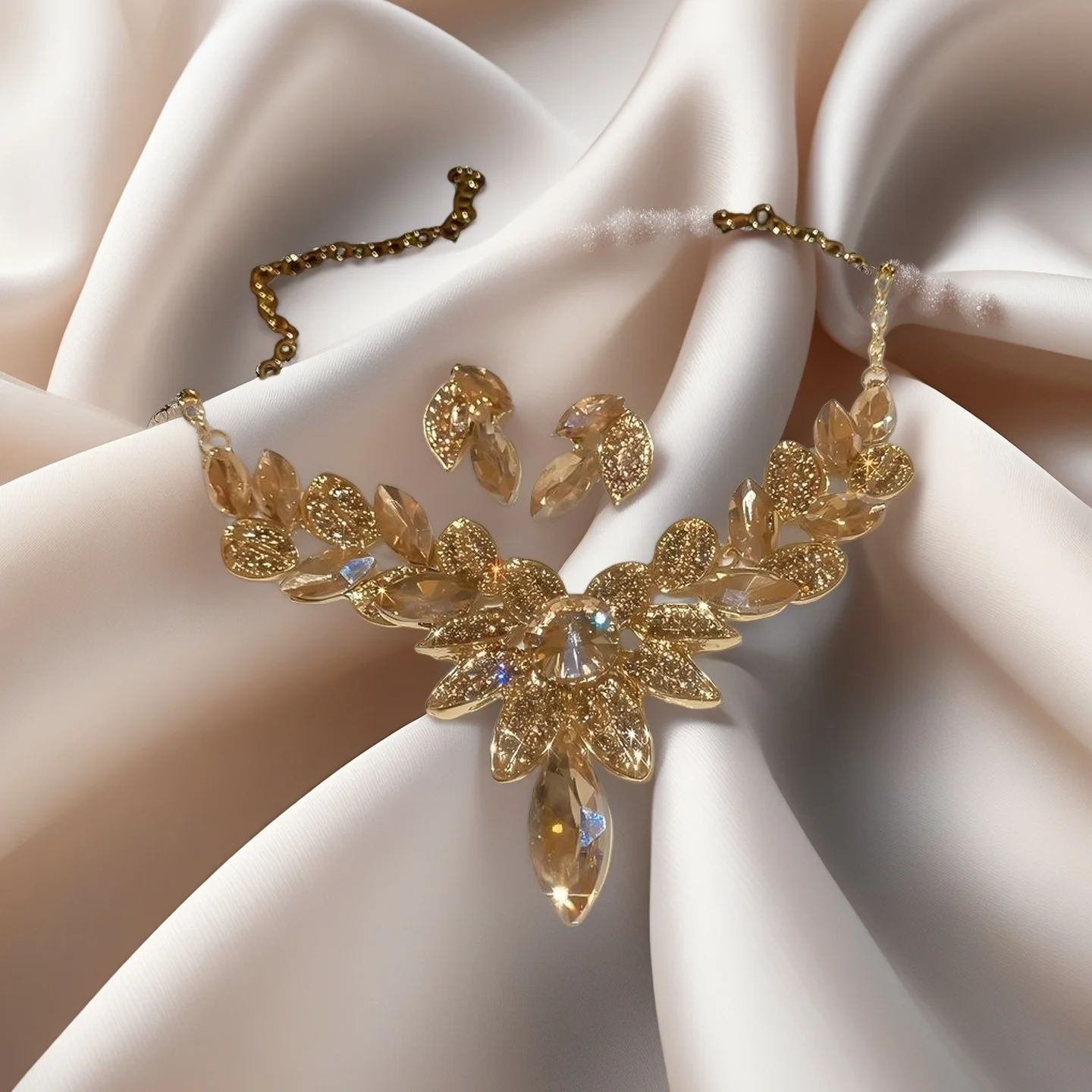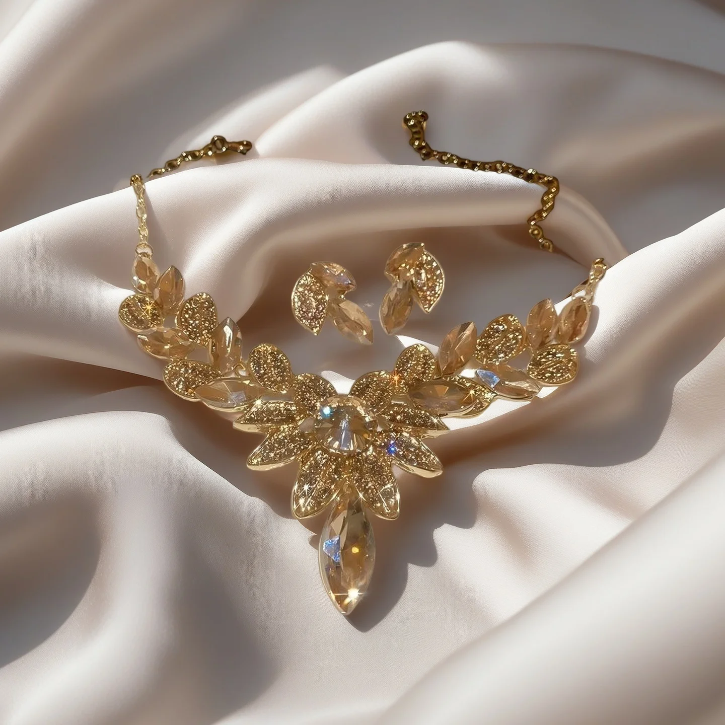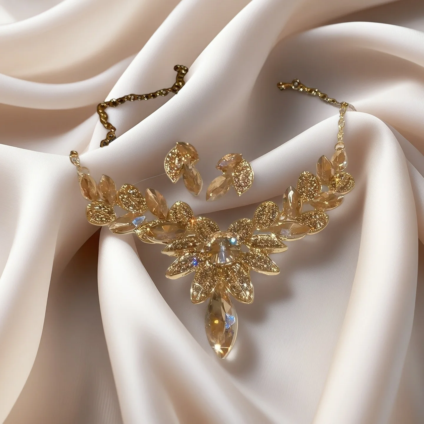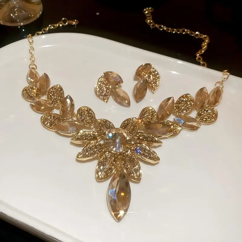 Designer Inspired Luxury Wedding Jewelry Sets for Women Diamond Rhinestone Flower Leaf Shaped Necklaces Parties Engagements