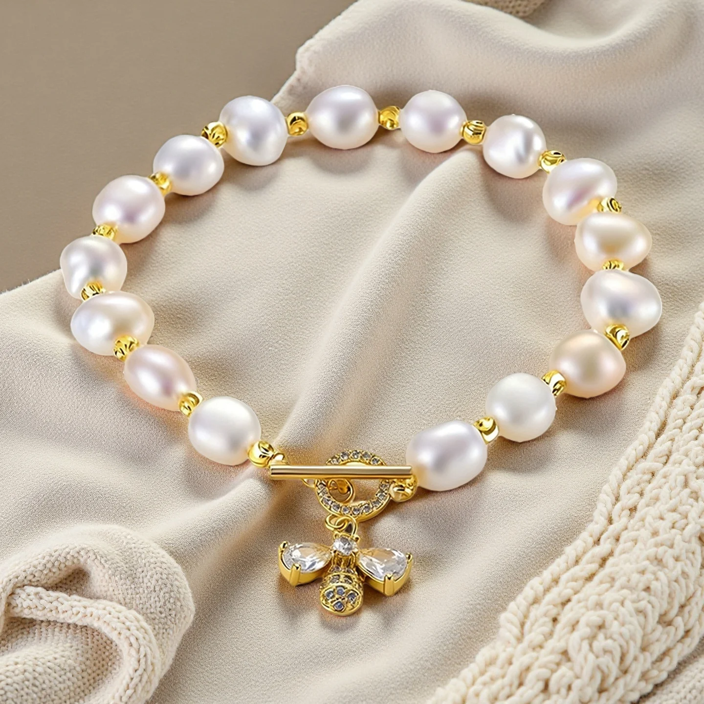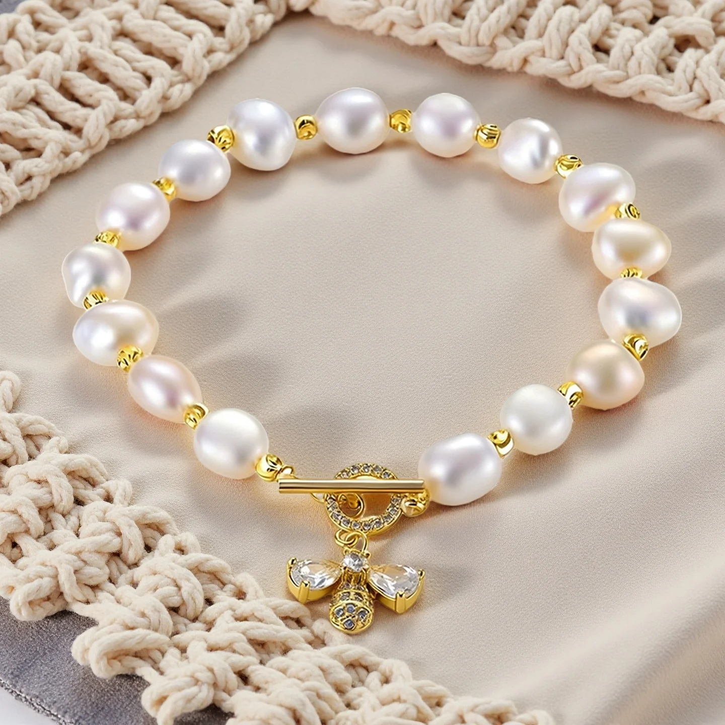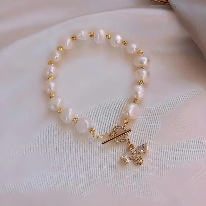 Muxcor Pink Imitation Pearls Gold Plated Copper Alloy Jewelry Fashion Chain & Link Bracelets Fancy Jewellery for Ladies