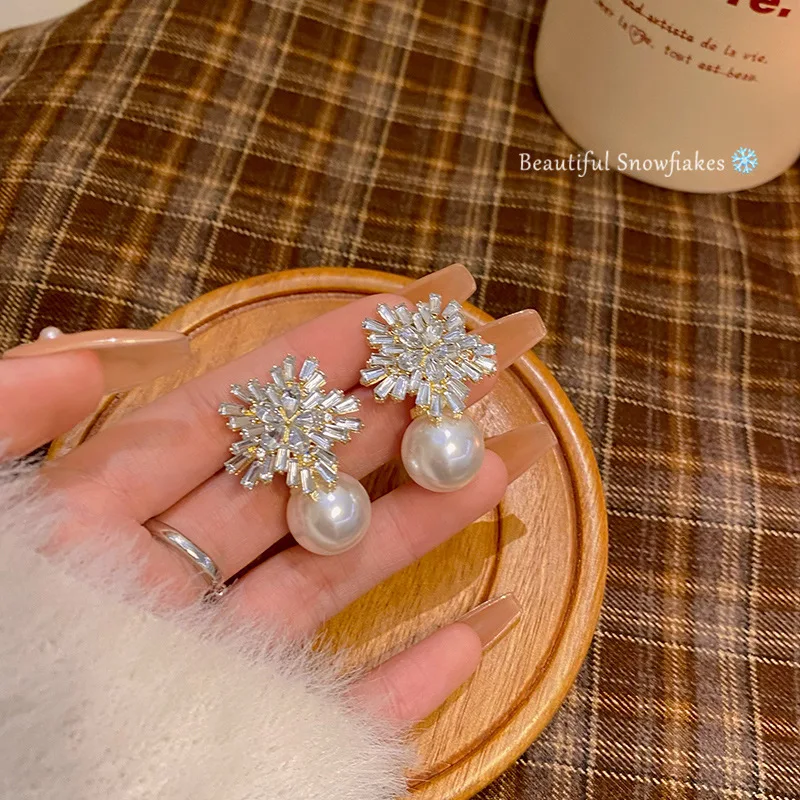 Wholesale Earrings Fashion Stud Earrings for Women Alloy Snowflakes Flowers Pearls Classic Wedding Party Christmas Gift
