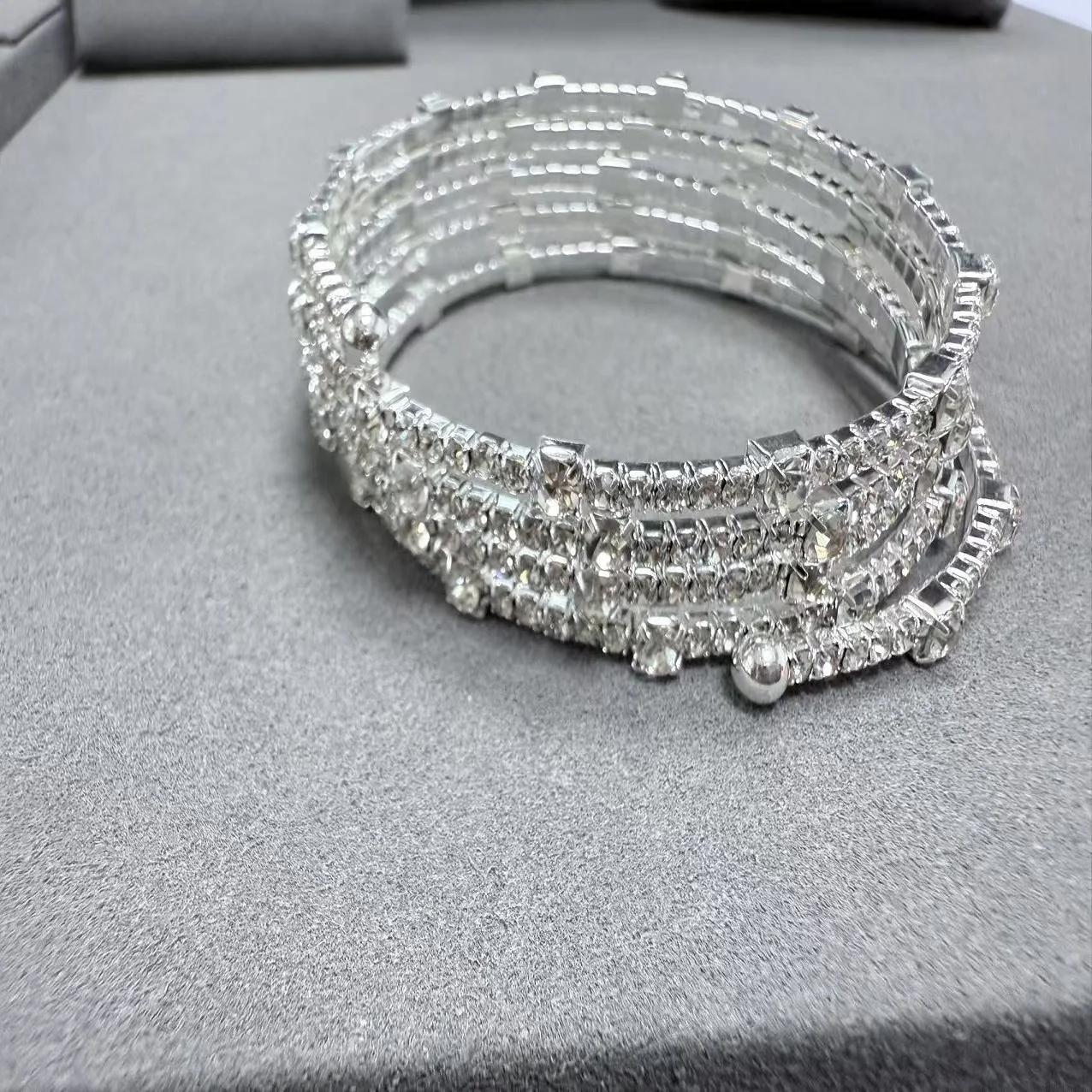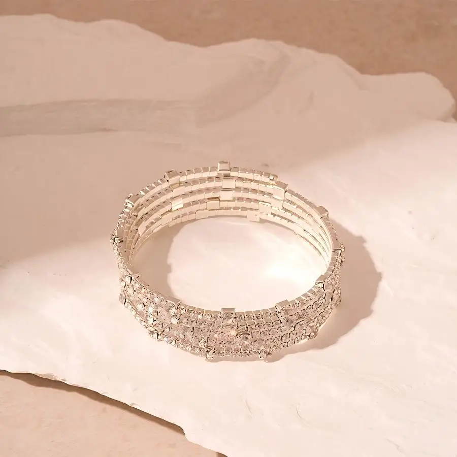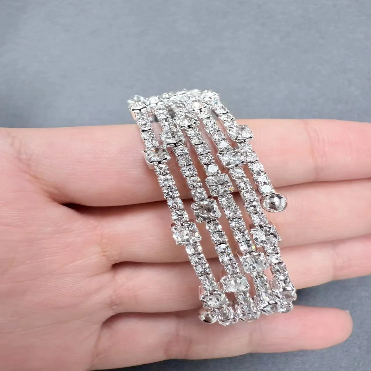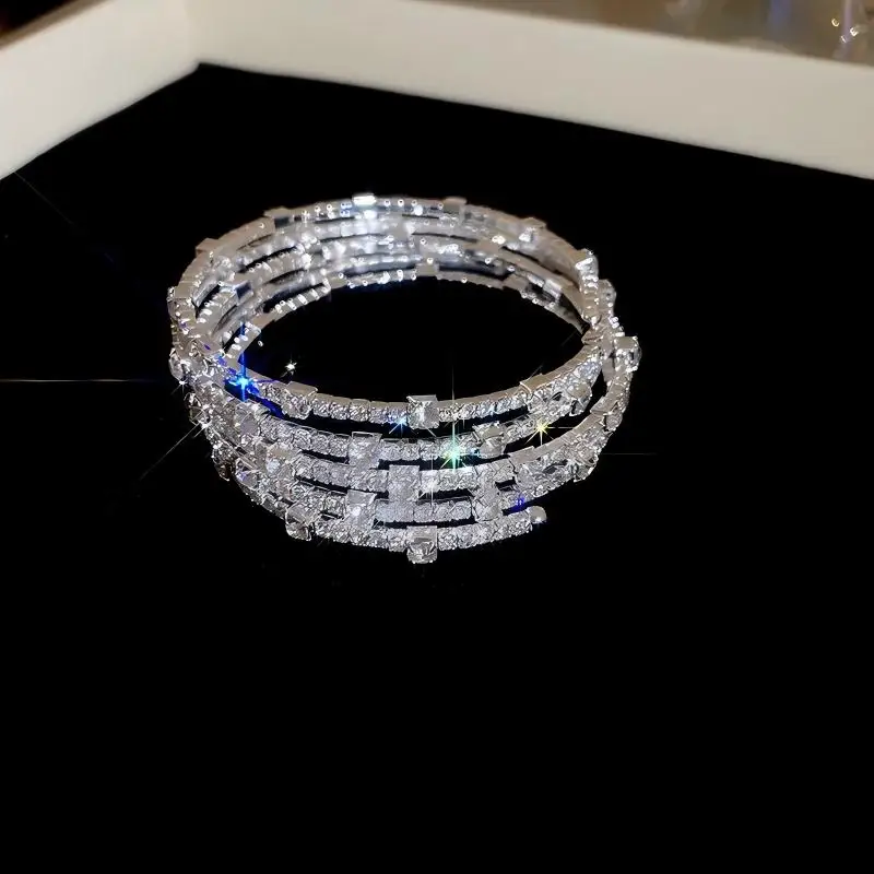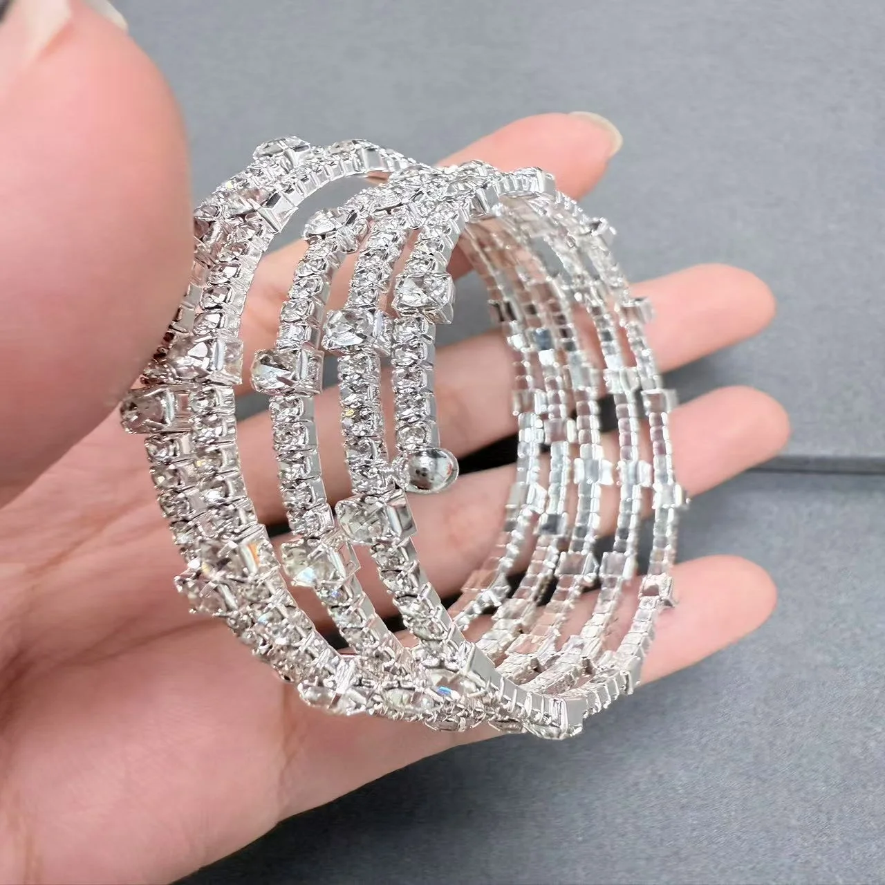 Women New Luxury Fashion Multilayer Diamond Surrounded Silver Shiny Bangles Imitation Pearl Temperament Female Cuff Bracelet